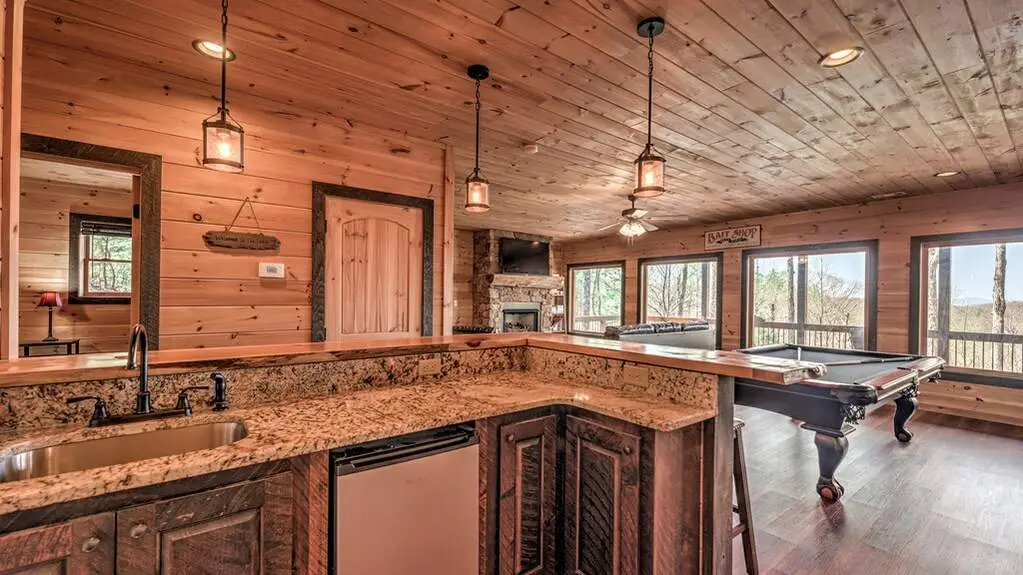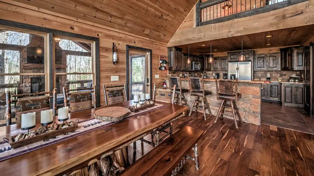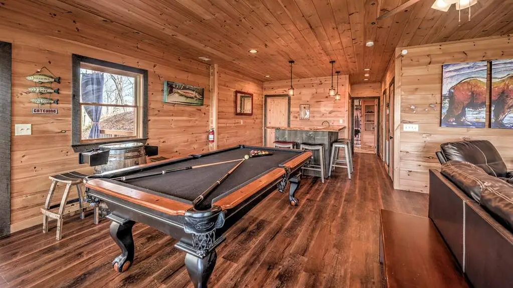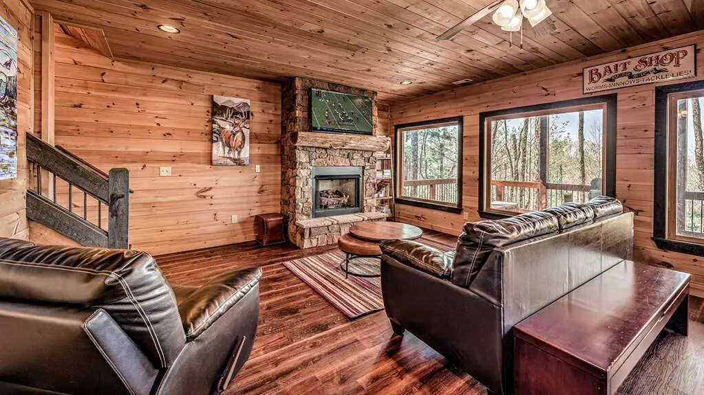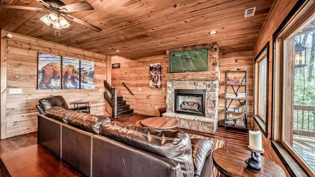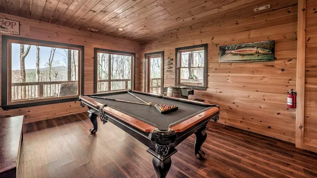 Step into your North Georgia mountain sanctuary, nestled in the renowned ASKA ADVENTURE AREA-a retreat where luxury meets the serenity of nature. This beautifully furnished four-bedroom, three-and-a-half-bath cabin is designed to be both your peaceful escape and a lucrative investment, with a proven rental history and excellent income potential. This property offers an open-concept kitchen and living area that creates a warm, welcoming space for gathering with loved ones. Featuring a walk-in pantry and gleaming granite counters to make every meal a pleasure. The main level offers an elegant primary suite with a spa-like bathroom with a soaking tub, double vanity, a walk-in shower, and ample storage for all your needs. Upstairs, a cozy loft with two spacious bedrooms (one with a built-in loft bunk bed) provides the perfect setting for guests or family, complemented by a full bathroom. Head down to the terrace level-your haven for fun and relaxation. Enjoy game nights in the inviting family room, challenge friends at the pool table, and entertain at the large wet bar. Imagine waking up to breathtaking mountain views from every room, then starting your day sipping your coffee by a cozy fire in the outdoor fireplace and ending your day of adventures soaking in the hot tub, surrounded by scenic vistas, or sharing stories and laughter around the fire pit under a canopy of stars. Located just minutes from the TOCCOA RIVER, you'll be immersed in hiking, fishing, kayaking, and endless outdoor adventures. This exceptional property truly captures the essence of mountain living-whether you seek tranquility, excitement, or a rewarding investment, your dream getaway awaits.