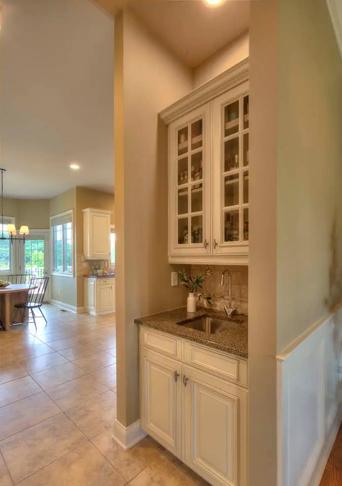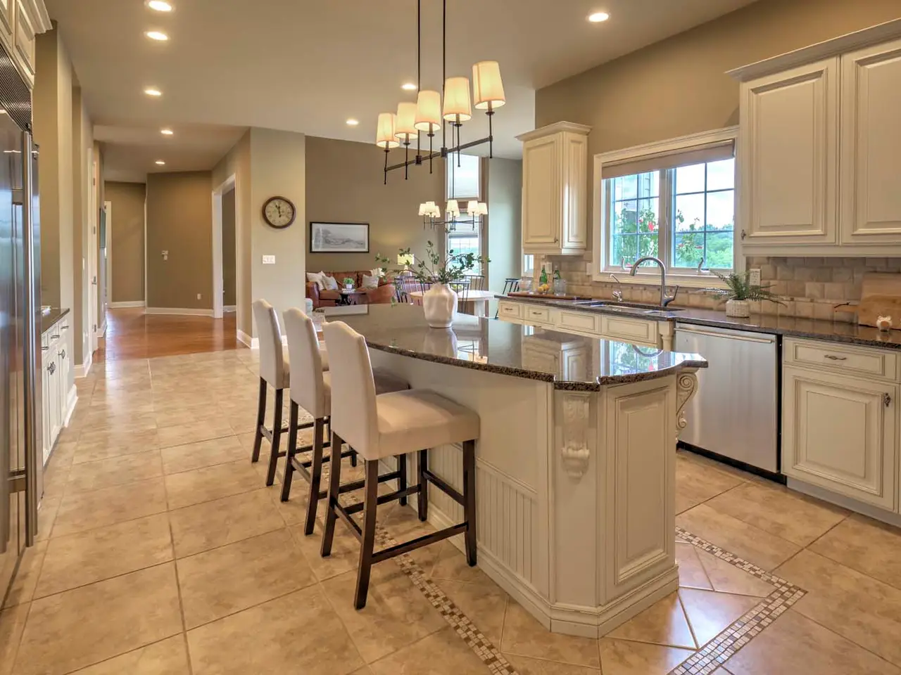 Professional-grade appliances and custom cabinetry in kitchen
