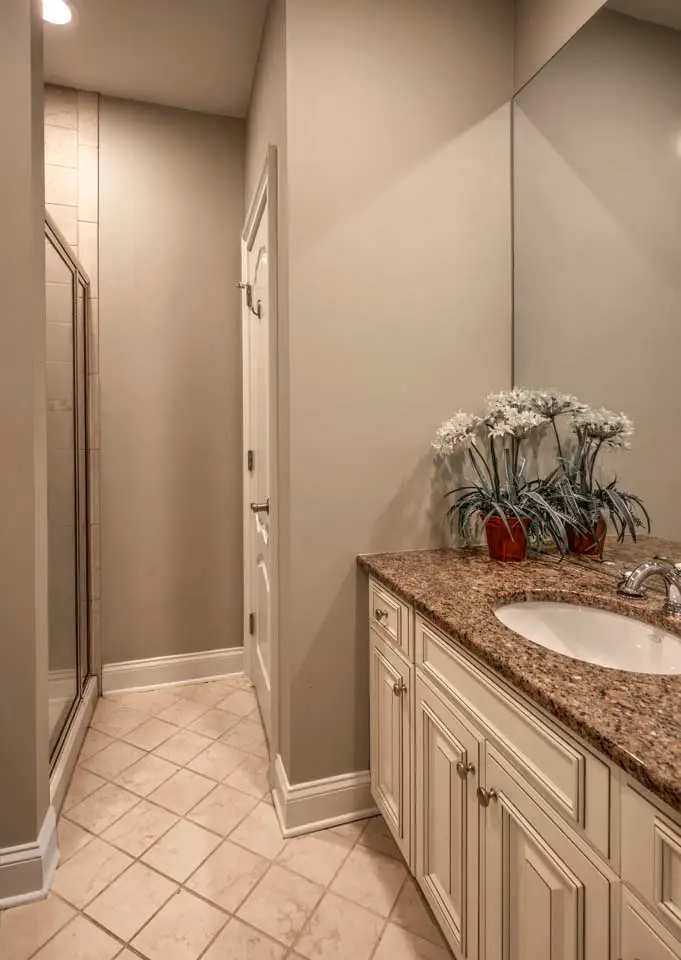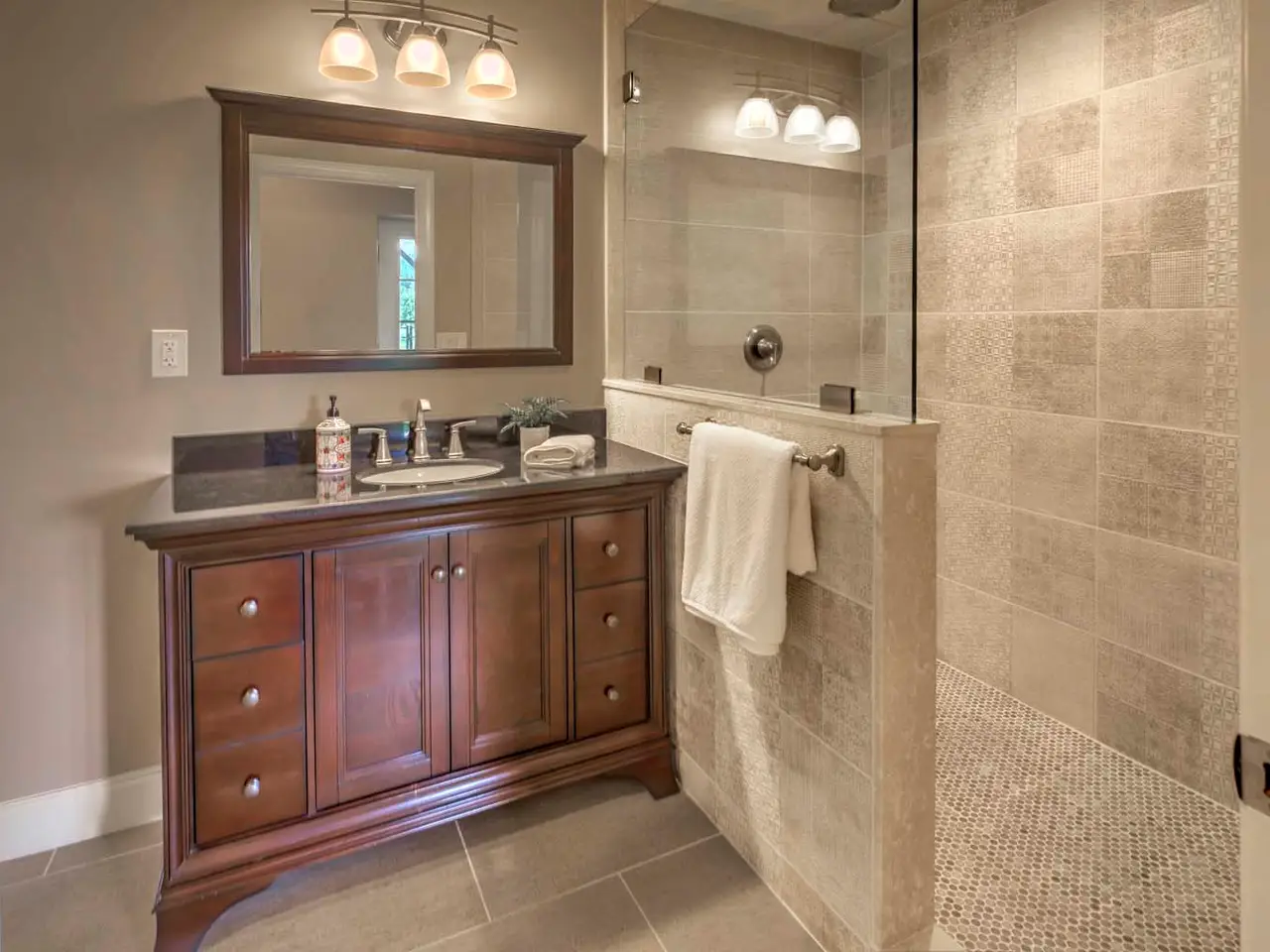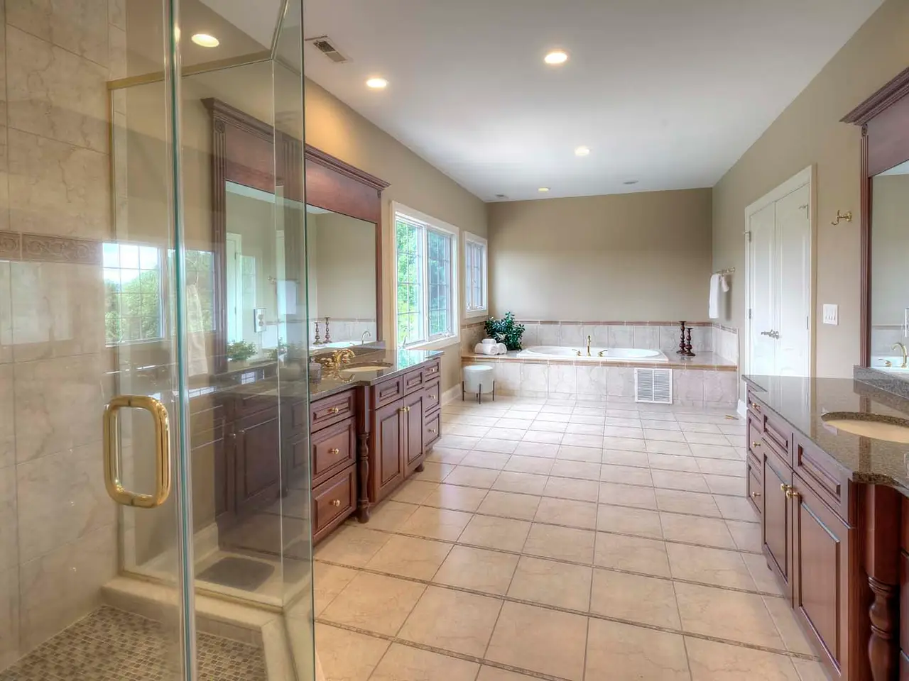 Ensuite bath with jetted tub and glass-door shower