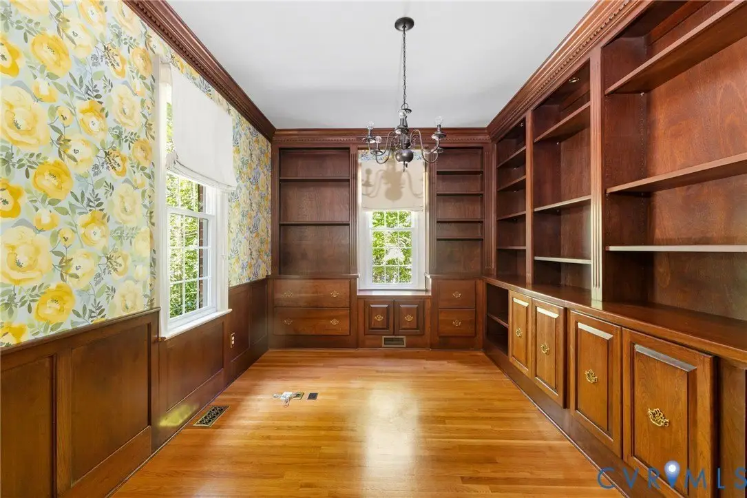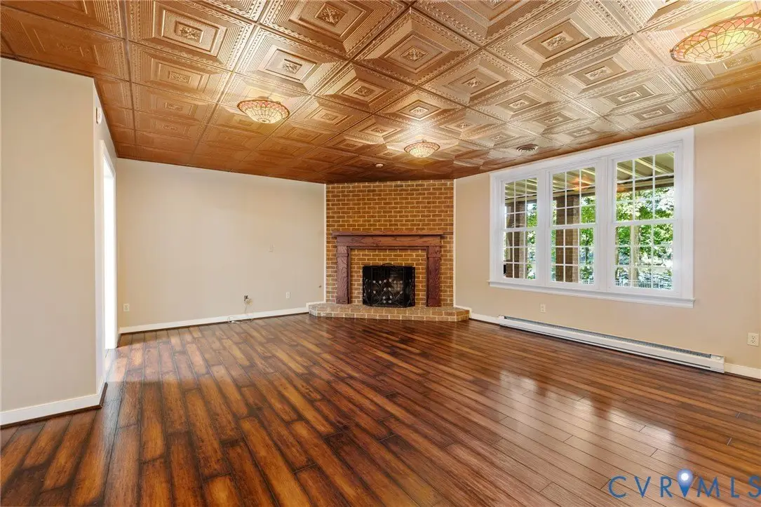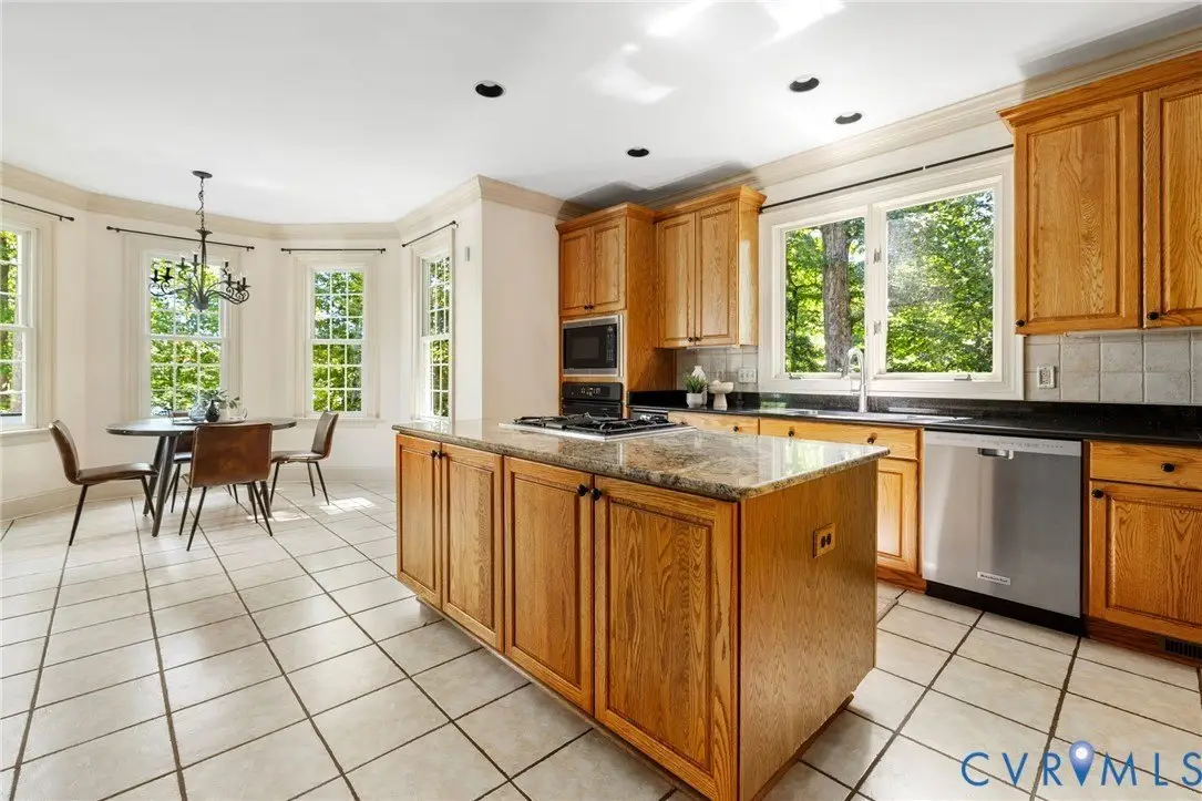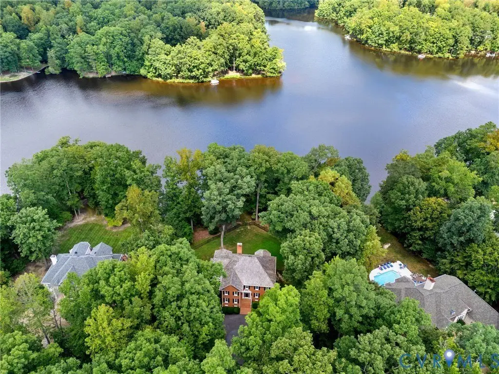 WATERFRONT Elegance on Woodland Pond! Welcome to this stately mostly-brick waterfront home, perfectly situated on the serene 125-acre lake of Woodland Pond. From the moment you arrive, the circular driveway and newer cedar shake roof (2018) set the tone for timeless quality and charm. Step inside to the grand foyer with gleaming hardwood floors and dual staircases - one from the foyer and one from the kitchen. The layout is designed for both entertaining and everyday living, offering a spacious formal living room complete with custom built-ins, and a formal dining room with custom trim work, a comfortable family room with fireplace and custom wet bar area that overlooks the deck and backyard. The adjacent sunroom and screened porch offer versatility and year-round spaces to enjoy the view and all that this home has to offer. The kitchen features ceramic tile flooring, raised-panel oak cabinetry, granite countertops, gas cooking with double ovens and black and stainless appliances. A walk-in pantry, recessed lighting and an octagonal breakfast nook overlooking the water make this a true chef's and entertainer's delight. Work from home in style with a stately office showcasing beautiful wood built-ins and intricate moldings. Upstairs, the oversized primary suite offers a serene sitting area, spa like en-suite bath and walk in closet. A second-floor laundry with washer and gas dryer for added convenience. Additional bedrooms are generous in size and have access to a bath. The walk-out basement level is designed for recreation and relaxation, featuring a garage, exercise room, bedroom/craft room and a stunning great room with copper ceiling, corner gas fireplace, full bath, wet bar with ice maker and beverage center. Outdoor living shines here with a fenced yard, expansive Trex decking, paver patio bordered in brick and aggregate and a corner outdoor fireplace. The private boat dock (also Trex decking) competes the lifestyle-just bring your boat and start enjoying Woodland Pond living at its best.