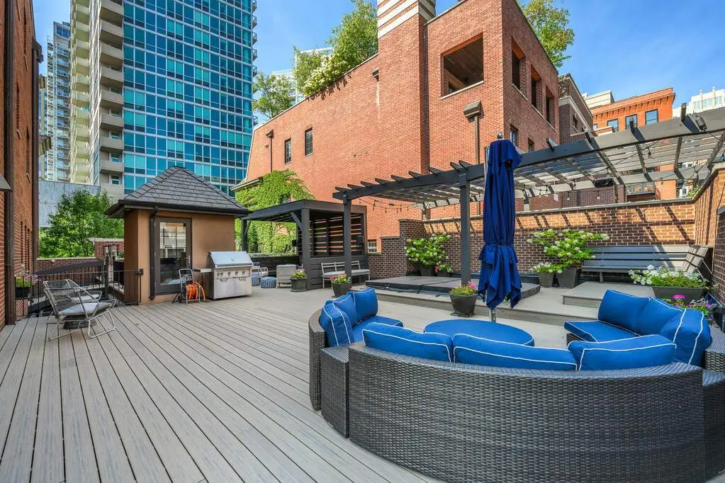 Spanning 68' in coveted Kingsbury Estates, this home is truly one of a kind! Offering over 10,300 square feet, plus an additional 4200 square feet of the absolute best outdoor space, this home offers a suburban lifestyle right in the heart of the city. The entry is a great spot to host parties or events in the lounge & wine room. This entertaining space connects to a secondary living space featuring a professional home gym with a resistance pool. There is also a bedroom, kitchenette/family room, and an entire lower level. Back in the main part of the home, you will love the paneled library, full bath, powder room, and the most gracious foyer which takes you to the second floor, allowing for amazing light and privacy. The extra-large chef's kitchen/great room features a 60" Wolf range plus cooktop, three Wolf ovens, double Miele dishwashers, built-in espresso machine, plus a steam oven. This is all open to fantastic space for informal gathering plus a super sunny breakfast nook, both of which open onto one of the massive terraces. This terrace features multiple spaces for sitting and dining, a large resistance swimming pool, and an outdoor fireplace. The third level of the home is devoted to the primary suite, allowing for a spacious bedroom with a terrace, sensational closet space, dual luxurious baths, and a coffee bar. There is an additional sitting room that could double as an office or perfect nursery space. Bedroom level laundry can also be found, conveniently located off the primary bath. The top level of the home has 2 more ensuite bedrooms, plus an additional lounge or bedroom with a kitchenette and terrace as well as an additional laundry area. An interior staircase leads to the enormous rooftop terrace with a second outdoor fireplace, multiple levels for entertainment, and the best city views. Allowing for even more entertaining space, the lower level has a true theater room. An additional bedroom, bath, sitting/playroom complete the lower level. An elevator to all levels makes for easy living! Perfect for car enthusiasts, this home has an attached garage with parking for six cars! Located within a gated community with parks, fabulous dining, and the riverwalk steps from your front door, this home is true gem and a rare find in the city!