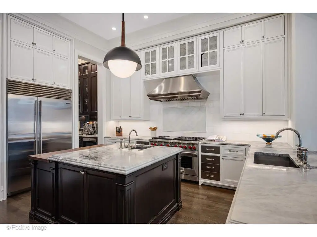 1720 N. Mohawk is a showpiece residence situated on one of East Lincoln Park's most coveted streets. Conceived by award-winning LG Development and masterfully designed by Dan Rak, known for his classically contemporary interiors that are precisely tailored and seamlessly executed. This remarkable 6,000 square foot home with six bedrooms achieves the perfect balance of classical architecture, modern comfort, and high design. From the moment you enter, the soaring 12-foot ceilings and grand custom staircase set the tone. The second and third floors feature impressive 10'6" ceilings, while even the lower level offers over 9 feet of ceiling height, ensuring volume and light throughout every level of the home. Every element speaks to exceptional craftsmanship, exquisite trim and millwork, custom built-ins, rift- and quarter-sawn hardwood flooring, elegant hardware, and dramatic fireplaces. Expansive windows frame tree-lined east views, while a proper entry gallery leads to a paneled living room and adjoining dining room anchored by a statement linear chandelier, creating a refined atmosphere for both everyday living and formal entertaining. At the heart of the home is a chef's kitchen designed for both beauty and performance: top-of-the-line cabinetry, professional-grade appliances, an oversized island, and a butler's pantry. The kitchen opens seamlessly to a large eat-in area and a sun-filled family room with coffered ceiling, fireplace, and direct access to private outdoor spaces, including a roof deck with pergola over the 2.5 car garage. The second-floor hosts two ensuite bedrooms and the primary suite, a serene retreat with dual walk-in closets, fireplace with custom built-ins, and a spa bath clad in marble. This sanctuary includes radiant heated floors, polished nickel fixtures, a double vanity, steam shower, and soaking tub. Multiple laundry rooms provide convenience on multiple levels. A skylit staircase brings you to the top level, where a flexible great room with a wet bar opens to a large roof deck with private tree top views. Additional rooms include a private office, extra bedroom, and bath. The oversized windows throughout the home allow an abundance of sunlight. The lower level offers an extraordinary mix of style and function, with a media room with bar, a gym, and a sixth ensuite bedroom. The home was intelligently designed elevator-ready, with stacked closet space available for future installation if desired. The exterior is secured with a 6-foot wrought iron fence, snow melt system, Doorbird video doorbell, irrigation & custom planter boxes. This location cannot be beat, and no detail has been overlooked at 1720 Mohawk-this residence is the epitome of refined Chicago luxury, designed for grand entertaining as well as intimate daily living.