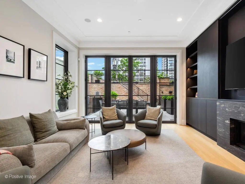 Behind this classic historic Gold Coast facade lies an extraordinary reinvention. Meticulously stripped to the shell and rebuilt just two years ago as a custom residence for the current owners by Environs Development, this is a rare Gold Coast resale that lives like new construction - thoughtfully reimagined with a floorplan that caters perfectly to modern living without a single compromise. In a neighborhood where trade-offs are common, this home delivers on every front. Top-tier amenities include an extra-deep 25 x 150' lot, an elevator serving all four floors and an attached 2-3 car garage with huge mudroom. Designed for effortless indoor-outdoor living, the kitchen and great room extend seamlessly to a generous 27x18 terrace, outfitted with a motorized retractable awning, then steps up to a 24x24 garage roof deck. All five bedrooms feature en-suite baths, including a standout primary suite with two large walk-in closets and a luxe bath with dual water closets. The massive library/office, anchored by floor-to-ceiling built-ins and framed by steel and glass doors, is adjacent to a third-floor lounge that opens to a 19x16 covered terrace complete with ceiling mounted heaters and an outdoor fireplace for year-round comfort. The lower level includes an enormous guest suite, a glass-enclosed wine wall, a proper fitness room with sauna, a dog room with shower, a 2nd laundry, a massive storage room and a mudroom with direct access to the garage complete with a car lift. This extraordinary residence blends forward-thinking design with timeless elegance and meticulously curated finishes - offering a unique opportunity to own a truly exceptional home in Chicago's most sought-after neighborhood.