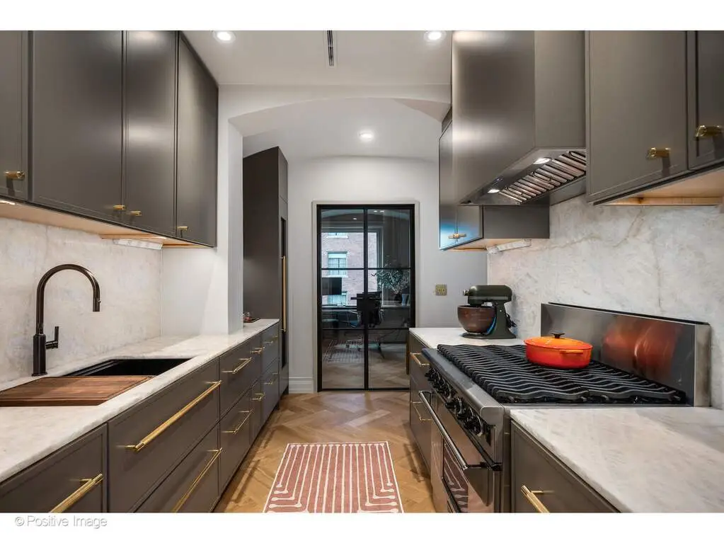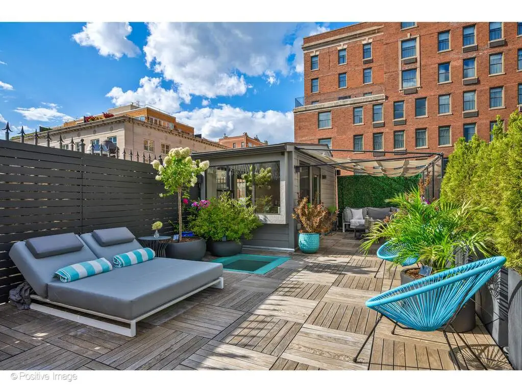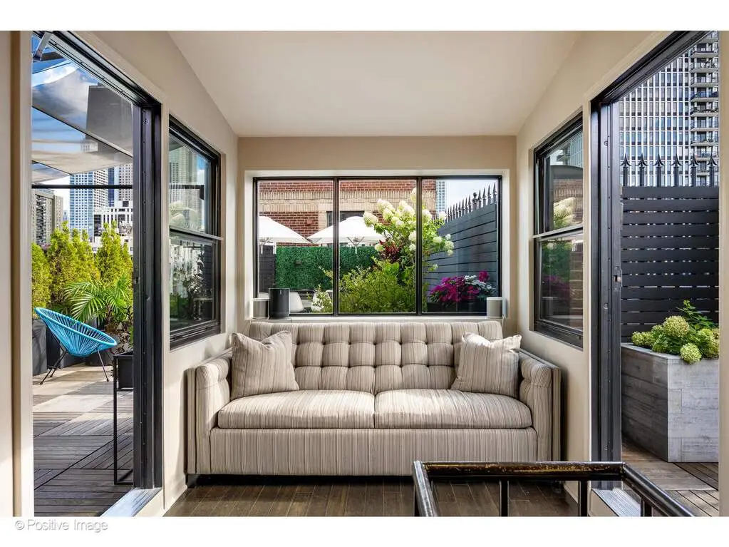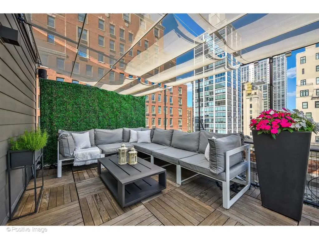 This extraordinary top-floor residence has been completely reimagined in a meticulous 2024 transformation, resulting in a bespoke masterpiece that cannot be replicated. From the moment you enter, it is evident that every detail-every finish, every material-was selected with the highest level of intention and refinement. White oak herringbone floors flow seamlessly throughout, complemented by exquisite custom millwork in the baseboards and crown moldings, creating a timeless architectural frame. In the living room, a dramatic skylight cascades natural light across the space, while a hand-crafted marble mantle encases a wood-burning fireplace, an elegant centerpiece for sophisticated gatherings. The adjoining dining area is anchored by a sculptural Corbett chandelier, setting the tone for elevated entertaining. The chef's kitchen is nothing short of spectacular: iceberg quartzite counters, bespoke cabinetry, and brass and bronze hardware harmonize with a suite of Sub-Zero, Wolf, and Bosch appliances, including a built-in wine cooler. Every switch, outlet, and handle has been thoughtfully upgraded to Buster + Punch, ensuring a cohesive, refined aesthetic. Just beyond, custom glass doors reveal a versatile bedroom currently curated as a home office, complete with a striking tropical Wenge live-edge desk. The jewel-box powder room delights with a custom vanity, Graff fixtures, and statement wallpaper, while a serene den houses bespoke closets, including a concealed laundry with Electrolux appliances and additional storage. The primary suite is a private sanctuary, lavish and light-filled...with custom built-ins, and an extraordinary walk-in closet of glass and steel illuminated by a Tom Dixon fixture. The dual ensuite baths are a study in indulgence, featuring Palmer Industries brass fixtures, Lacava sinks, and luxurious travertine and marble floors. Every mechanical element of the residence was upgraded in the renovation, including new plumbing and electrical systems. A sculptural spiral staircase leads upward to what is arguably the finest private terrace in the Gold Coast. Here, a fully integrated indoor sunroom with bar, refrigerator, and freezer seamlessly transitions to an expansive rooftop oasis. European shade systems define a partially covered lounge area, while a sun-soaked expanse invites relaxation on designer furnishings-all included. A dedicated dining terrace boasts outdoor kitchen with grill, refrigerator, extensive counter space, and storage. Privacy walls, a Sonos sound system, and a professional irrigation system complete this unrivaled alfresco experience, framed by iconic views of the Hancock, Gold Coast architecture, and shimmering lakefront. The residence is set within a building whose infrastructure has been fully revitalized, including new piping, boiler, tuckpointing, masonry, and the addition of a common roof deck. Perfectly positioned at 1255 N State Parkway, this one-of-a-kind home offers the best of city living-just moments from Oak Street Beach, Lincoln Park, and the world-class shopping, five-star dining, and cultural richness of Chicago's Gold Coast. A residence beyond compare. Welcome home.