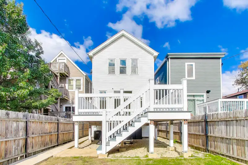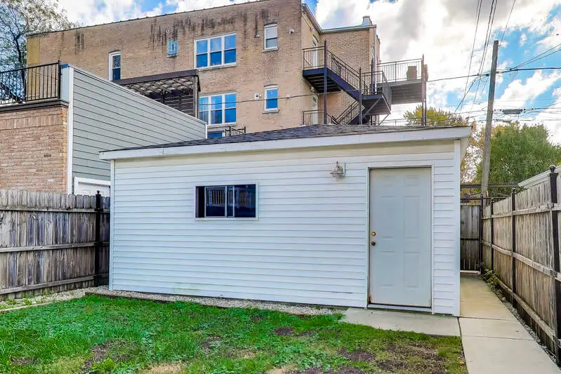 This Single-family home in Logan Square was built in 2014 on an extra-deep 25' x 138' lot. With over 3,000 sq ft across three finished levels, this freshly painted residence blends modern design, quality craftsmanship, and prime location. A newly refinished and painted front porch welcomes you inside, where hardwood floors, high ceilings, crown molding, wainscoting, and skylights create a bright, elegant feel. The main level offers a gas-starter, wood-burning fireplace with marble surround, a designer powder room, and an open-concept kitchen and family room-ideal for entertaining. The chef's kitchen features Italian two-tone cabinetry, quartz countertops, a glass tile backsplash, stainless steel appliances, and a large island with breakfast bar. Step out to the huge rear deck and fenced backyard for outdoor dining and relaxation. A feature only available due to the additional depth of the lot. Upstairs, find three bedrooms and two baths, including a primary suite with walk-in closet, soaking tub, and steam shower. A secondary bedroom with built-in bunk beds adds functional charm. The lower level includes a versatile family/media room, a wet bar with mini-fridge, two additional bedrooms, a full bath, laundry, and ample storage. Additional highlights: zoned HVAC with Nest thermostats, wired for sound, and a 2-car garage. Just one block from the 606 Trail and near Logan Square's best restaurants, cafes, and bars-this home delivers space, style, and city living at its best.