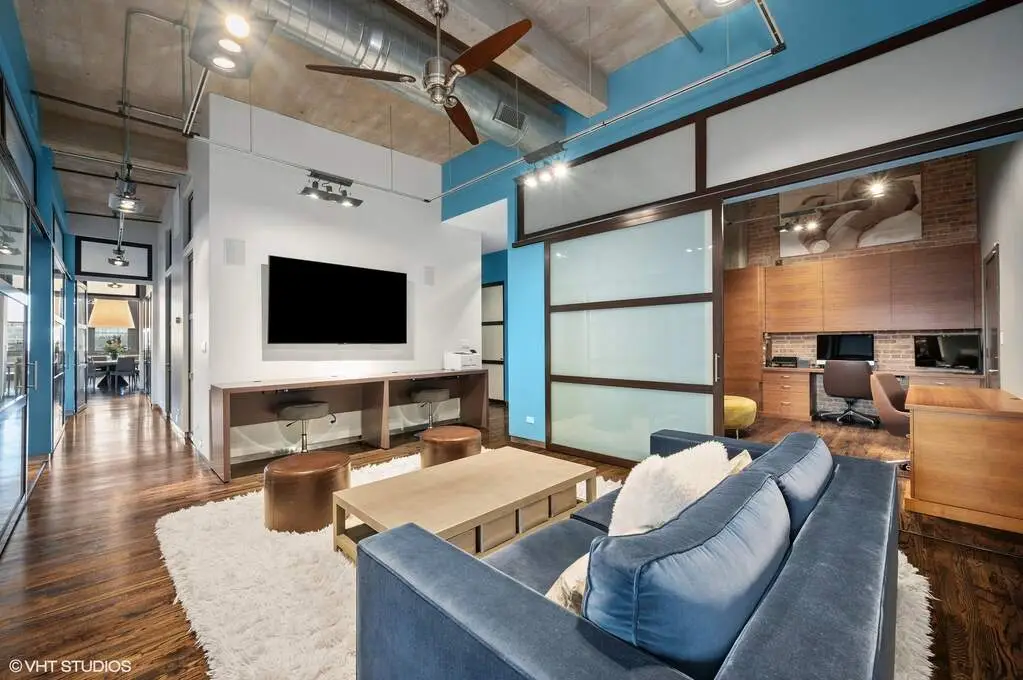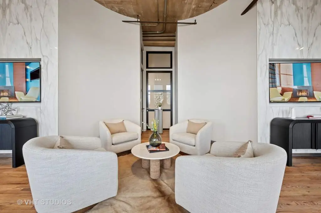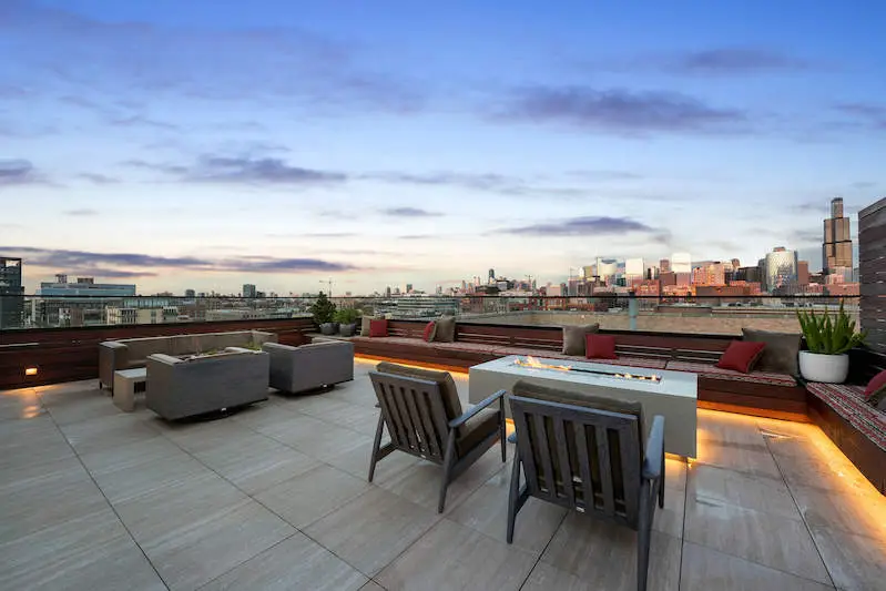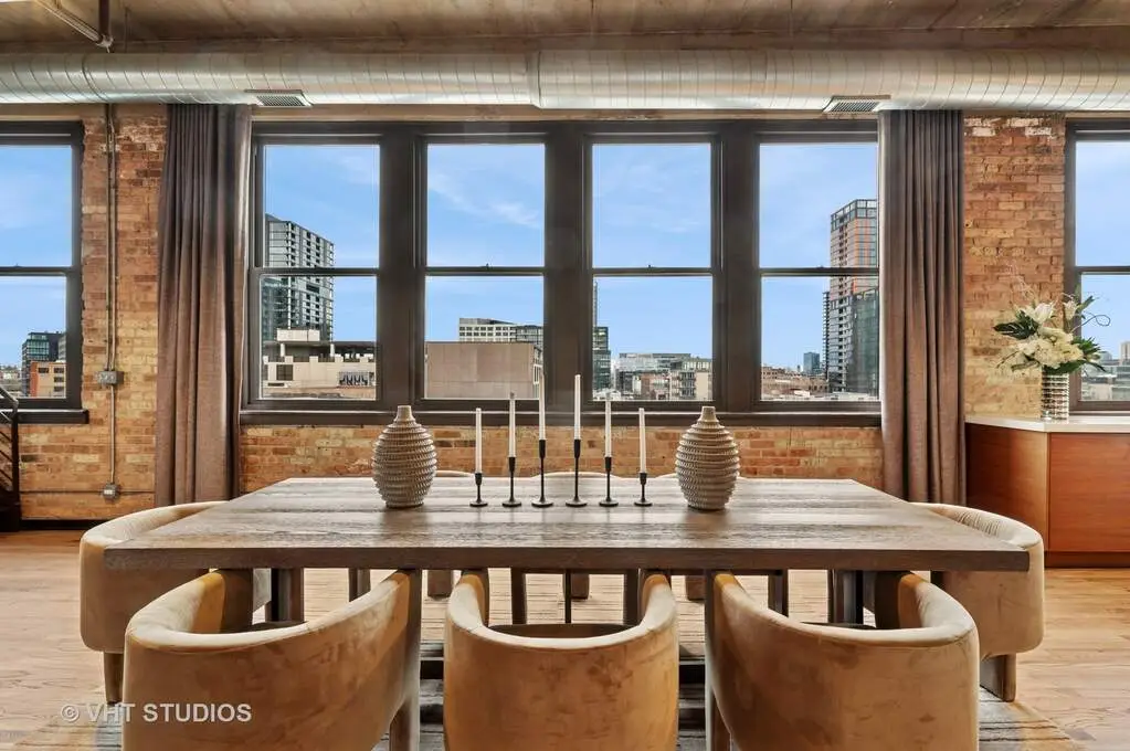 Welcome to Fulton Market, one of the hottest and most sought-after neighborhoods in Chicago! This multi-level penthouse residence offers a spacious 4600SF+ open floor plan living space with treetop and spectacular and unprecedented Chicago skyline views. With the open floor plan there are so many different entertaining and living arrangements that will fit your individual needs. The chef's kitchen is loaded with all the lux amenities you'd expect including custom cabinetry, a massive island for entertaining, and high-end appliances from Miele, Wolf, and Sub-Zero. With four oversized bedrooms, an oversized family room/playroom, and a guest room/office, this home offers plenty of space for both work and play. Each of the rooms in this location have large frosted door panels, and each of the four bedrooms has an oversized sliding door panel for privacy as well as allowing the room to be open and connected with the common areas. The oversized primary bedroom features twin walk-in closets, and each of the other bedrooms includes large walk-in closets and access to the centrally located playroom/rec room. Other features of the home include solid hardwood floors throughout, built-in custom cabinetry in each room, and a walk-in laundry room upstairs. The property has three deeded parking spaces are additionally available: two outdoor spots and one indoor space all behind the secure automatic entry gate. Optional and not required with purchase of the residence. Located in the top-ranked Skinner Elementary School District, this home is also conveniently located near world-class restaurants, iconic festivals, and popular nightlife offerings such as Soho House's Fox Bar, The Press Room, CH Distillery, and City Winery. Easy transportation to and from the core central business district, the parks, and the lake and beyond.