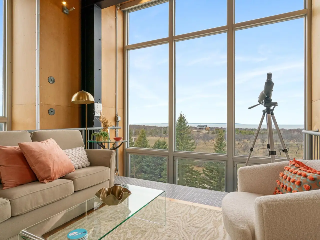 MODERN GEM in Leelanau County. Designed by renowned San Francisco architect Anderson Anderson, this house is imagination come to life - the landscape and sky is captured and reflected in the siding changing the color throughout a day. The delight continues inside with a captivating floor plan; first floor, nice views of Lake Michigan, second floor, oh look - you can see The Lake all the way to the Whaleback, third floor - OMG you can see The Lake all the way to Pyramid Point! Fourth floor - I friggin' think that's Wisconsin!! And the nooks and crannies in between each level, ooh la la. Imagine living in a house that amazes you every day. Beach, restaurants less than a mile away.