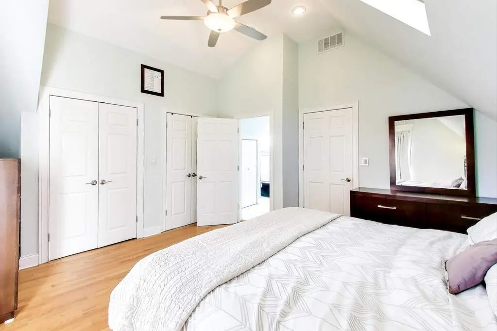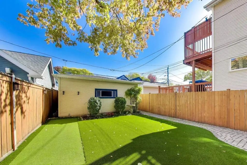 Stunning North Center home in the coveted Coonley School District! Beautifully updated 5-bedroom, 4-bathroom residence blending classic craftsmanship with modern luxury. Situated on one of the area's most charming tree-lined blocks, this home features hardwood floors, rich natural woodwork, solid-core doors, and designer lighting throughout. The 2020 custom kitchen showcases high-end shaker cabinetry with integrated lighting, quartz countertops, a white glass tile backsplash, and premium appliances including a DCS range and Bosch dishwasher. Upstairs, vaulted ceilings highlight the spacious primary suite with Juliet balcony, skylight, and a nearly remodeled spa-like bath boasting Grohe fixtures, rain shower, jetted Neptune tub, dual sinks, and abundant natural light. The finished lower level offers a bright open layout, full laundry room, living area, bedroom, new full bathroom, and a convenient side entry. Enjoy a recently turfed backyard complete with putting green, large entertaining deck, and two-car garage. Experience the welcoming community vibe with popular neighborhood block parties. Steps to the Brown Line, Welles Park, Sulzer Library, Old Town School of Folk Music, restaurants, shops, and the Davis Theatre-this home has it all!