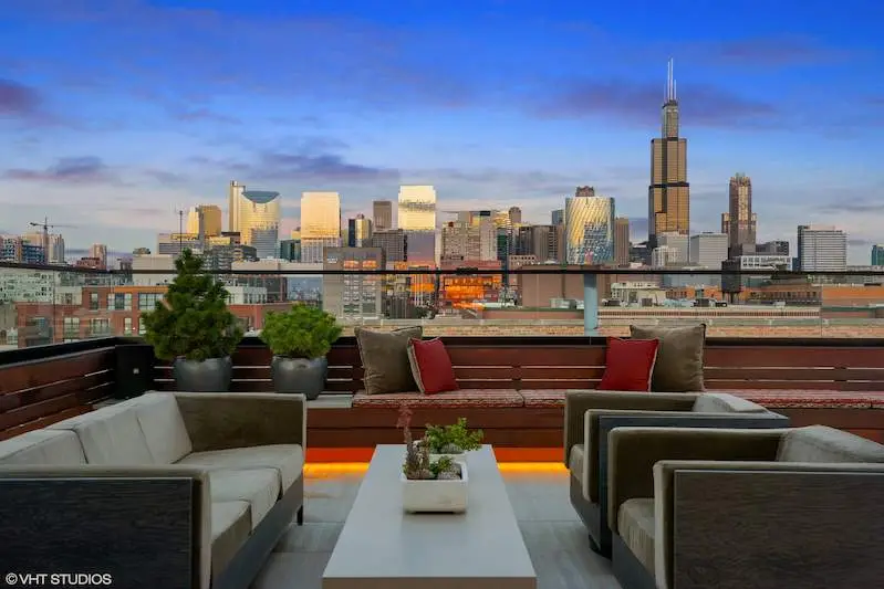 Welcome to Fulton Market, one of the hottest and most sought-after neighborhoods in Chicago. This warm and welcoming multi-level penthouse residence offers a spacious 4575SF open floor plan living space with spectacular, unobstructed and unprecedented Chicago skyline views. Many upgrades in 2025 brings a fresh look to this residence including the massive stone features in the chef's kitchen loaded with all the lux amenities you'd expect including custom cabinetry, a large island for entertaining, and high-end appliances from Miele, Wolf, and Sub Zero. With four oversized bedrooms, an oversized family room/playroom, and a guest room/office, this home offers plenty of space. The oversized primary bedroom features twin walk-in closets, and each of the other bedrooms includes large walk-in closets and access to the centrally located playroom/rec room. Other features of the home include solid newly sanded and stained hardwood floors in 2025 throughout; built-in custom cabinetry in each room, and a walk-in laundry room. The property offers three deeded parking spaces additionally available: two outdoor spaces and one indoor space all behind the secure automatic entry gate. Sellers currently swap one outdoor spot for an indoor garage space which could continue to buyers. Located in the top-ranked Skinner Elementary School District, this home is also conveniently located near world-class restaurants, iconic festivals, and popular nightlife offerings such as Soho House's Fox Bar, The Press Room, CH Distillery, and City Winery. Easy transportation to and from the core central business district, the parks, and the lake and beyond. Common capital improvements are completed.