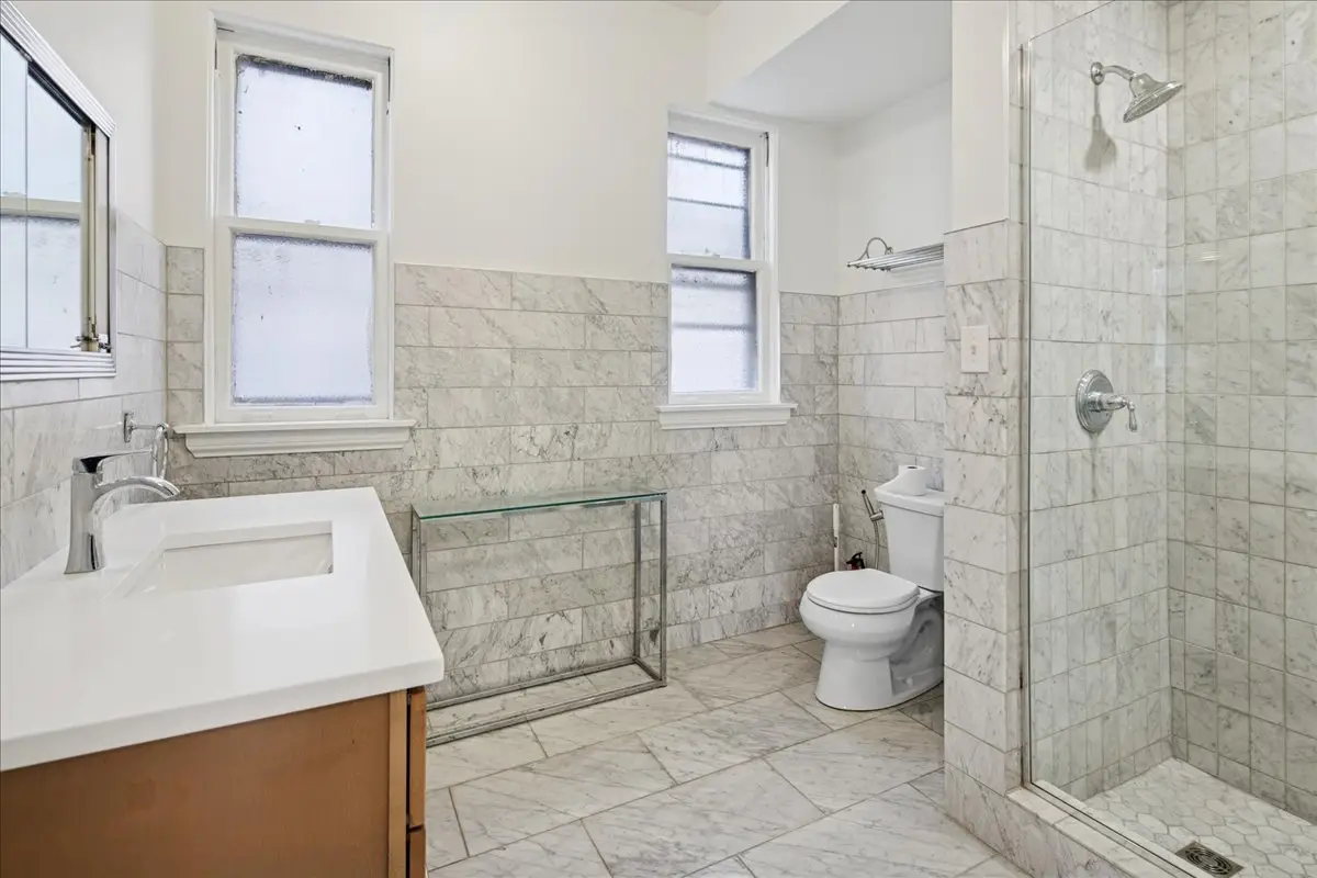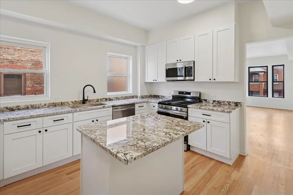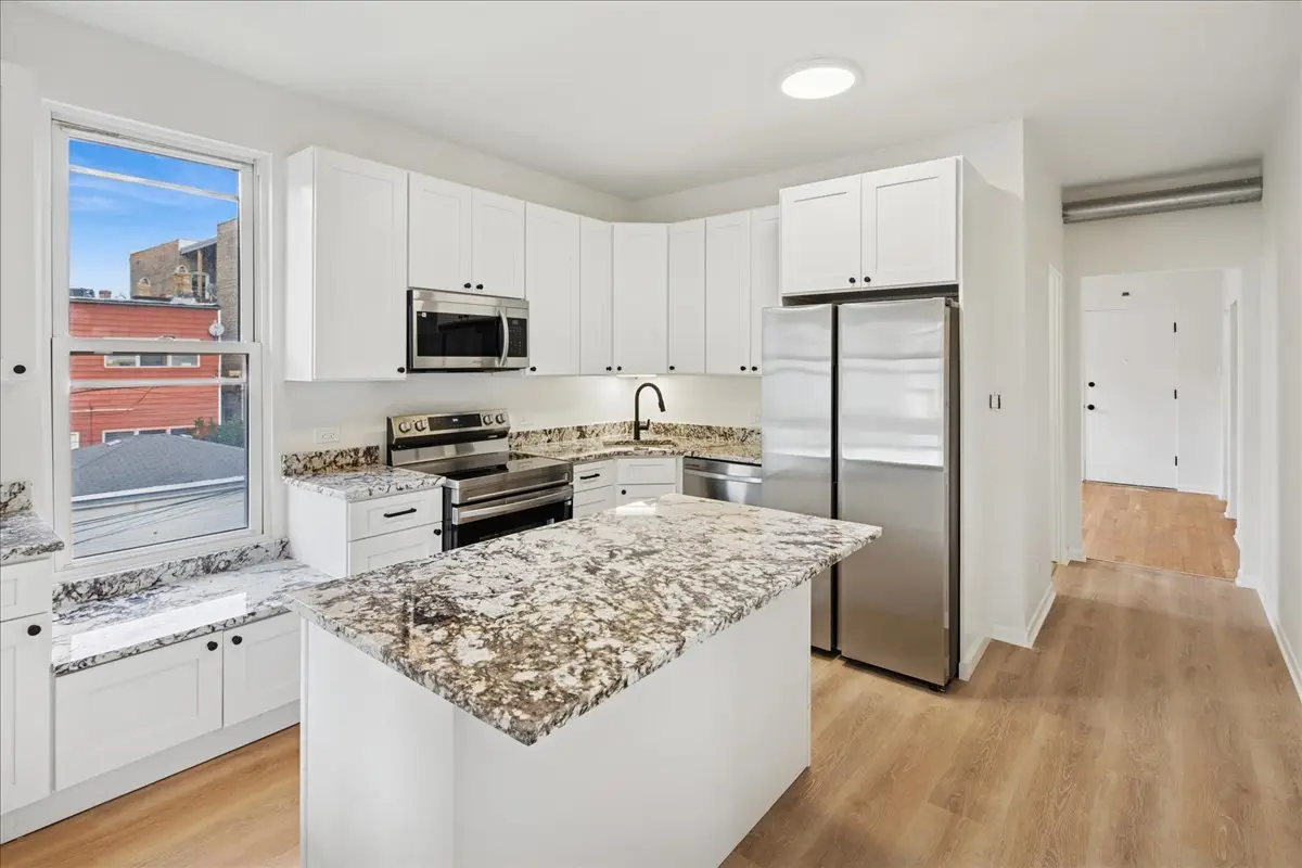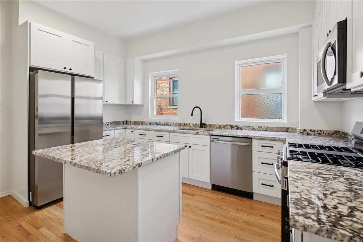 Turnkey Mixed-Use Gem with Upscale Restaurant & Two Modern Apartments This beautifully updated 3-unit building blends modern sophistication with strong investment potential. The main level features a fully built-out restaurant and bar, designed with striking dark finishes, custom millwork, and a warm, inviting ambiance. From the polished bar seating to the elegant banquette dining, every inch of the space exudes style and functionality. The full basement houses the restaurant's dedicated kitchen prep and dishwashing area, office, and generous storage, creating a seamless workflow for any operator. Upstairs, you'll find two fully renovated 2-bedroom, 1-bath apartments, each showcasing bright, contemporary interiors. These residences offer open kitchens with granite counters, stainless steel appliances, white cabinetry, and updated baths clad in marble-look tile-ideal for strong rental income or live-in ownership. Whether you're an investor seeking a stable income property or a restaurateur looking for a ready-to-operate space with residential units above, this building offers an unbeatable opportunity. Turnkey condition, beautiful finishes throughout, and prime street visibility make this a rare find in today's market. There is also a 2 car garage.