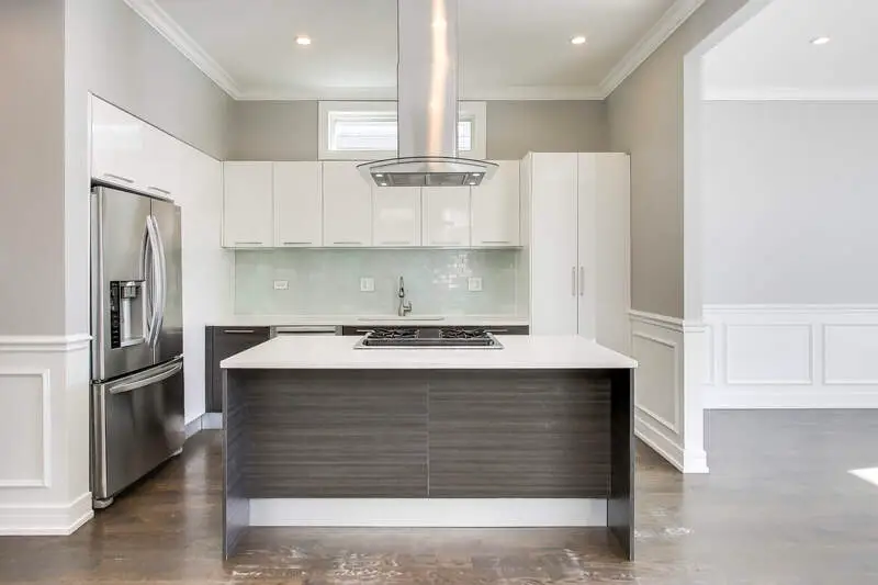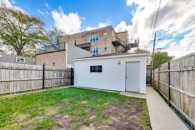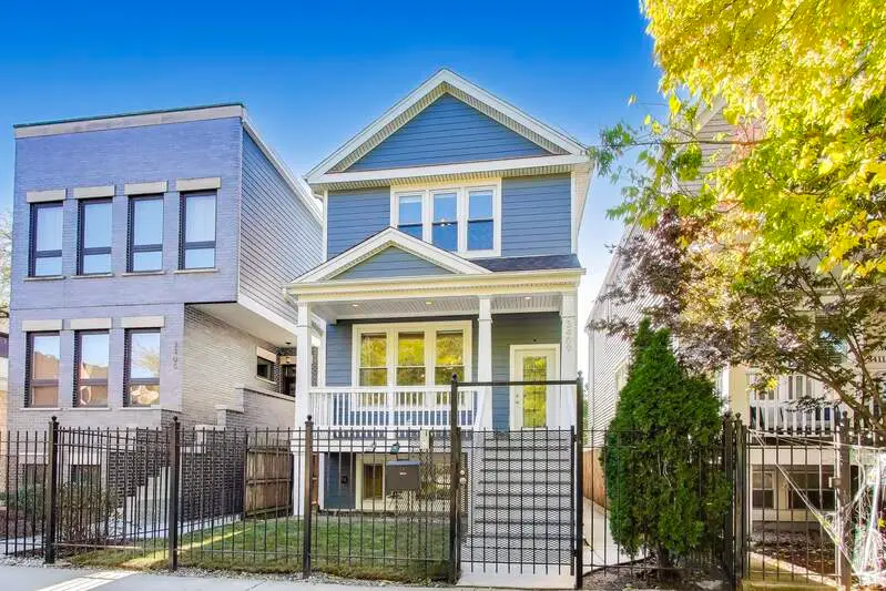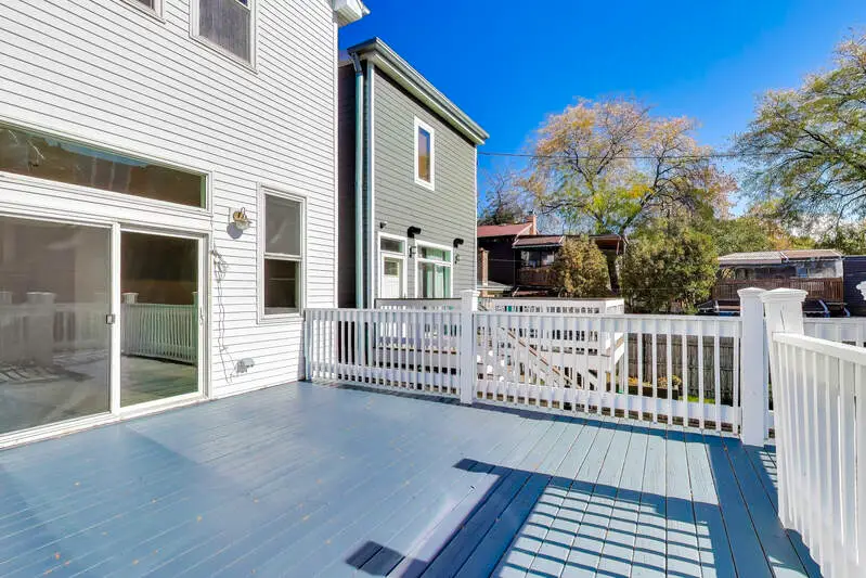 This Single-family home in Logan Square was built in 2014 on an extra-deep 25' x 138' lot. With over 3,000 sq ft across three finished levels, this freshly painted residence blends modern design, quality craftsmanship, and prime location. A newly refinished and painted front porch welcomes you inside, where hardwood floors, high ceilings, crown molding, wainscoting, and skylights create a bright, elegant feel. The main level offers a gas-starter, wood-burning fireplace with marble surround, a designer powder room, and an open-concept kitchen and family room-ideal for entertaining. The chef's kitchen features Italian two-tone cabinetry, quartz countertops, a glass tile backsplash, stainless steel appliances, and a large island with breakfast bar. Step out to the huge rear deck and fenced backyard for outdoor dining and relaxation. A feature only available due to the additional depth of the lot. Upstairs, find three bedrooms and two baths, including a primary suite with walk-in closet, soaking tub, and steam shower. A secondary bedroom with built-in bunk beds adds functional charm. The lower level includes a versatile family/media room, a wet bar with mini-fridge, two additional bedrooms, a full bath, laundry, and ample storage. Additional highlights: zoned HVAC with Nest thermostats, wired for sound, and a 2-car garage. Just one block from the 606 Trail and near Logan Square's best restaurants, cafes, and bars-this home delivers space, style, and city living at its best.