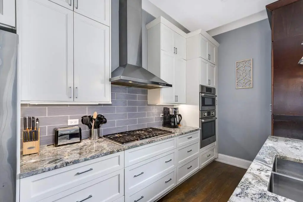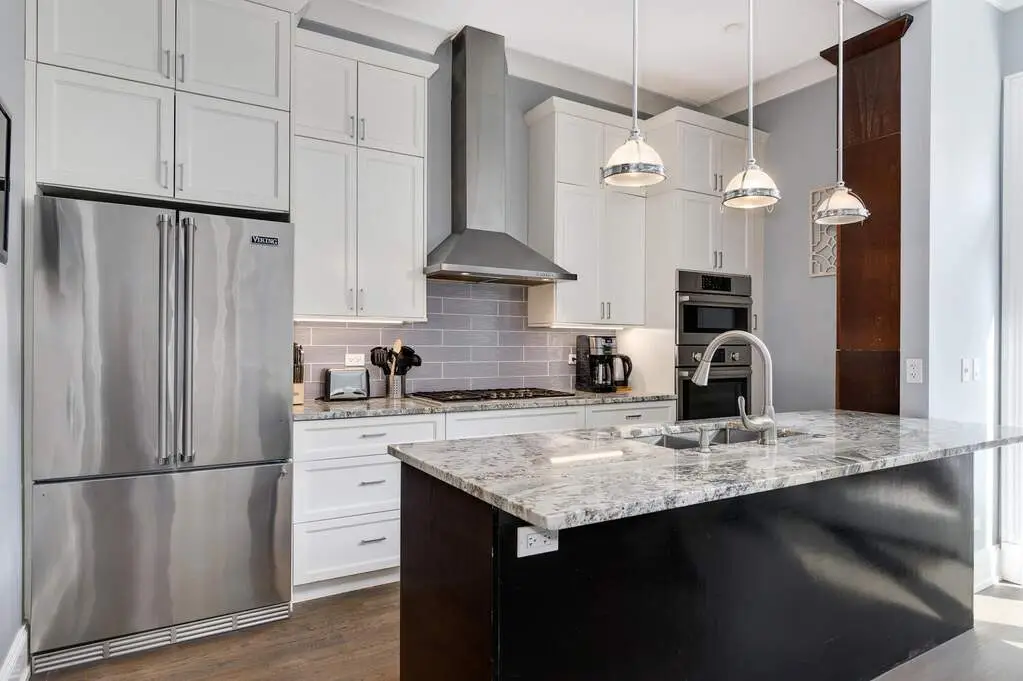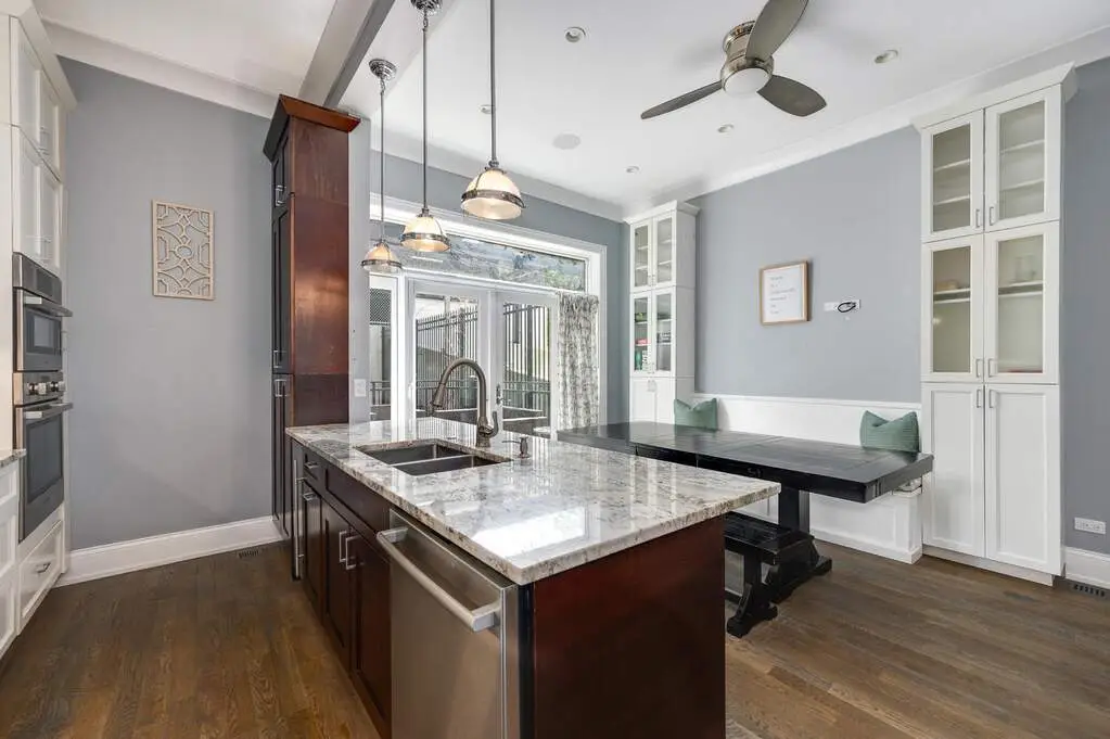 Welcome to this spectacular Gold Coast rowhome! This meticulously renovated property boasts a sophisticated layout and tasteful decor, ensuring a truly luxurious living experience. The main floor is equipped with a guest bedroom and a full guest bath, perfect for accommodating visitors. The large family room on this level provides access to the fabulous yard, creating a seamless indoor-outdoor transition. On the second floor, find an open concept kitchen with ample counter space and premium grade appliances. The functional dining space seamlessly flows into the massive living room, providing the ideal setting for entertaining guests. The highlight of this level is the huge outdoor space, featuring engineered decking and offering direct access to the backyard. Enjoy the abundance of natural light and the beaming southern exposure in this kitchen. The top floor of this home features three bedrooms and two full bathrooms. The primary bathroom is a true oasis, boasting dual vanities, a private glass-enclosed shower, and a gorgeous free-standing tub. The bedrooms are adorned with walk-in closets and offer wonderful natural light, creating a serene and comfortable atmosphere. Designed with great flow and attention to detail, this property also offers ample storage throughout. Includes two deeded indoor garage spots at the building directly behind the home. Don't miss the opportunity to own this magnificent Gold Coast Rowhome, offering luxurious living, stunning outdoor spaces, and an unbeatable location. This is also a great development opportunity with the two neighboring properties at 109 and 111 W Elm.