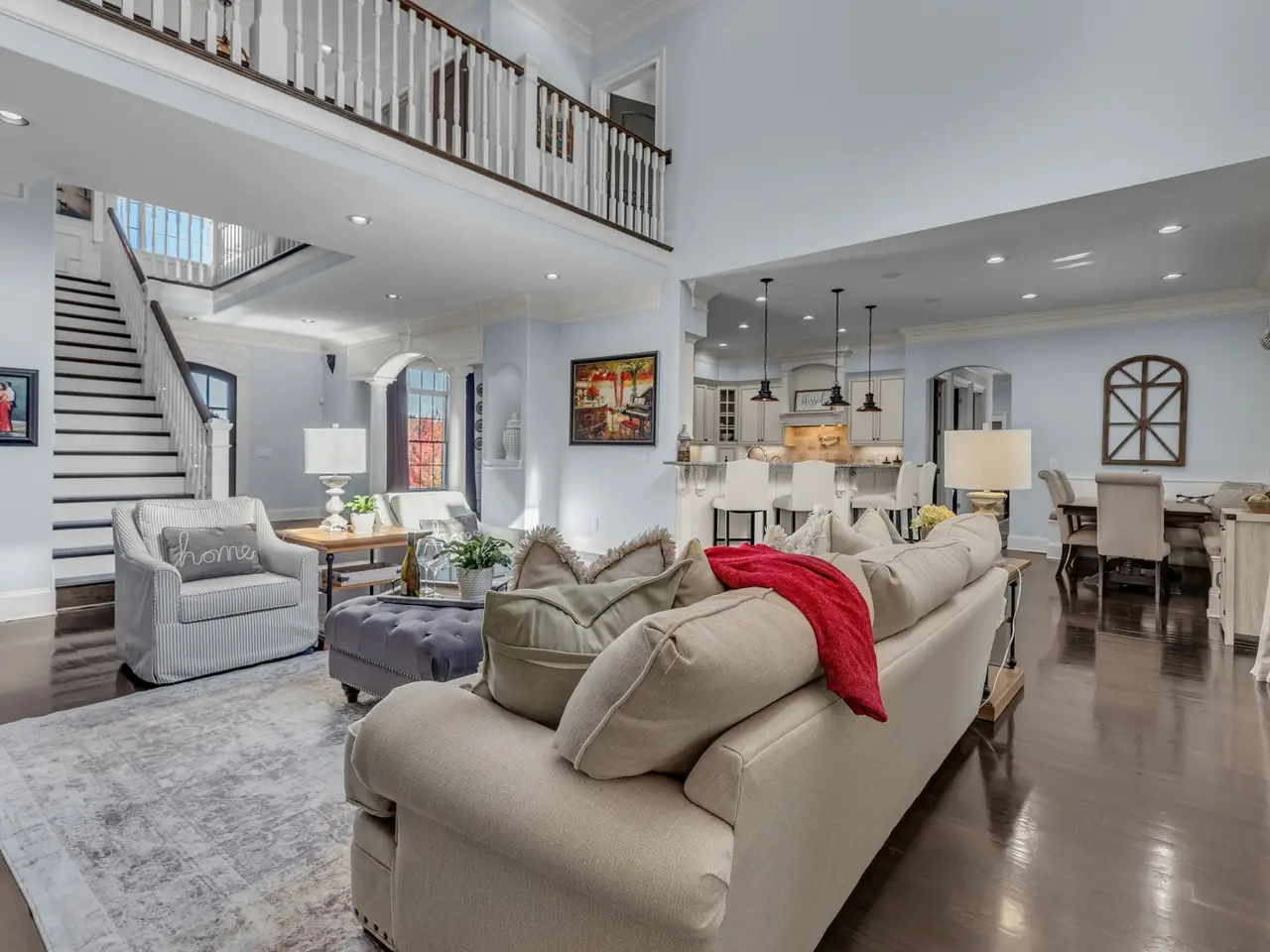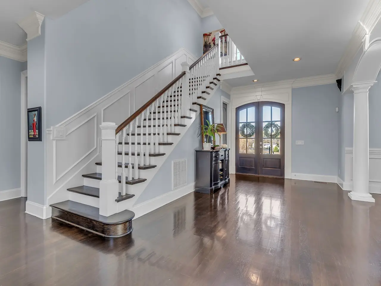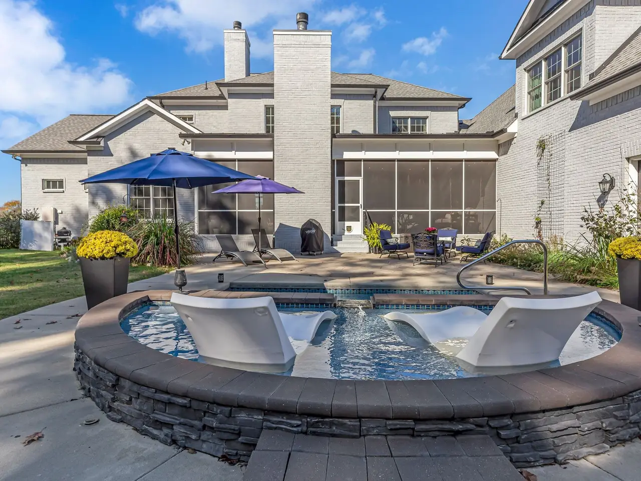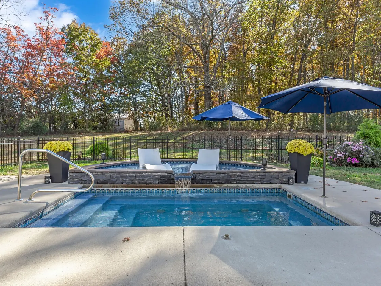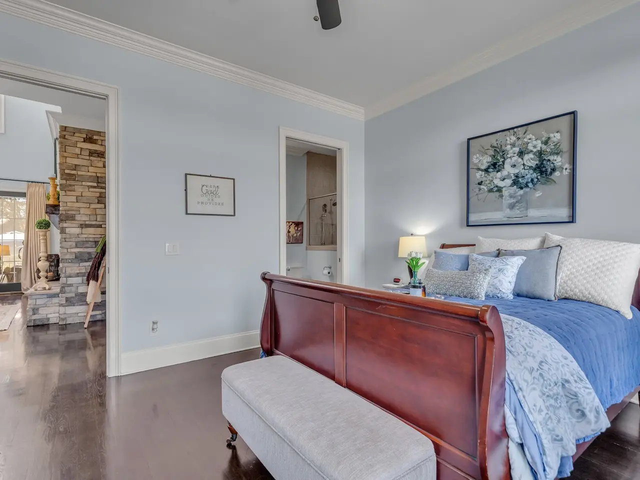 Step inside through the double front doors into a bright and open floorplan featuring a spacious family room, dining and gourmet kitchen equipped with high end finishes and a walk in pantry. Storm/safe room is 6x10 off kitchen, the back staircase leads to a lg bonus, perfect for media room or playroom. This home offers 4 bedrooms plus an additional flex room currently used as an office with its own closet and full bath. 2 bedrooms including the primary suite are located on the main level. Every bedroom has built-ins in the closets and its own bath. Set on over 7 completely private acres, the property if fenced and cross fenced with a barn featuring electricity and concrete floor and ready to add your stalls. Enjoy the plunge pool and tanning ledge and lg screened in porch with wood burning fireplace. Property backs to approx 1 acre of wooded land for added privacy. Lots of walk in storage.