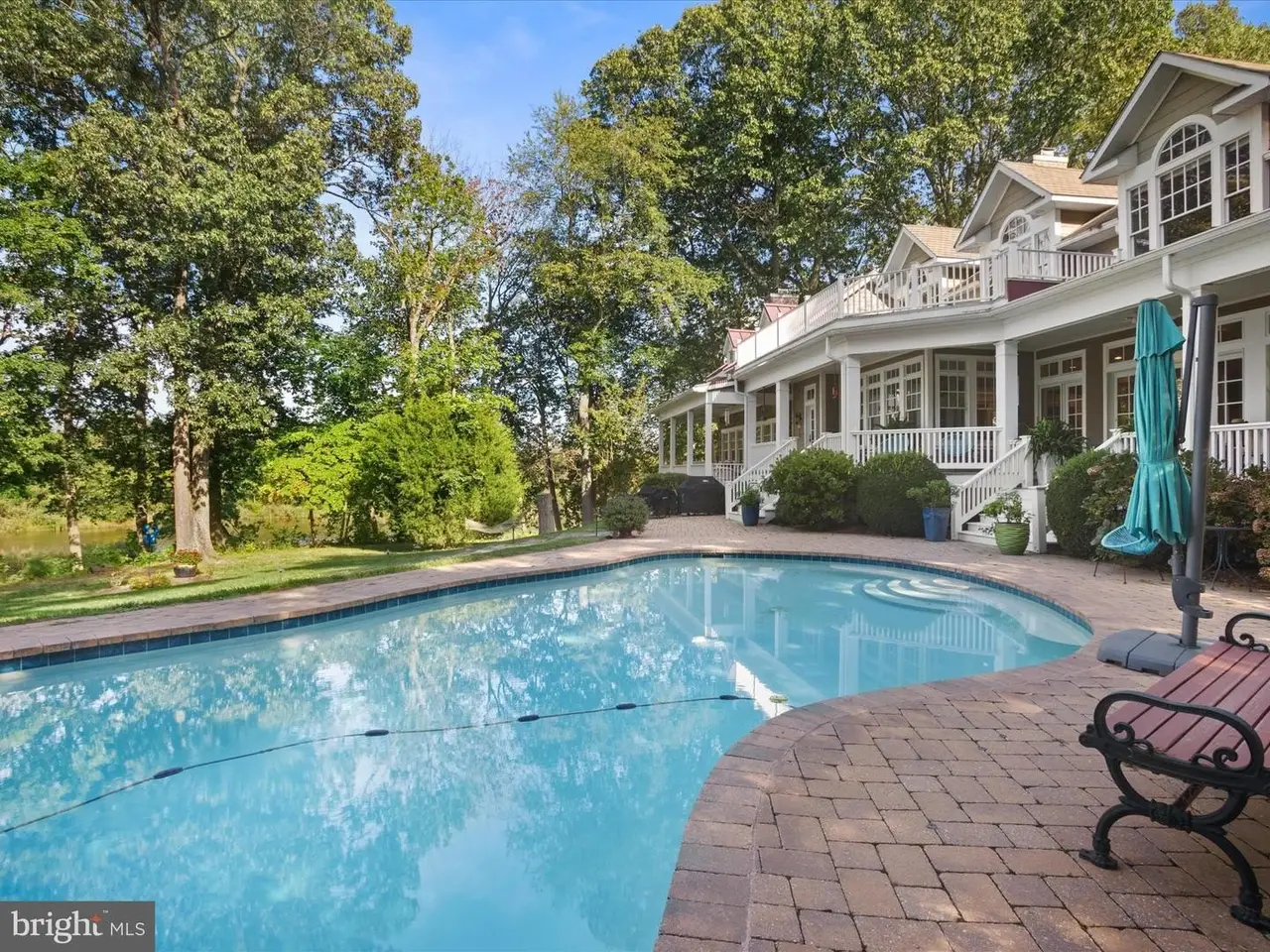 Experience unparalleled waterfront living in this stunning Coastal Farmhouse situated on 13.2 private acres in the desirable Kennersley Farm community. Custom-built as a former builder's residence, this home showcases the highest quality materials and exceptional craftsmanship throughout. With 8 bedrooms and 6 full baths in the main house, plus a charming 2-bedroom Carriage House with a full kitchen and bath, this estate offers expansive space for family and guests to gather. The detached stone carriage house is located over a 2-car side-loading garage with a conditioned work/storage room. Step inside the main house to find meticulously designed interiors featuring low-maintenance hewn pine hardwood floors, 8-inch wood base, solid wood doors, and raised wood panel wainscoting. The waterside family room is a true showstopper with a coffered ceiling, stone fireplace, a designer mantle, built-in media, and panoramic views. Entertain effortlessly in the central gourmet kitchen with waterside access or enjoy vibrant indoor games in the oversized adjacent recreation room. Later, a quiet vibe will draw you to unwind in the main-level ensuite with an attached sunroom offering access to a serene side deck for a good read or morning coffee. With thoughtful design and attention to comfort and convenience, this home includes both main-level and upper-level laundry rooms, a finished attic bonus bedroom with a sitting area and a half bath, and endless customization possibilities for a future expansion in the unfinished basement with an exterior door and walk-up stair. Outdoor living is paramount with 450 feet of private navigable waterfront along Southeast Creek and views of the Chester River. A private dock equipped with water, electric service, 2 slips, and 2 ski lifts makes boating fun and accessible. Enjoy summer days by the waterside saltwater pool, complete with a paver patio, diving rock, and a 10-foot diving well. Evenings can be spent by the waterside stone fire pit or on the tiered covered porch and upper balcony overlooking the water. Nature enthusiasts will appreciate the natural shoreline, kayak launch, mature trees, and the presence of mated bald eagles. Professional landscaping and outdoor lighting enhance the estate's beauty, while a private lane with a security alarm ensures seclusion. Perfectly situated near Kennersley Point Marina and other nearby marinas, this location offers convenient access to Chestertown, Rock Hall, and Annapolis by boat, as well as MD 213, Rte-50, and Rte-301 by car. This fully furnished home is an entertainer's dream and a rare waterfront oasis-schedule your private tour today!