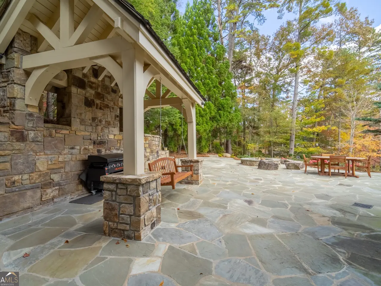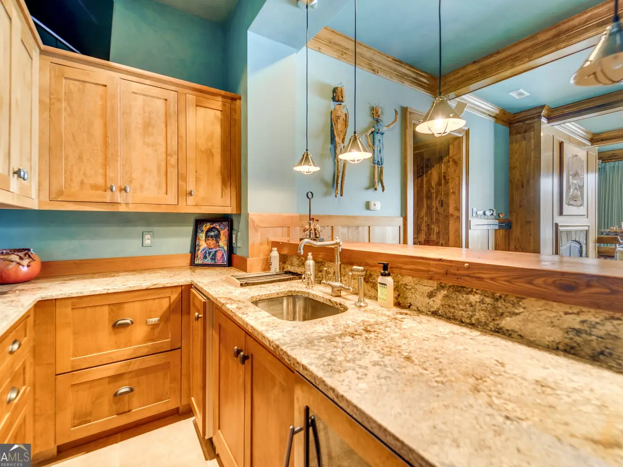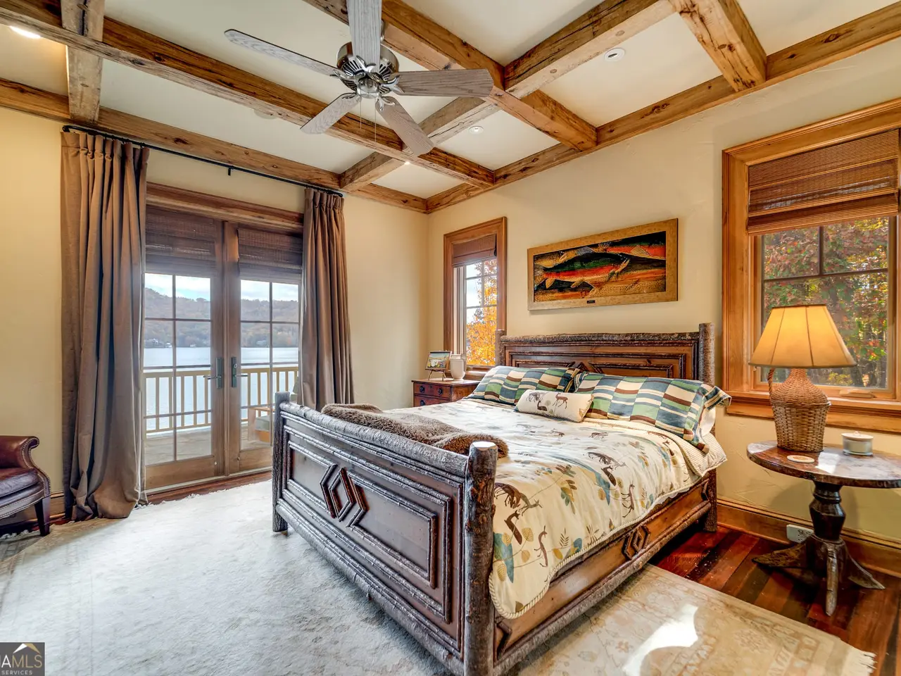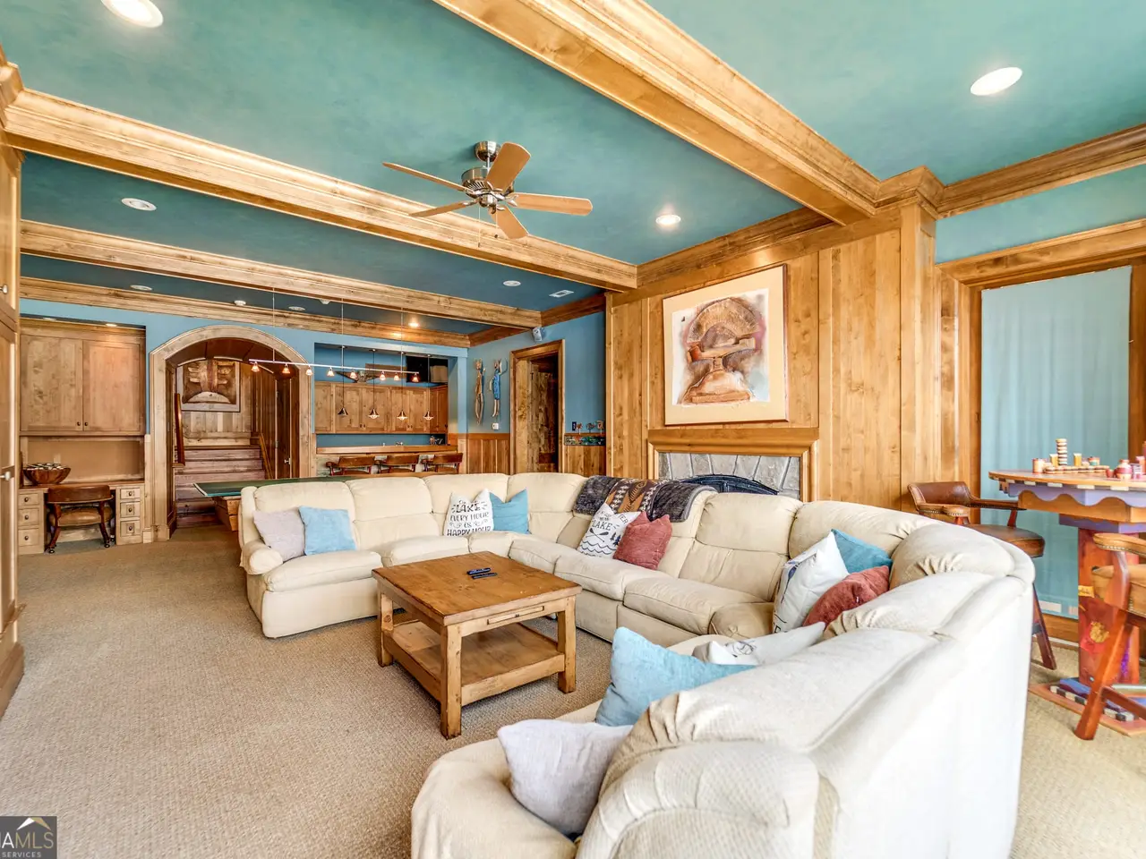 A true designer's showplace, this 5 BD, 5.5 ba Control4 Smart Home is the ultimate entertainer's retreat. Situated in a protected cove with sweeping lake and mountain views, the family room offers a vaulted ceiling, 2-story stone fireplace and wall of windows framing wide-open lake views. Make dining a blast in this gourmet kitchen with professional appliances, a authentic juke box, a stone fireplace, dining for 10+ and access to 2 covered lakeside porches. The terrace level is equipped with a family room with fireplace, billiards, wet bar and access to a sprawling lakeside patio with built-in 10' round Jacuzzi pool, oversized fire-pit, grilling pavilion and sport court. With 3 master suites and 2 bunk-rooms, this home comfortably sleeps 23 in beds. Amenities include a gym, office, art studio, 4 indoor fireplaces and 2 outdoor fireplaces, a carport, gated entry, paved access, pre-stubbed for elevator.