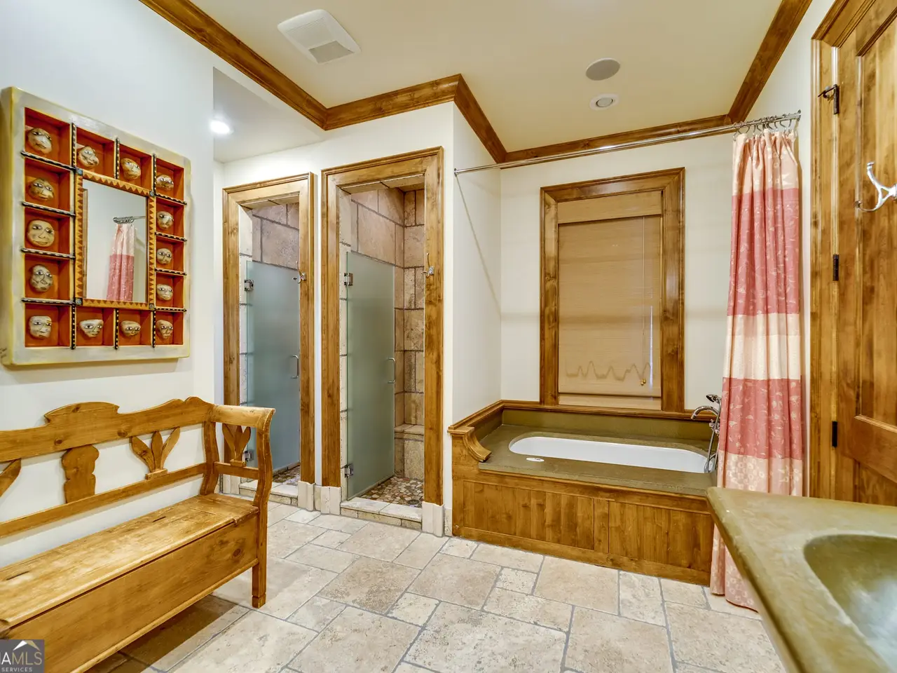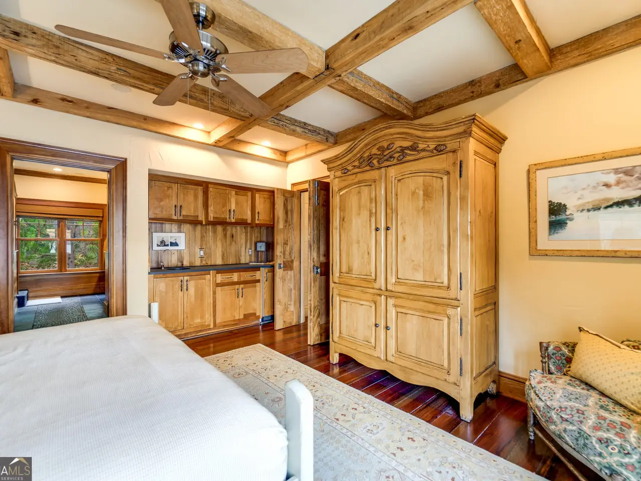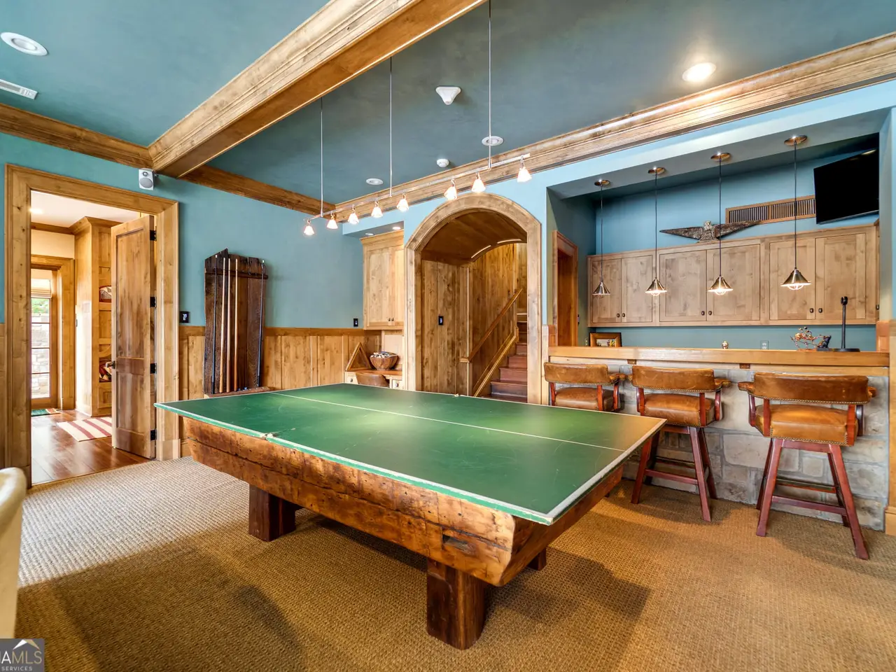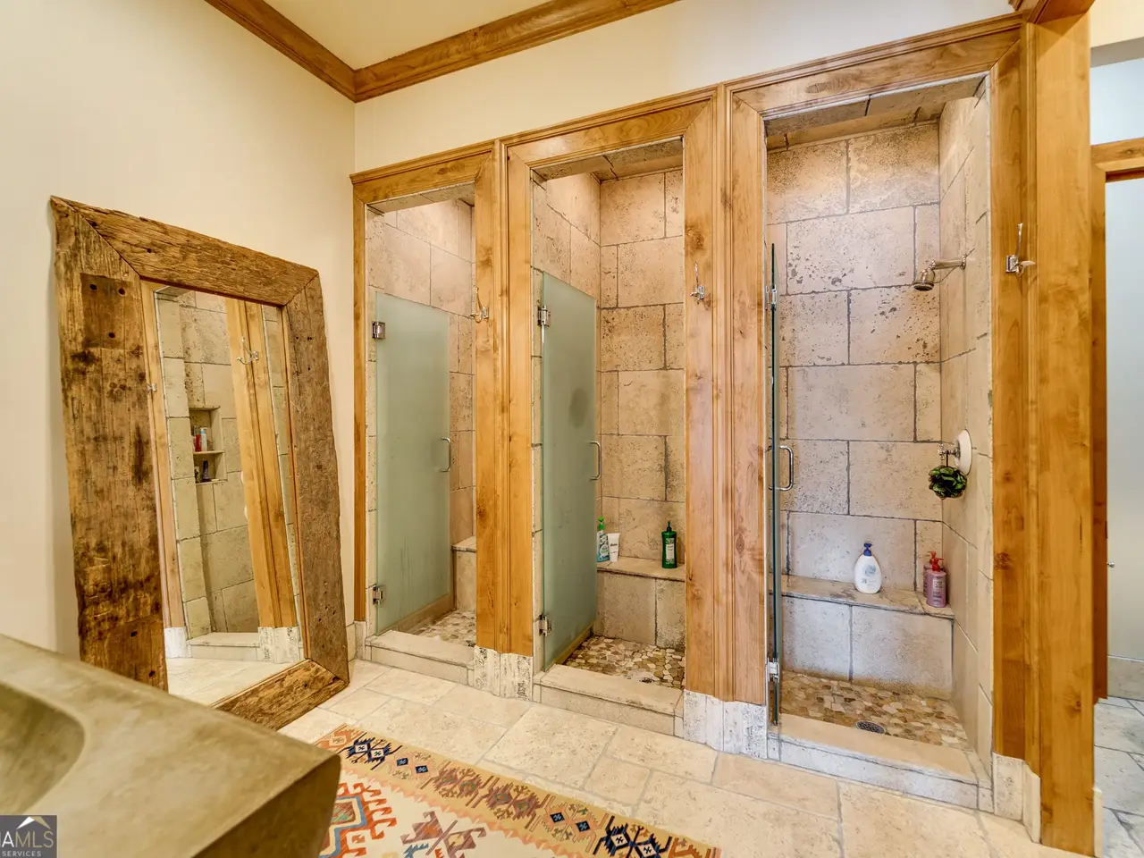 A true designer's showplace, this 5 BD, 5.5 ba Control4 Smart Home is the ultimate entertainer's retreat. Situated in a protected cove with sweeping lake and mountain views, the family room offers a vaulted ceiling, 2-story stone fireplace and wall of windows framing wide-open lake views. Make dining a blast in this gourmet kitchen with professional appliances, a authentic juke box, a stone fireplace, dining for 10+ and access to 2 covered lakeside porches. The terrace level is equipped with a family room with fireplace, billiards, wet bar and access to a sprawling lakeside patio with built-in 10' round Jacuzzi pool, oversized fire-pit, grilling pavilion and sport court. With 3 master suites and 2 bunk-rooms, this home comfortably sleeps 23 in beds. Amenities include a gym, office, art studio, 4 indoor fireplaces and 2 outdoor fireplaces, a carport, gated entry, paved access, pre-stubbed for elevator.