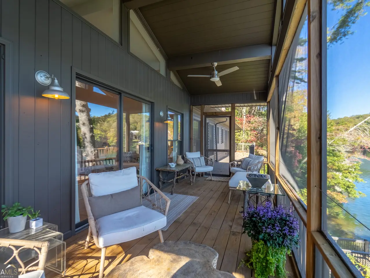 Enjoy fabulous sunrise views over Charlie Mountain from this 4 bedroom, 5 bath home on Lake Burton's big basin. This 1.34 acre property sits on deep water on the main body of lake burton with over 230' of shoreline. The freshly remodeled interior offers a vaulted great room with v-groove wood paneling and an all new kitchen with stainless appliances, new cabinetry and granite countertops. Enjoy expansive lake views through sliding glass doors that open to a lakeside screened porch and decks. The private master bedroom enjoys sunrise views over the lake from a private deck, a walk-in closet and newly remodeled en suite bath with a double vanity. Two spacious guest bedrooms on the main floor each enjoy lake views, walk-in closets, access to a lakeside deck and newly remodeled en suite baths. An oversized bedroom on the terrace level features lake views and a private full bath with double vanity. Also included on the terrace level are a second full bath, laundry room, kitchenette, dining area and living room with fireplace, all with lake views. A lakeside screened porch and ample decking are perched just above the lake overlooking sweeping mountain views. A new 2-story, 2-stall boathouse is easily accessed from the house and sits on deep water with coveted big water views. Don't miss this opportunity to own one of the best views on Lake Burton!