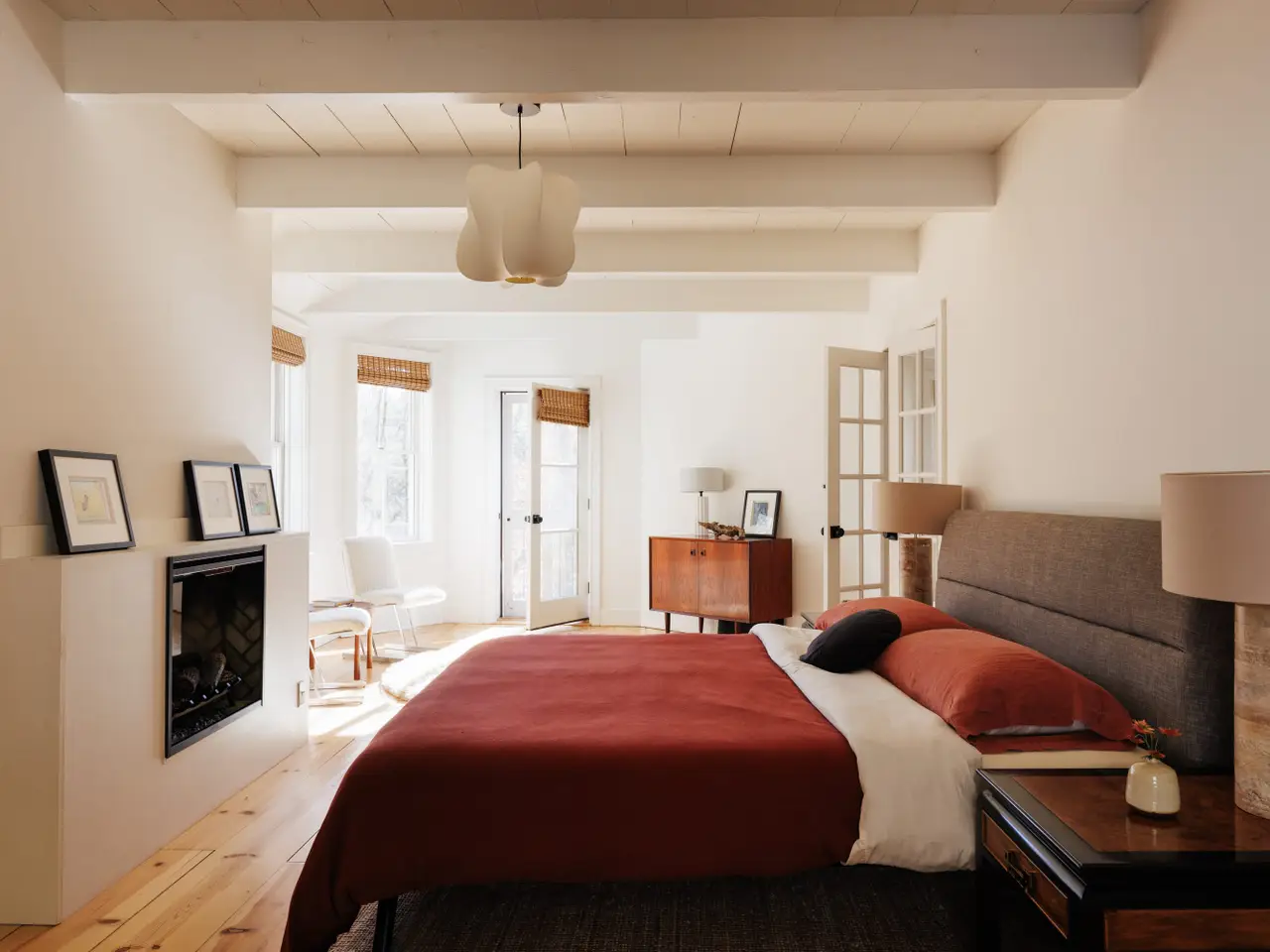 Gas fireplace in primary bedroom