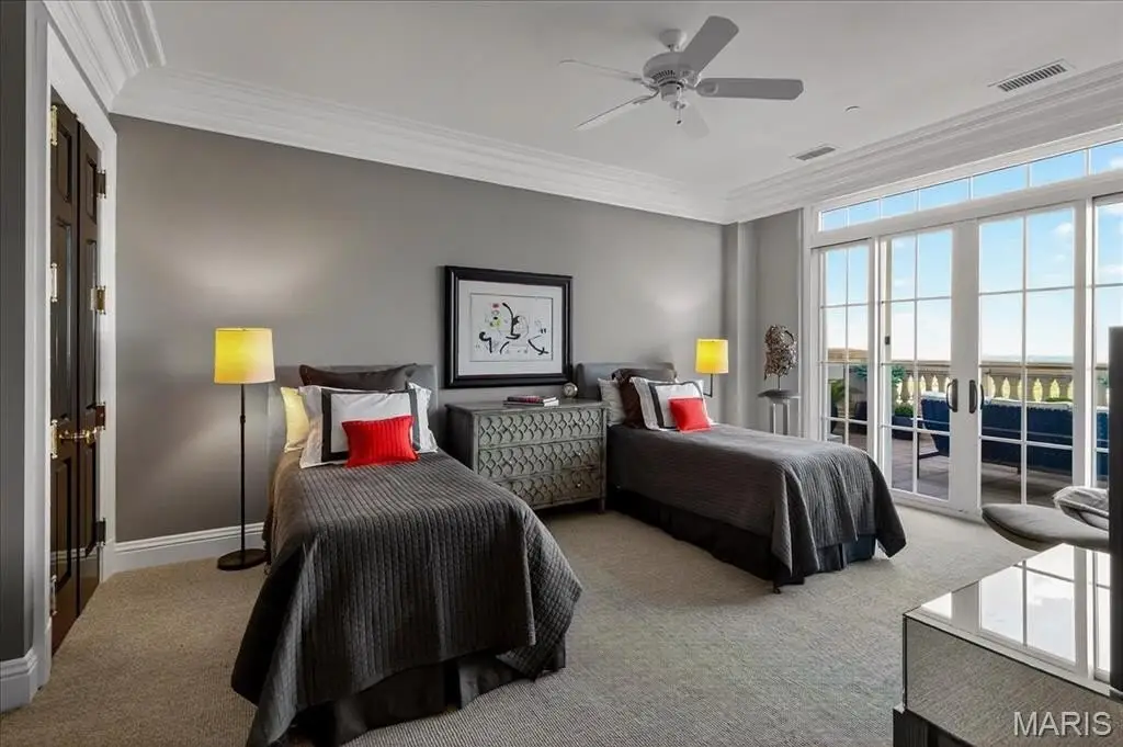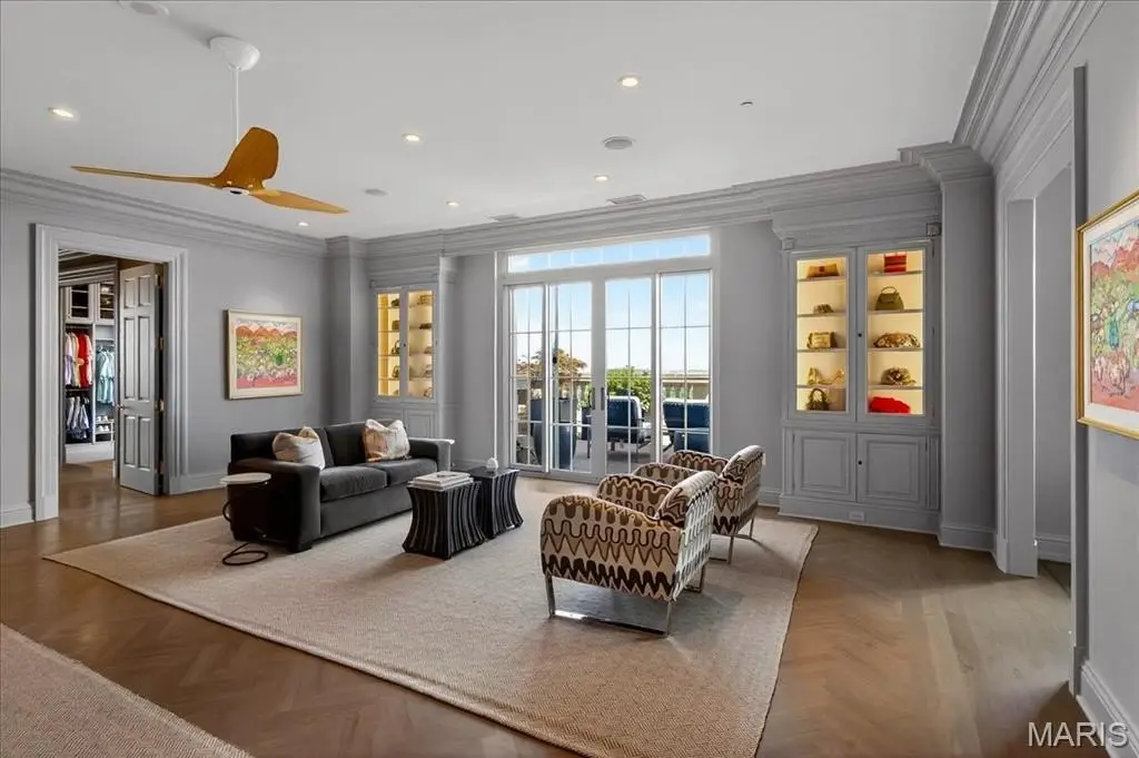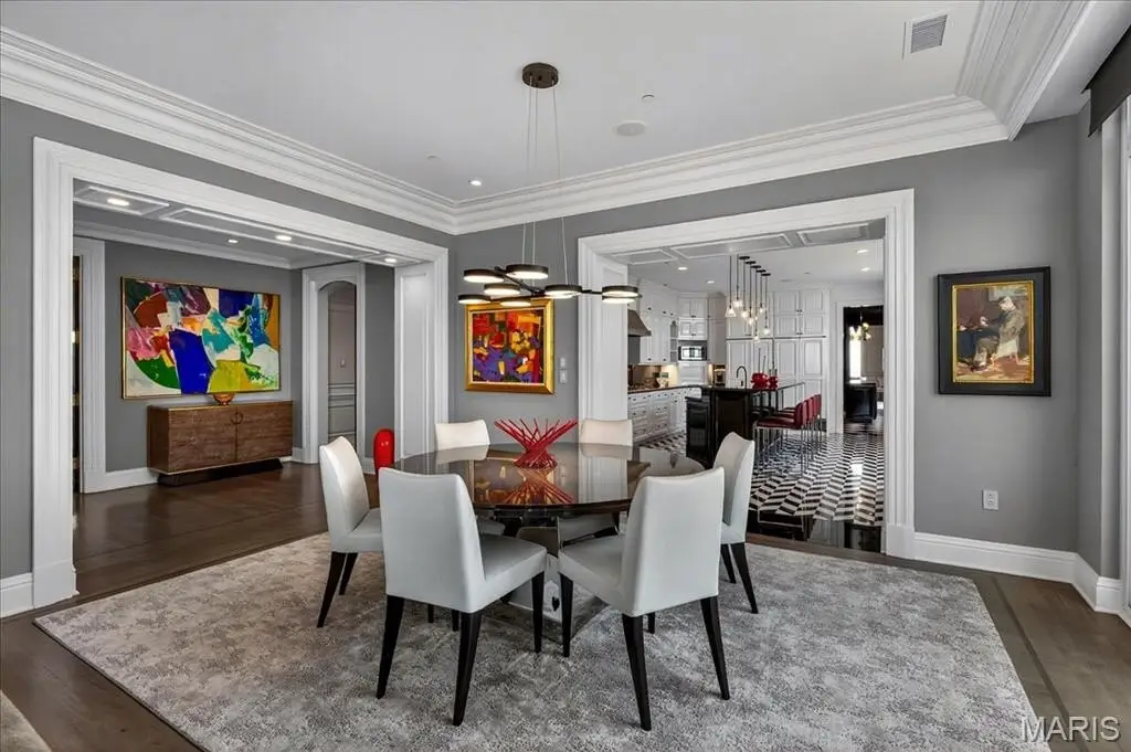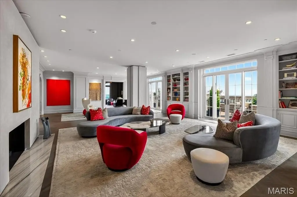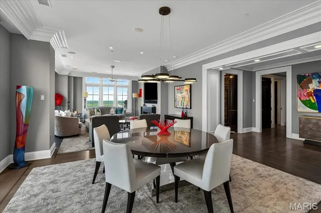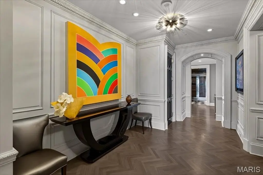 Welcome to the crown jewel of luxury living: this full-floor penthouse features 2800 square feet of outdoor living space across four expansive terraces with panoramic views in every direction. From your private elevator foyer, enter a residence of timeless architecture and refined design, showcasing exceptional millwork and custom walnut and ebony inlaid chevron floors. The Venetian-plastered living room serves as the elegant centerpiece, flanked by a formal dining room and a handsomely paneled library. Designed for entertaining and daily living, the kitchen boasts bold black-and-white marble floors, Wolf and Sub-Zero appliances, a large center island, and flows into the breakfast and family rooms. A lacquered Butler’s Pantry and Bar provides added serving space, while the 500-bottle wine room is ideal for collectors and hosts alike. The primary suite offers spectacular northern views, a sitting area, an office, and three oversized walk-in closets. The ensuite bath features dual water closets, a soaking tub, and a walk-in shower, creating a tranquil escape. Two additional bedroom suites provide comfort for family or guests, while a large laundry room with custom cabinetry and a full bath (formerly a fourth bedroom suite) adds flexibility. This extraordinary lifestyle includes 24-hour concierge service, valet parking, pool, fitness center, dog park, and four parking spaces, with Clayton’s finest eateries and boutiques just moments from your doorstep.