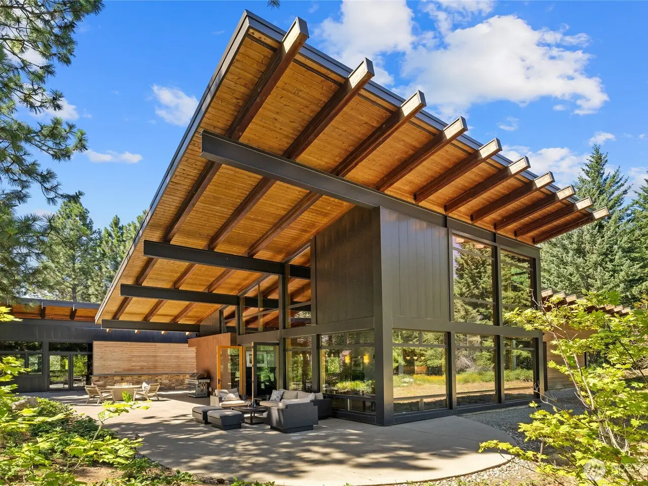 Extraordinary Tumble Creek architectural masterpiece overlooking the 9th green & fairway. Meticulously crafted by renowned Coates Design Architects & Brock Smith Custom Homes. Bespoke eco-luxury: radiant-heated engineered hardwood & concrete floors, mudroom & solar panels. Soaring steel-beam ceilings frame expansive window walls & a NanaWall system. The grand hand-stamped concrete fireplace replicates wood grain. Culinary sanctuary w/oversized zinc island for all your gatherings. Unparalleled vistas throughout. This curated residence includes an 1,134 square foot, 1 bed/1 bath guest house. Simply perfect for hosting! Garage includes: EV charging, temp-controlled wine cellar & abundant storage. Sustainable sophistication meets uncompromising luxury.