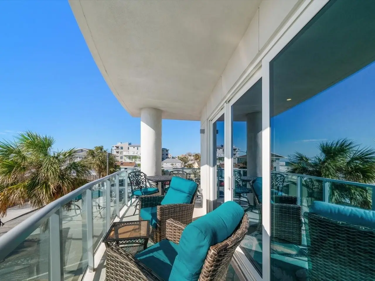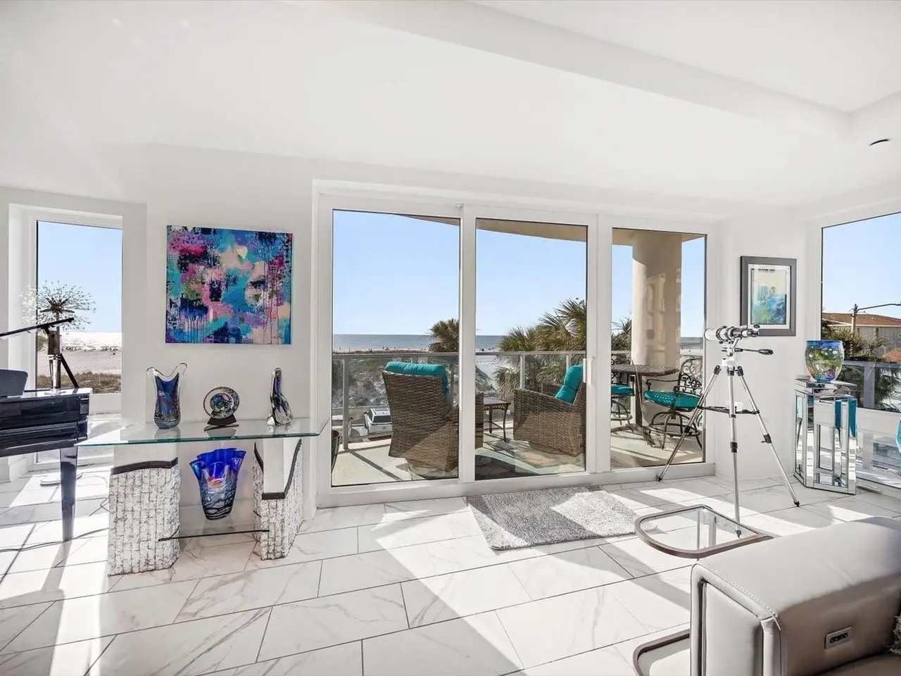 Experience the perfect fusion of luxury, coastal serenity and area vibrancy at Pura Vida Residences. Built in 2020, this exclusive community of just 22 private residences stands as one of the most recent additions to the tranquil, North end of award-winning Clearwater Beach yet is conveniently close to boutique shops, marine adventures, and a diverse array of dining options, from fine dining for special occasions to laid-back beachfront eateries…this is coastal living at its finest. Offering the largest floor plan in the building with 3,111sf, 4 bedrooms, 3.5 bathrooms, 10’ ceilings plus open concept living space, unit 303 is an exquisite and spacious NW corner residence offering comfort, style and refined living. Direct West facing floor-to-ceiling impact windows, sliders, and glass paneled balconies allow an abundance of natural light and seamlessly blend beach and Gulf views from the entire kitchen, living and dining areas, offering a front row seat to possibly some of the most spectacular sunsets you will ever see. Secure, direct elevator access opens to a dedicated foyer, where double doors lead you into this elegant coastal retreat. Art enthusiasts will appreciate the expansive hallways, ideal for showcasing personal collections. Premium features include Miele appliances, a 5-burner gas stove, sleek European-style cabinetry, oversized kitchen island with quartz countertops, tile flooring throughout, designer finishes, custom closets, motorized cellular shades (primary suite) and whole-unit water filtration. Select furniture pieces available, and all 7 wall-mounted flat-screen TVs convey. Conveniently located, private, climate controlled, 8x8 (approx) storage unit. Secure, gated entry to the building, 2 assigned under-building parking spaces (pre-wired for an electric vehicle charging station) located close to the lobby access. Personal beach locker for easy access to fun in the sun at your doorstep. Building amenities include heated pool with flow resistance, spa, club room, fitness center, indoor bike storage, key fob and digital security for doors and elevators, building back-up generator and 24-7 video security. Pro-active and professionally managed Association. Pet friendly building (1 pet under 30lbs). One month minimum rental. Don’t miss this rare opportunity to claim your elegant slice of paradise on Clearwater Beach.