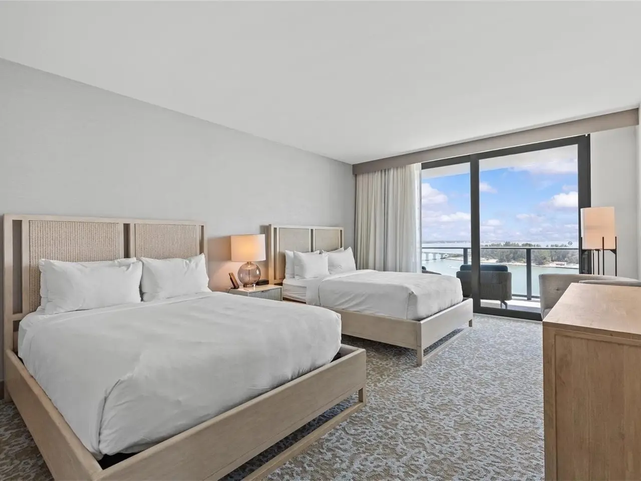 Experience elevated coastal living in this stunning, fully furnished 3-bedroom, 3-bathroom luxury condominium at the luxurious JW Marriott in Clearwater Beach. With sweeping views of the Gulf, this spacious residence blends contemporary design with relaxed coastal charm, offering the ultimate in resort-style living. Step into an open-concept living area adorned with coastal-inspired modern décor, where the sleeper sofa easily transforms into a full-size bed for additional guests. The gourmet 'vacation' kitchen is thoughtfully equipped with high-end appliances, including a refrigerator drawer, freezer drawer, convection microwave, and a full suite of countertop appliances, along with a full-size washer and dryer for added convenience. The primary suite is a luxurious retreat, featuring a king-size bed, spa-style soaking tub, upscale finishes, and breathtaking views of the turquoise waters. The second suite includes a king-size bed and en-suite bath, while the third bedroom offers double queen beds and access to a separate full bathroom — perfect for families or guests. Enjoy exclusive access to JW Marriott’s luxurious amenities, including a private beach with towel, umbrella, and food service, a spectacular rooftop pool with ocean views, multiple dining options, and exceptional resort services. Nestled in one of Florida’s most sought-after beachfront locations, this luxury condo offers an unmatched blend of comfort, style, and convenience — perfect as a vacation home, investment property, or full-time residence. This unit is currently enrolled in the Marriott Rental Program and acts as a suite in the resort; owner has usage rights outlined therein. Please ask for details. This is a hassle-free rental property and generates significant income. Live the JW Marriott lifestyle—where luxury meets the beach.