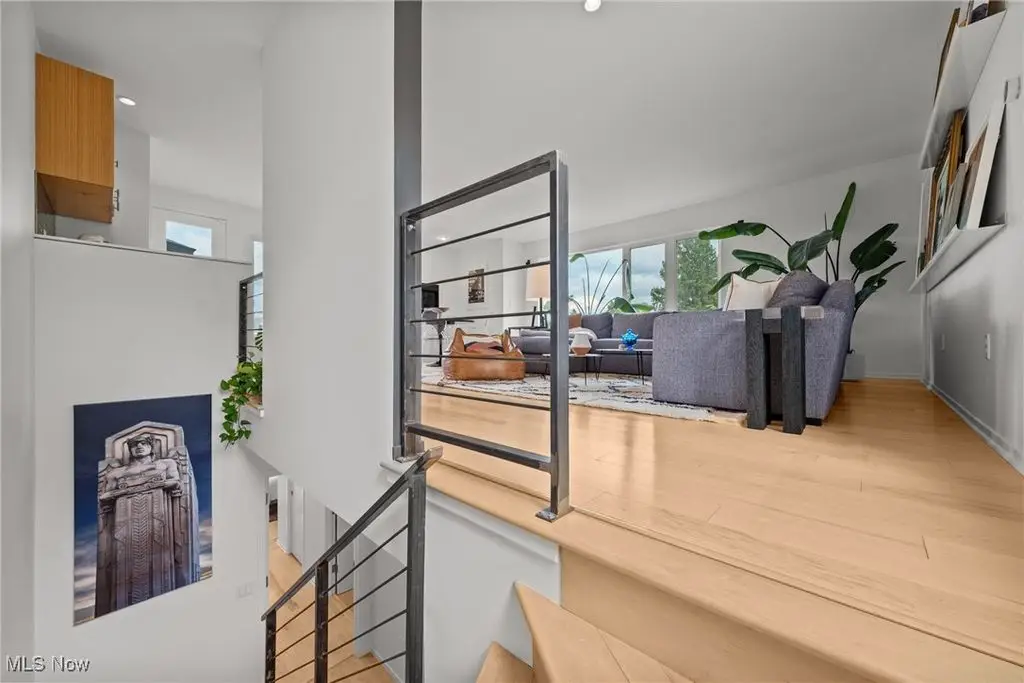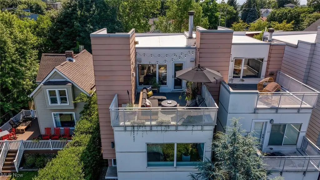 Sited on a knoll in the heart of Tremont, this one of a kind Barry Smith designed four-level townhome is in a class of its own!! Set off the street for maximum privacy, this end unit is surrounded by lush landscaping and has the most incredible outdoor entertainment space. Custom stone steps lead you into the dramatic foyer and sunlit interior! Walls of windows, hardwood floors throughout, and an exceptional design esthetic are evident throughout. The two-story great room has floor to ceiling architectural windows and a handsome wood-burning fireplace. At the heart of this home is the amazing kitchen/dining room area which will make entertaining exciting. Bamboo cabinets, a center-island, custom tile backsplash, pantry, and high end stainless steel appliances are just a few of the outstanding amenities. The bedroom level features two amazing suites each with private bathrooms. The owner's suite is incredibly luxurious, has unobstructed city views, and a spa like bathroom(dual vanities, steam shower, and private commode.) The piece de resistance is the upper level entertainment area which is surrounded in glass, has city views second to none, and the most remarkable rooftop terraces. There is a wet bar with wine refrigerator, surround sound system, and cozy fireplace. On top of all of this there is a finished lower level with an exercise room and private home office. Summers can also be enjoyed in the main level outdoor area which features a fabulous rock garden and stone patio. Added amenities include a private rear entrance garage on the main level, tankless hot water tank, and exceptional storage. Ideally located within steps of your favorite restaurants and the Towpath trail, this one of a kind property is more than just an incredible residence, it's a lifestyle!!
