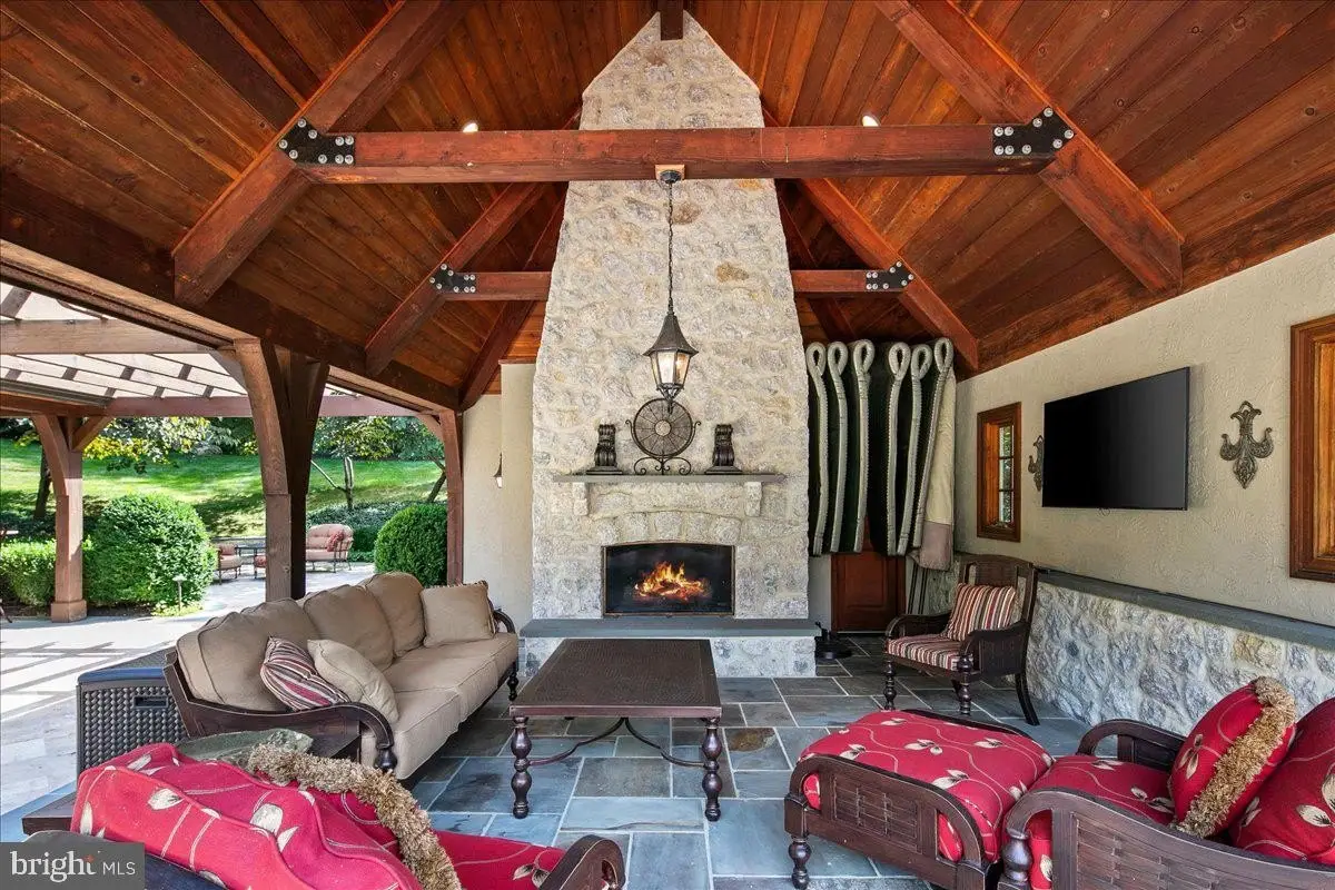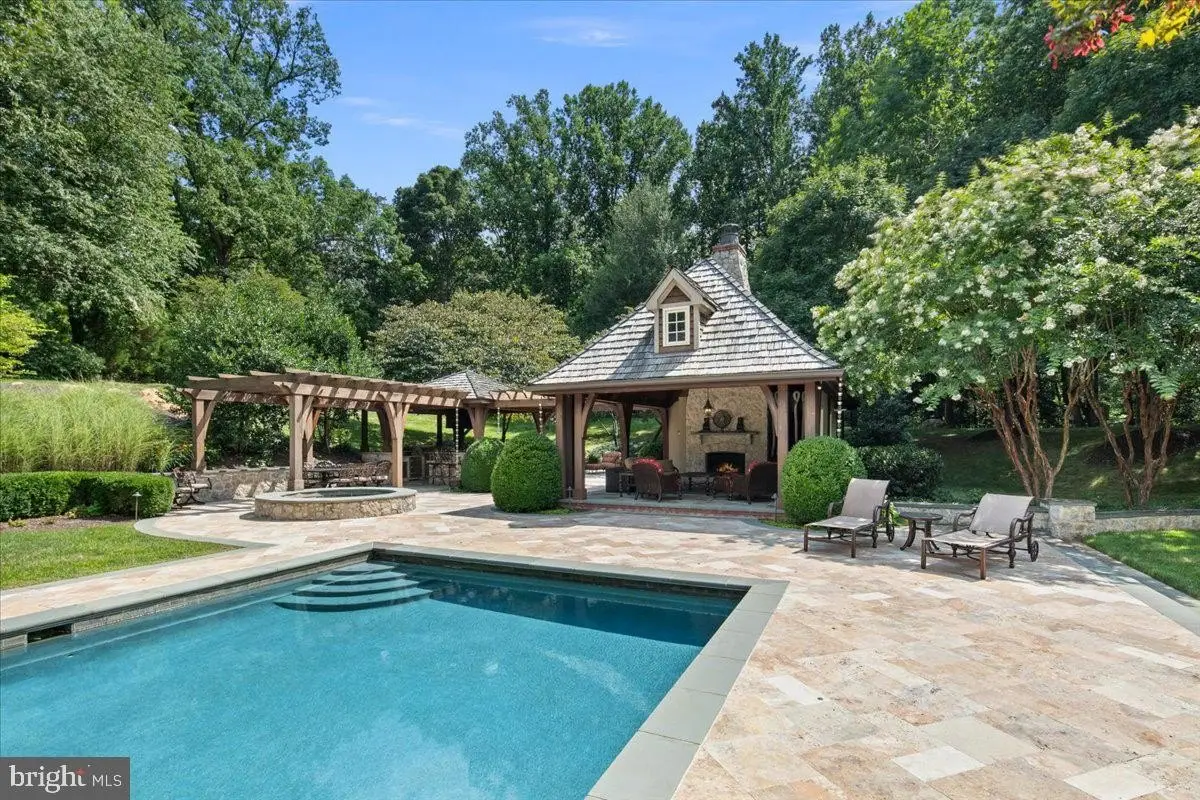 Imagine a sanctuary where meticulous craftsmanship meets resort-inspired living. This isn't just a home; it's a testament to enduring quality, a residence that whispers sophistication at every turn. The kitchen is a symphony of form and function, featuring exquisite Wood-Mode cabinetry, a professional-grade 48 Wolf range with a Wolf copper hood, complemented by a Sub-Zero refrigerator and two dishwashers. Thoughtful additions include a discreet drawer microwave, convenient Sub-Zero refrigerator and freezer drawers at the coffee bar, and a warming drawer. The first-floor primary suite is a haven of tranquility. Expansive double closets and a private fireplace invites cozy evenings. The spa-like primary bathroom is an indulgence for the senses. Privacy is paramount with separate his and hers sides with their own water closets and vanities. Her side features a luxurious all air-jetted tub with mood lighting & fireplace. The oversized shower features dual sets of high-precision Grohe fixtures, including handheld sprays, body sprays, and a rainfall showerhead. The family room offers an inviting retreat, highlighted by a dry bar with a fossilized stone counter. Above, impressive 8x8 Douglas Fir beams add architectural drama, while a stunning fireplace, crafted from marbleized cast stone with a firebox of reconstituted volcanic ash, provides a cozy focal point. The formal dining room is designed for memorable gatherings. Exquisite custom plaster molding, deep crown molding, and shadow boxes add architectural artistry. The magnificent great room is a study in scale and light, with soaring 22 ft ceilings and expansive 17 ft custom windows that frame the outdoors. Striking 10x10 Douglas Fir beams, reclaimed from 50-year-old dead standing trees in the Northwest and featuring hand-made plugs, add a touch of rustic grandeur. A second impressive fireplace, also made of marbleized cast stone and volcanic ash construction, commands attention. Step outside to a world of leisure with a resort-like pool setting that rivals the finest destinations. The exceptional pool house is a haven unto itself, featuring a beautifully appointed bedroom, a full bath, a television that gracefully descends from the ceiling & a cabana with a fireplace & TV. A second cabana connected by a beautiful pergola has an outdoor kitchen with TV. The ambiance is enriched by multiple zones of integrated speakers, and the automatic pool cover provides effortless maintenance. This incredible home also features a climate-controlled wine cellar and tasting room, a home theater, an enormous bonus game room, and a rejuvenating steam shower with a TV, a well-equipped home gym & a studio with a ballet barre. Architectural details such as 11 baseboards and elegant California corners with hand-cut moldings, showcase the meticulous attention to detail. Main & Upper level flooring is wide plank character grade rift & quartered white oak. All interior doors were handmade and all bathrooms are insulated for privacy. A whole-house generator provides peace of mind. The property is further enhanced by a dual-zone Invisible Fence, six fireplaces, three sets of laundry facilities, a basement wet bar with a dishwasher, two automatic ice machines, a whole-house water purification system, 5 Alladin light lifts, custom iron handrails and light switch plates, custom garage storage, and an oversized 3-car garage. The exterior is made of Over 130 tons of hand-quarried Midwestern stone, each piece selected for its subtle shimmer, create a facade of timeless grandeur, painstakingly installed over 3.5 months by 12 artisans employing a century-old slush and brush technique. Above, a hand sawn and cut cedar shingle roof, accented with gleaming copper valleys, roof caps, and striking 4' copper chimney caps, culminates in a distinguished copper cupola. This is more than a residence; it's a legacy, a testament to uncompromising quality and a life lived beautifully.