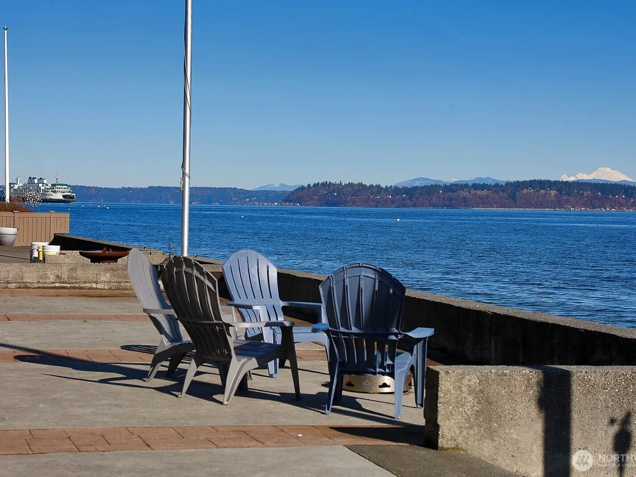 Waterfront views of Cascades & Mt. Baker