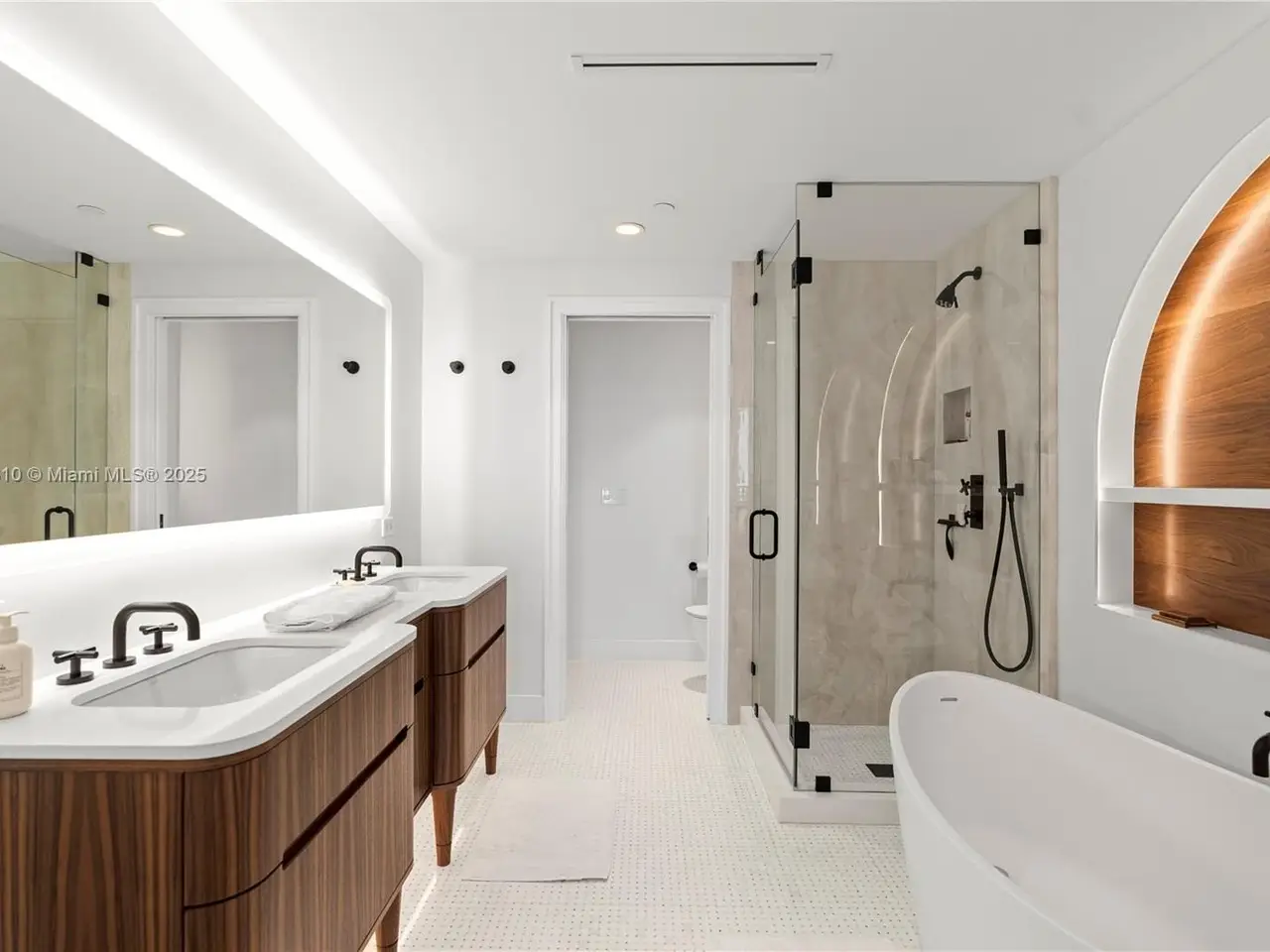One-of-a-kind, stunning, never-lived-in residence at the Ritz-Carlton Executive Residences, Coconut Grove. Fully reimagined in 2024 by Italian design-builder Mauro Burgio, this spectacular home showcases Italian oak herringbone floors, softly curved wall corners, and custom finishes throughout. The gourmet kitchen features Miele appliances, solid wood cabinetry, a custom walnut table, and a handcrafted copper hood. Elegant lighting includes cove, recessed, and under-cabinet illumination. The spa-like primary bath offers a Hastings soaking tub and walnut vanity. Includes Sonos sound, automated window treatments, thermostat, new high-efficiency HVAC, and LG washer/dryer. A truly rare offering there is nothing comparable on the Miami market today.