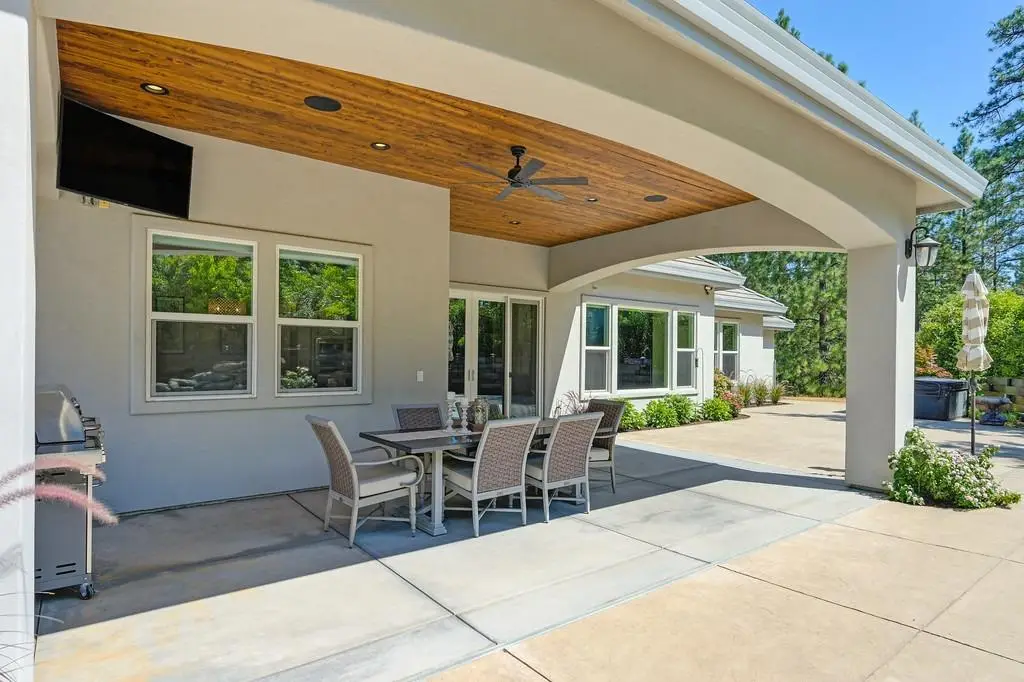 2 Homes with separate driveways! This exceptional property features a custom-built 2016 main home (approx. 2,784 sq. ft.) with 3 bedrooms + den + game room and 2.5 baths. Thoughtfully designed, it lives like a single-level with two bedrooms and a bath upstairs. The attached oversized garage and massive 16'x70' RV garage provides ample storage. Inside, hickory floors, a chef's kitchen with Thermador appliances, granite counters, and custom cabinetry set the stage for elegant living. The primary suite offers outdoor access, a large walk-in closet, dual sinks, and a luxurious shower. Outdoor amenities include a sparkling pool with a waterfall, a spa, a covered patio plumbed for an outdoor kitchen, and a gas fire pit. A whole-house generator ensures peace of mind. The second home (approx. 1,000 sq. ft., built in 2004) offers 2 beds, 2 baths, a 1,000 sq. ft. garage, and a separate driveway, PG&E meter, and septic-ideal for multi-generational living or rental income. Conveniently located 5 minutes from I-80, this private foothill retreat is a must-see! Schedule your private tour today!