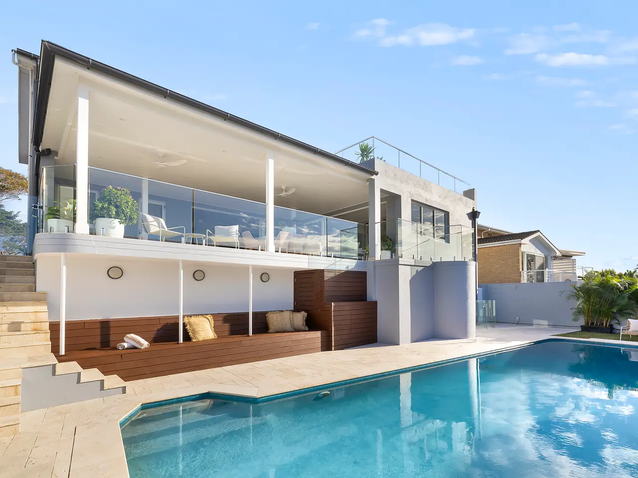 Expertly designed by Studio Haptic and meticulously reimagined for contemporary coastal living, this striking residence has a prized north-east aspect and uninterrupted panoramic ocean views. Set across an expansive 695sqm block, the home delivers three luxurious levels of living, blending architectural sophistication with effortless functionality. From sun-drenched interiors to refreshing sea breezes and premium finishes, every element has been thoughtfully curated to create a sanctuary of light, space and style. Perfectly positioned in a peaceful, elevated location close to Collaroy Plateau's vibrant village hub, sought-after schools and iconic beaches, this is executive family living at its finest. - Three levels of outdoor entertaining and sparkling in-ground pool - Home office, formal lounge and open plan living/dining flowing to terrace - Sleek gas kitchen with large walk-in pantry and quality appliances - Ground floor guest suite with ensuite, powder room and built-in robes - Master suite with terrace, his and her ensuite and walk-through robe - Manicured, private, secure front garden and double lockup garage - American oak floors, stone benches, marble tiles and Travertine terraces