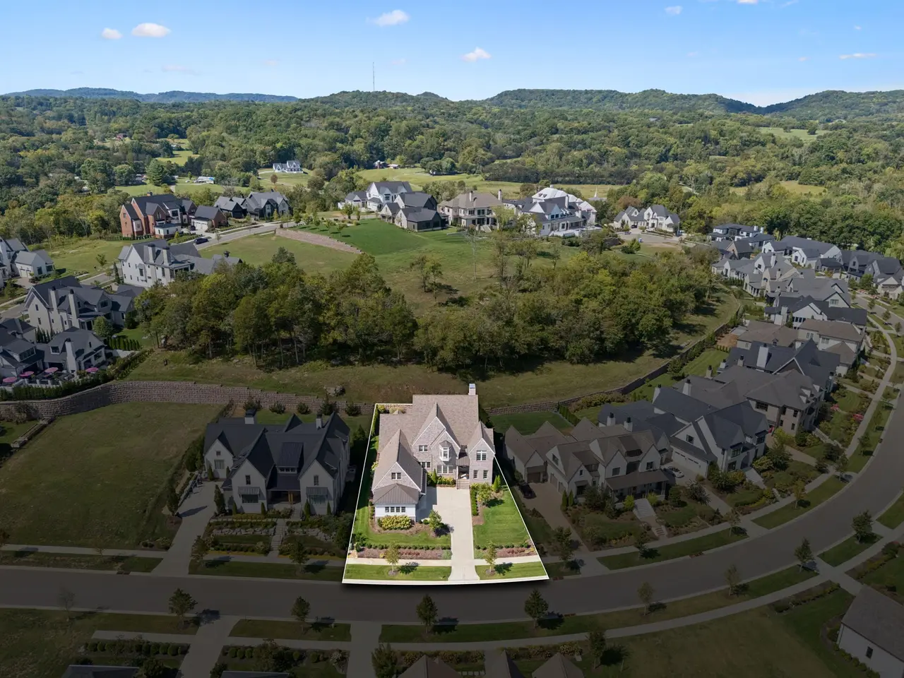 Gorgeous modern Tudor-style brick home in The Grove, one of Middle Tennessee's most sought-after gated communities. Offering resort-style living, residents enjoy a world-class spa, clubhouse, Greg Norman Signature golf course, fishing lakes, fine and casual dining, racquet courts, equestrian facilities, sports fields, walking trails, and multiple pools. Step inside to a welcoming foyer that leads to a private office with custom built-ins and wainscoting, accented by designer lighting. A stylish wet bar with paneled Thermador wine fridges and an ice maker sets the stage for effortless entertaining. The open-concept living room is anchored by a brick fireplace with custom cabinetry, flowing seamlessly into a chef's kitchen with custom-panel appliances, pull-out cabinet drawers, and a sink equipped with filtered water and instant hot water. A generous pantry with open shelving and cabinetry provides both storage and prep space. The vaulted primary suite is a retreat with shiplap accents, a spa-like bath featuring a soaking tub, a floor-to-ceiling tile shower, checkered tile flooring, and a walk-in closet with center vanity. A guest suite with private bath and powder room complete the main level. Upstairs, a vaulted rec room with surround sound and fireplace opens to a screened porch--perfect for game nights or relaxed evenings. Enjoy Tennessee living year-round with a peaceful backyard featuring a screened porch with wood-burning fireplace, built-in gas grill, and patio with room for a future pool. Additional highlights include custom draperies, a sealed crawl space, and convenient access just two minutes from the back gate. Blending timeless design with modern luxury, this home offers both elegance and comfort in a community where every day feels like a getaway.