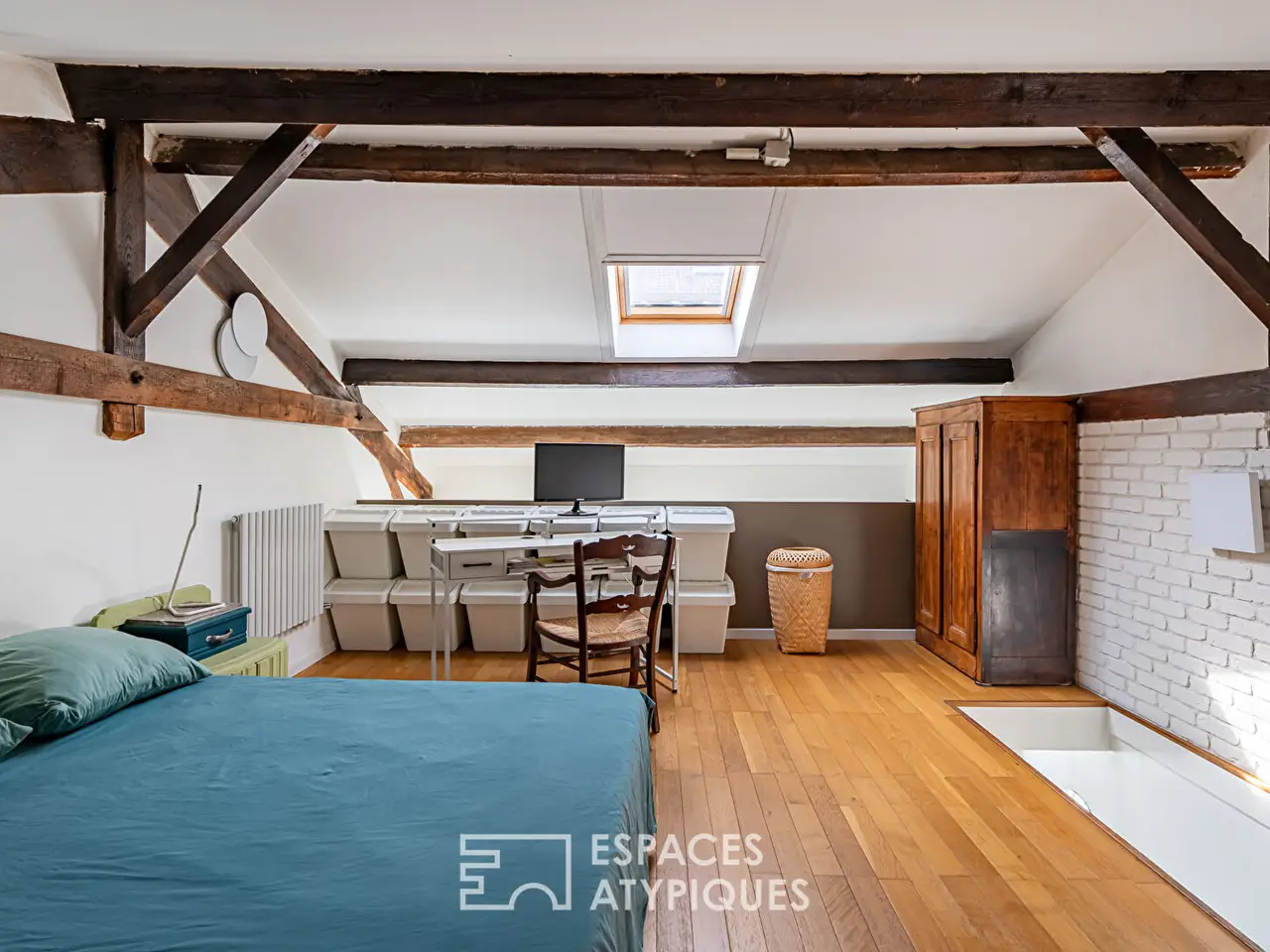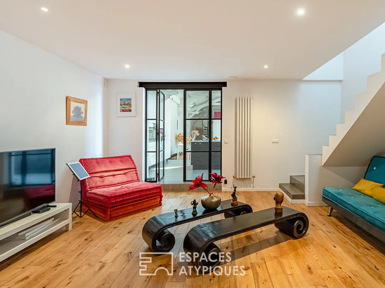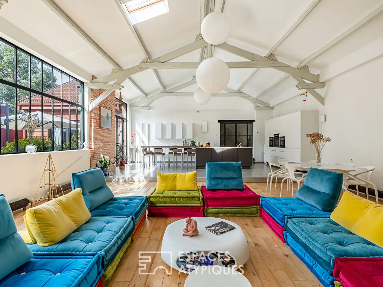 In the heart of a sought-after residential area, nestled at the end of a private driveway, this former mechanic's workshop converted into a 272m2 loft with its 100m2 garden terrace offers a unique living environment where spaces of tranquility, well-being, and relaxation enhance everyday life.From the entrance, equipped with ample storage, a 114m2 reception room captivates with its majestic volumes. A large glass roof provides exceptional light and offers breathtaking views of the garden and its Mediterranean-style terrace. An exposed wooden frame, high ceilings, and a brick wall preserve the industrial feel of the space. A living room with its contemporary fireplace creates a warm atmosphere, perfect for long winter evenings. A high-end open kitchen extends this living space and provides access to a garden and its 100m2 southwest-facing terrace. A truly inviting outdoor space, sheltered from view, offers a truly inviting setting for relaxation and outdoor entertaining.The property's intelligent layout clearly separates its uses. The family wing consists of a cozy living room and a complete master suite (dressing room, shower room, WC) with direct access to the terrace. Upstairs, two attic bedrooms complete the sleeping area with a bathroom and a separate WC.The second wing, accessible from the back of the entrance, is dedicated to well-being and functionality: it houses a mezzanine office overlooking the reception room. A separate space opens onto a laundry room and a sauna, complemented by a bathroom (bathtub and walk-in shower), providing a spacious relaxation area. Upstairs, a large attic bedroom offers additional privacy.A detached 15m2 garage completes this property, located in a small condominium with a village atmosphere and no operating costs.Located in the Victor Basch-Chatou district, close to amenities, this loft combines modernity, character, space, and serenity. Don't miss out!T2 Jacqueline Auriol tram line is 6 minutes away and La Garenne-Colombes train station is an 11-minute walk away.REF. 12984Additional information* 5 rooms* 4 bedrooms* 1 bathroom* 2 shower rooms* Floor : 1* 1 floor in the building* Outdoor spaces : 100 SQM* 4 co-ownership lots* Property tax : 3 652 €* Proceeding : NonEnergy Performance CertificatePrimary energy consumptionc : 163 kWh/m2.yearHigh performance housing*A*B*163kWh/m2.year21*kg CO2/m2.yearC*D*E*F*GExtremely poor housing performance* Of which greenhouse gas emissionsc : 21 kg CO2/m2.yearLow CO2 emissions*A*B*21kg CO2/m2.yearC*D*E*F*GVery high CO2 emissionsEstimated average annual energy costs for standard use, indexed to specific years 2021, 2022, 2023 : between 2840 € and 3900 € Subscription IncludedAgency feesThe fees include VAT and are payable by the vendorMediatorMediation Franchise-Consommateurswww.mediation-franchise.com29 Boulevard de Courcelles 75008 ParisInformation on the risks to which this property is exposed is available on the Geohazards website : www.georisques.gouv.fr