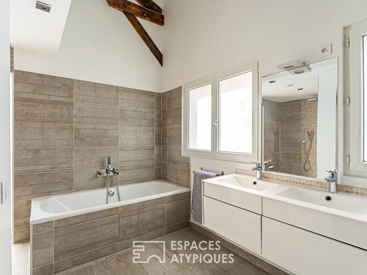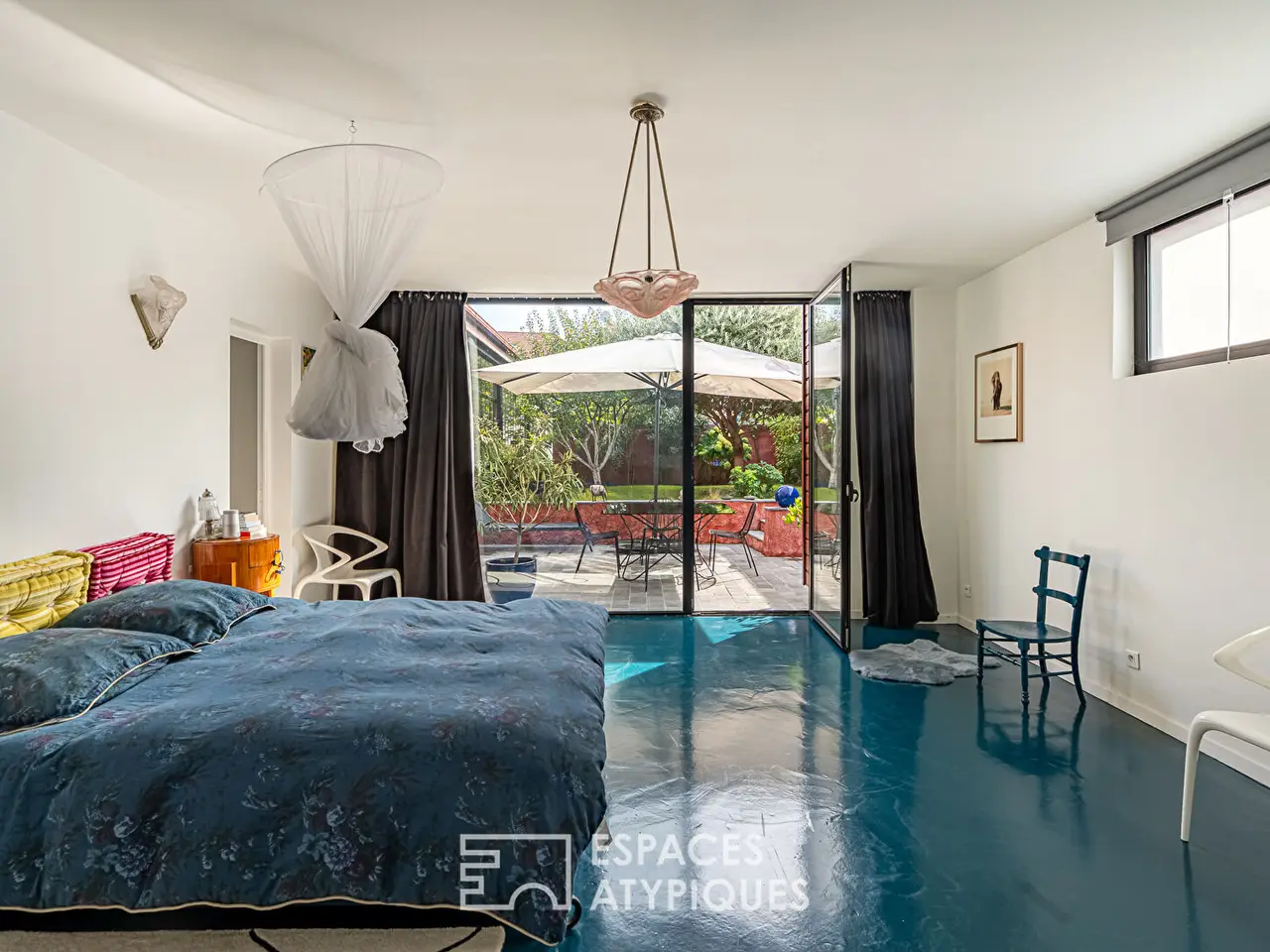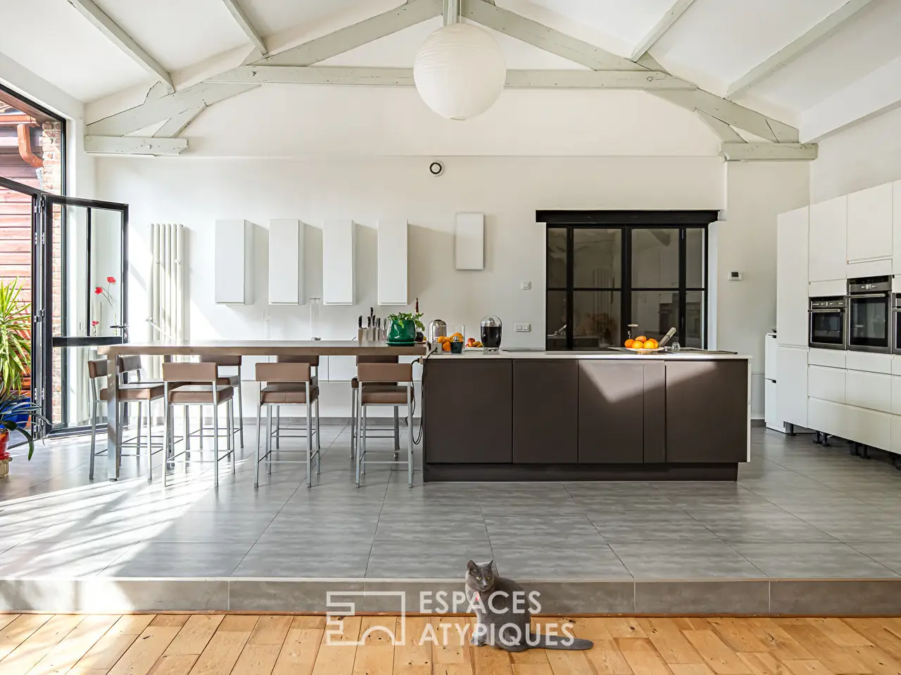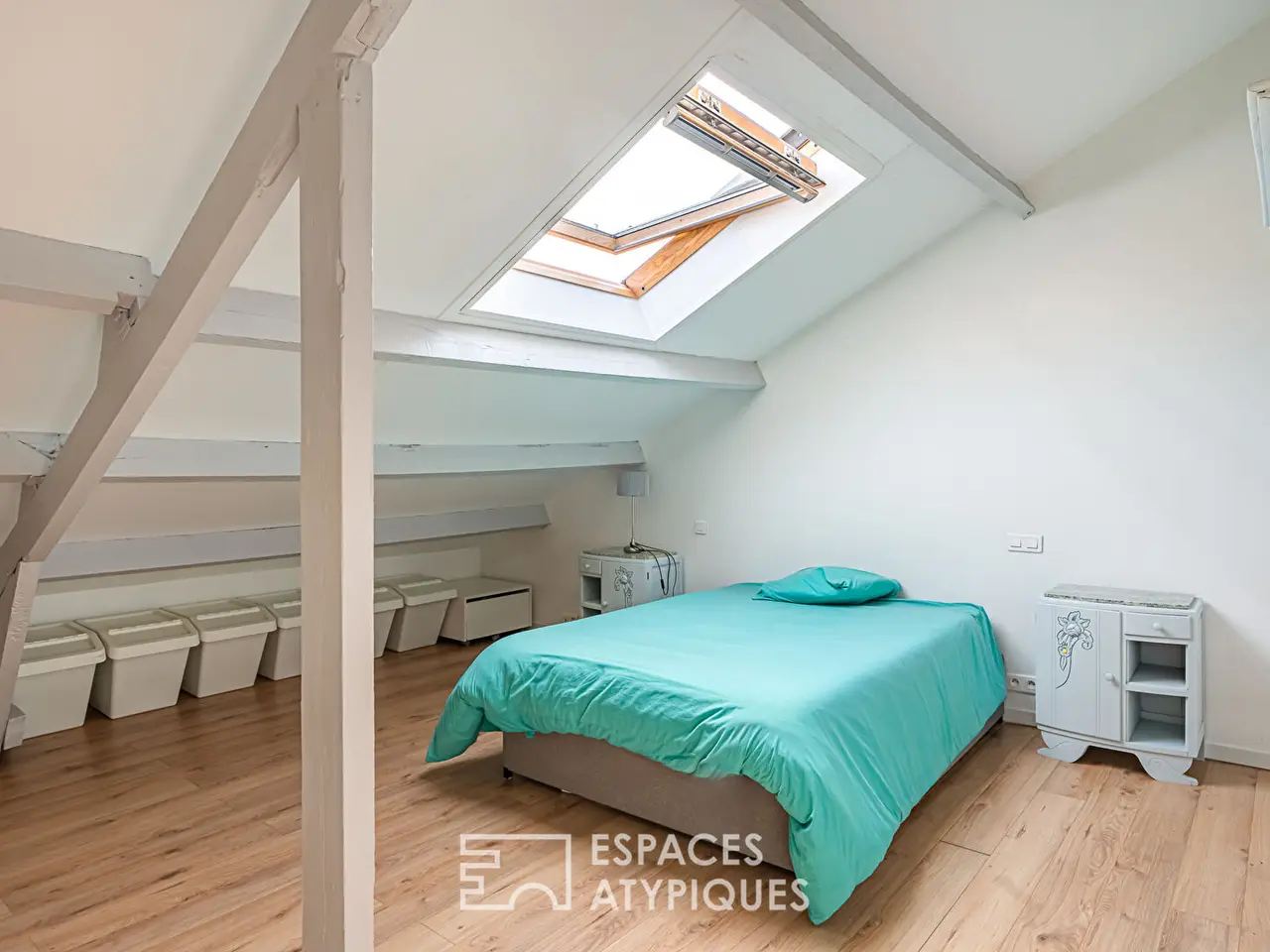 In the heart of a sought-after residential area, nestled at the end of a private driveway, this former mechanic's workshop converted into a 272m2 loft with its 100m2 garden terrace offers a unique living environment where spaces of tranquility, well-being, and relaxation enhance everyday life.From the entrance, equipped with ample storage, a 114m2 reception room captivates with its majestic volumes. A large glass roof provides exceptional light and offers breathtaking views of the garden and its Mediterranean-style terrace. An exposed wooden frame, high ceilings, and a brick wall preserve the industrial feel of the space. A living room with its contemporary fireplace creates a warm atmosphere, perfect for long winter evenings. A high-end open kitchen extends this living space and provides access to a garden and its 100m2 southwest-facing terrace. A truly inviting outdoor space, sheltered from view, offers a truly inviting setting for relaxation and outdoor entertaining.The property's intelligent layout clearly separates its uses. The family wing consists of a cozy living room and a complete master suite (dressing room, shower room, WC) with direct access to the terrace. Upstairs, two attic bedrooms complete the sleeping area with a bathroom and a separate WC.The second wing, accessible from the back of the entrance, is dedicated to well-being and functionality: it houses a mezzanine office overlooking the reception room. A separate space opens onto a laundry room and a sauna, complemented by a bathroom (bathtub and walk-in shower), providing a spacious relaxation area. Upstairs, a large attic bedroom offers additional privacy.A detached 15m2 garage completes this property, located in a small condominium with a village atmosphere and no operating costs.Located in the Victor Basch-Chatou district, close to amenities, this loft combines modernity, character, space, and serenity. Don't miss out!T2 Jacqueline Auriol tram line is 6 minutes away and La Garenne-Colombes train station is an 11-minute walk away.REF. 12984Additional information* 5 rooms* 4 bedrooms* 1 bathroom* 2 shower rooms* Floor : 1* 1 floor in the building* Outdoor spaces : 100 SQM* 4 co-ownership lots* Property tax : 3 652 €* Proceeding : NonEnergy Performance CertificatePrimary energy consumptionc : 163 kWh/m2.yearHigh performance housing*A*B*163kWh/m2.year21*kg CO2/m2.yearC*D*E*F*GExtremely poor housing performance* Of which greenhouse gas emissionsc : 21 kg CO2/m2.yearLow CO2 emissions*A*B*21kg CO2/m2.yearC*D*E*F*GVery high CO2 emissionsEstimated average annual energy costs for standard use, indexed to specific years 2021, 2022, 2023 : between 2840 € and 3900 € Subscription IncludedAgency feesThe fees include VAT and are payable by the vendorMediatorMediation Franchise-Consommateurswww.mediation-franchise.com29 Boulevard de Courcelles 75008 ParisInformation on the risks to which this property is exposed is available on the Geohazards website : www.georisques.gouv.fr