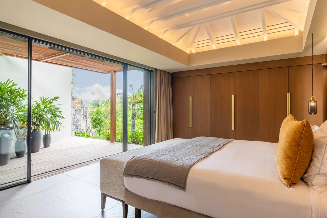 Located in the heart of Colombier, this luxurious, new construction, imagined by the Bruneau Ghezzi architectural firm, envelops you in a peaceful living environment, revealing a majestic view of the sea and the Islet Bonhomme at all times. Villa EVA is laid out on two levels. The main living area opens grandly onto the terrace, revealing a magnificent view. The elegant room features a high-end kitchen/living room, where cream and wood tones blend harmoniously to create a warm, welcoming atmosphere. The kitchen, both modern and fully equipped, is complemented by a central island and a pantry, meeting the needs of the most demanding chefs. Outside, part of the terrace is covered, creating an ideal space for savoring delicious meals and enjoying moments of relaxation. Sun loungers face the heated infinity pool, inviting you to soak up the sun, while a meticulously landscaped garden offers a serene, verdant environment. The villa houses five sumptuous bedrooms on two levels, each elegantly decorated in the same refined spirit. Three of them are on the main level, offering direct access to the terrace, while two others are on the upper floor and share a terrace offering breathtaking views of the surrounding landscape and the sea. The property also includes four parking spaces, two of which are covered.
