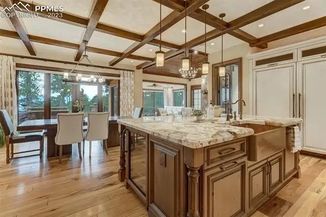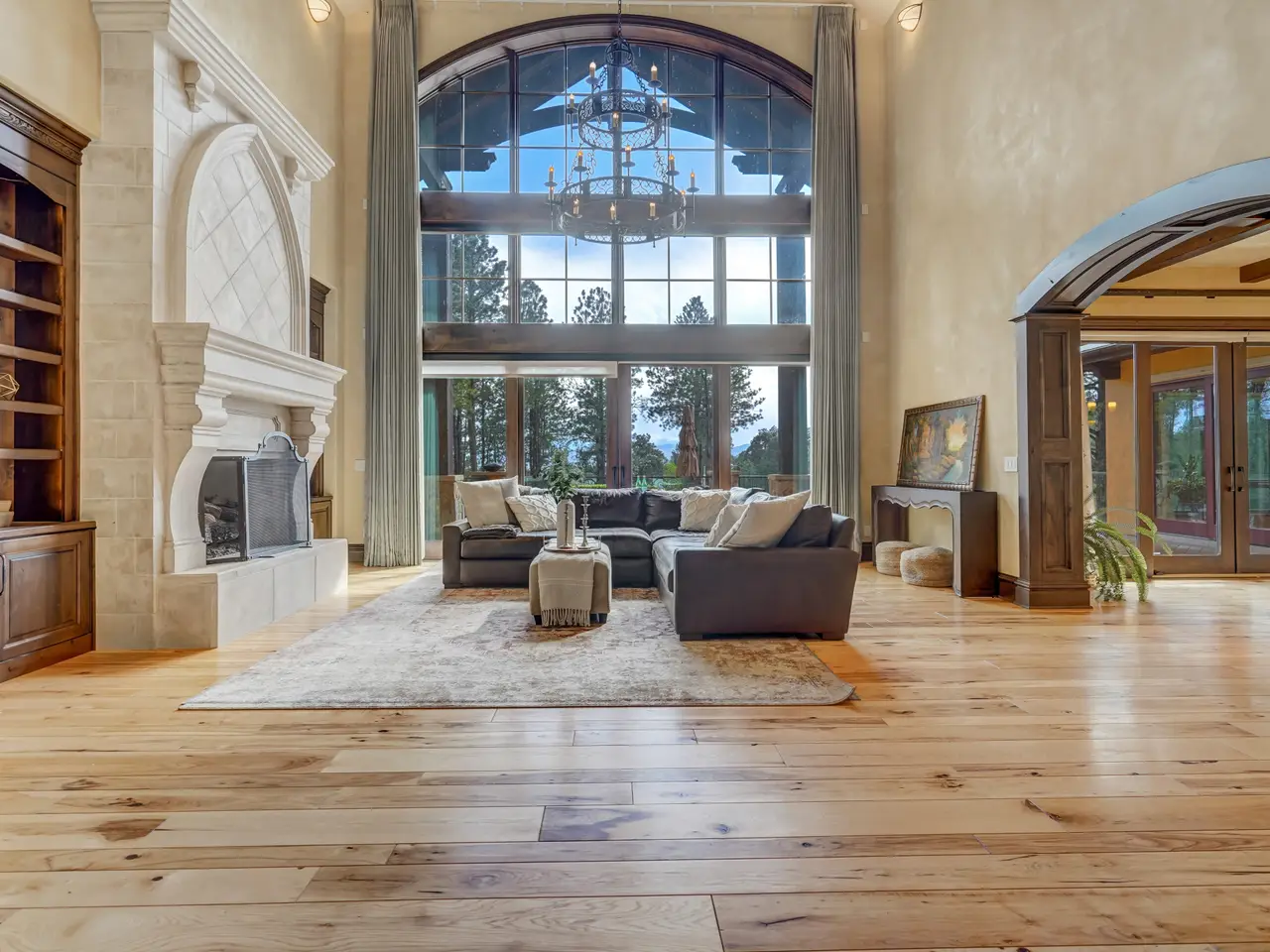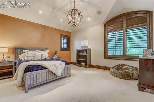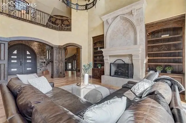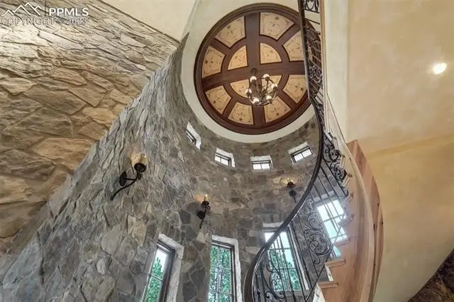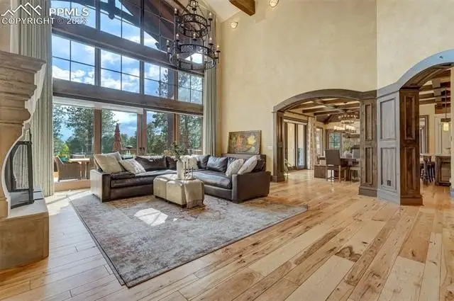 Nestled in the trees overlooking a pond in the exclusive gated community of High Forest Ranch, this luxury retreat offers a seamless integration of luxury, technology, and craftsmanship. The grand entrance opens to a custom wood mosaic floor and water feature. Look thru to the great room as the soaring vaulted ceilings with wood trusses, chandelier, and a wall of windows showcase mountain views. The gourmet kitchen is a chef's dream, featuring top-of the line appliances: 2 Bosch dishwashers, beverage fridge, Capital commercial range, pot filler, Miele speed oven and fridge/freezer. Generous center island with counter seating and dining room complete the area. A cozy Hearthroom with tongue/grove ceiling leads to a beautiful light/bright sunroom! Luxurious primary suite is a tranquil oasis with a fireplace, deck access, 2 closets with built in organizers, washer/dryer and a safe. Spa-like bath features a soaking tub with jets, and a fully enclosed steam shower with a 4 shower heads, jets, and Moen controls. Spiral staircase leads to a loft with a water feature and wet bar. The expansive deck is perfect for Colorado year round with a built in grill, fire pit, and plenty of space to enjoy sunsets and views. Upstairs find 3 spacious bedrooms all with private bath and walk-in closets, and 1 of the 3 offices. Basement with a large rec room and amenities provide plentiful opportunity to entertain. Gorgeous hand crafted bar has a Safe room with Fort Knox vault door hidden behind shelving, and a wine room is next to it! Incredible home theater, Poker/game room, exercise room complete the area. Executive style office provides a private entrance and is ideal for client meetings. Indoor pool and spa to enjoy year round, along with a wet bar, and a laundry room/bathroom for convenience. Electric and solar thermal panels are ownedHigh Forest Ranch offers 33 acres of green space, 8 miles of hiking trails, community clubhouse, 2 fishing ponds! *Comprehensive list of technology