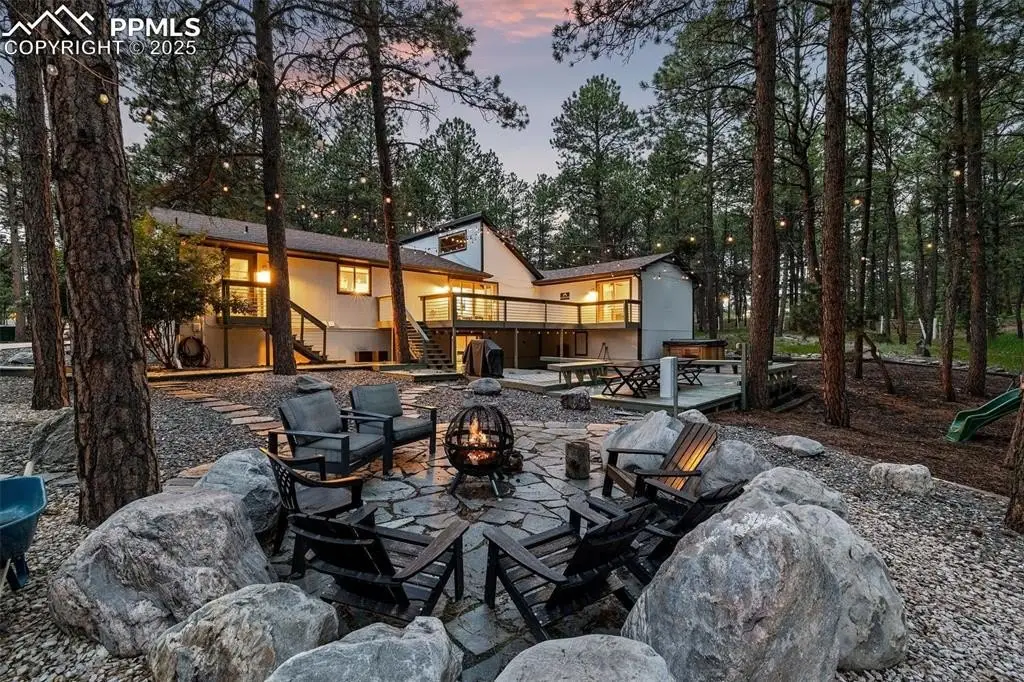 Stunning Updated Home on Expansive Corner Lot in Black Forest! Set on a beautifully landscaped corner lot in the heart of the Black Forest, this fully updated home is a true retreat. Featuring designer finishes throughout, the modern open-concept floor plan is perfect for both everyday living and entertaining. The gourmet kitchen is a chef’s dream with high-end appliances, custom cabinetry, and seamless access to a large deck—ideal for indoor/outdoor living. The oversized bedrooms offer comfort and space, while the luxurious primary suite boasts a spa-like five-piece bath with a rainfall shower and soaking tub. Step outside to your private oasis, complete with multiple decks, stamped concrete patios, custom lighting, a fire pit, jungle gym, and a hot tub. Professionally designed landscaping brings the mountains to your doorstep, with truckloads of large boulders and rocks creating a natural, custom feel. Enjoy peaceful walking trails throughout the property, along with a horse barn and fencing—perfect for equestrian enthusiasts or those seeking wide-open space. This is Colorado living at its finest—don’t miss your chance to own this exceptional property!