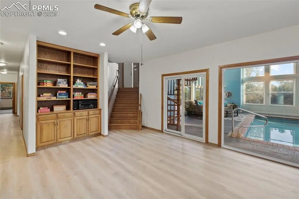 Discover the perfect blend of luxury, comfort, and location in this extraordinary Colorado home, ideally situated on a private cul-de-sac in the highly desirable neighborhood. From the moment you arrive, you’ll be enchanted by the panoramic Mountain Views, frequent visits from wildlife, & the serenity of a 3/4-acre lot backing to protected open space. With top-rated schools, shopping centers, & endless hiking trails at Ute Valley Park nearby, this property offers both convenience & a true connection to nature. Step inside to soaring ceilings, sun-drenched floor-to-ceiling windows, & gleaming hardwood floors that flow seamlessly through the main living areas. The expansive, open design is tailor-made for entertaining, featuring a grand formal dining room & a chef-inspired kitchen where a gas cooktop set in the center island becomes the centerpiece for gatherings & serve-yourself-style parties. The primary suite is a light-filled sanctuary, boasting several oversized windows, two walk-in closets, & a spa-like five-piece ensuite. Upstairs, a second oversized bedroom with its own ensuite bath & private sitting room provides flexibility for a guest suite, in-law quarters, or office retreat. A true showpiece of this home is the indoor swimming pool, complete with a UV light cleaning system, heating capability, & floor-to-ceiling windows that frame breathtaking Mountain Views. With its own attached bathroom & changing room, the pool space feels like a private year-round resort. Outdoor living is equally captivating, with a wraparound porch & a remote-controlled awning that create the perfect setting for morning coffee, shaded afternoons, & sunset evenings. The backyard is designed for fun & relaxation, featuring a children’s play structure, a basketball hoop with a paved court, & endless space to explore. Additional features include an automatic sprinkler system, central air conditioning, & a whole-house fan. The community itself offers tennis courts & friendly neighbors.