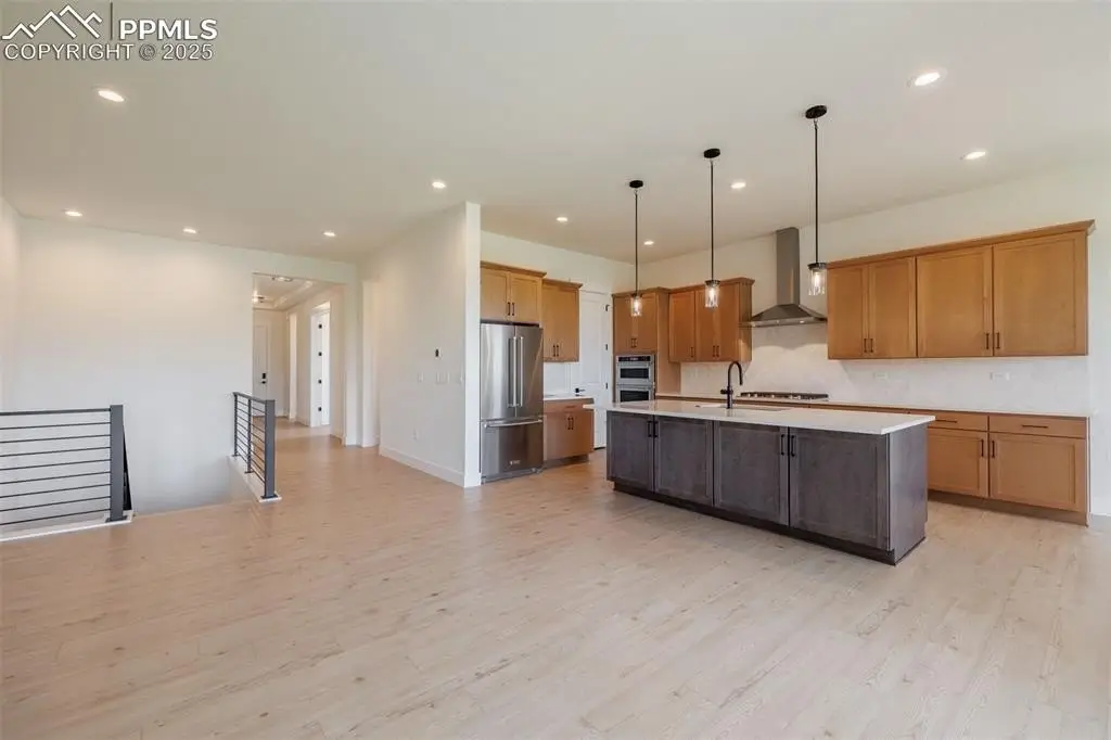 Welcome to single-level living at its finest in the gated community of Kissing Camels! This brand-new home features modern touches combined with high-end finishes. The gourmet kitchen makes a statement with premium upgrades, two-tone MasterCraft cabinetry, custom backsplash, and Kitchen Aid stainless steel appliances. Beautiful stacking slider makes the great room feel even bigger and more grand! The spacious primary bedroom suite offers beamed ceilings, a luxurious bath with spacious shower & freestanding tub, and double walk-in closet space. A finished lower level provides additional living space with an expansive second living area and fireplace as well as two additional massive bedrooms. This home is complete with designer-curated finishes. Full landscaping included. Other home amenities include, central air, Eldora white stone fireplace surrounds, and 3-car tandem garage. Come experience your dream home by scheduling a showing today. HOA dues include manned security, snow removal on private streets & trash removal. Walking distance to the Garden of the Gods Resort and Kissing Camels Golf Club, which offers numerous amenities including spa, gym, swimming pools, hot tubs, pickleball & tennis courts, and fine dining, with club membership. Plentiful hiking & biking trails close by. Excellent location only minutes from downtown, Manitou Springs, & Kissing Camels Golf Club. Rare opportunity to acquire one of the last remaining new homes in The Preserve at Kissing Camels. Don't let this beautiful home on a corner lot get away!