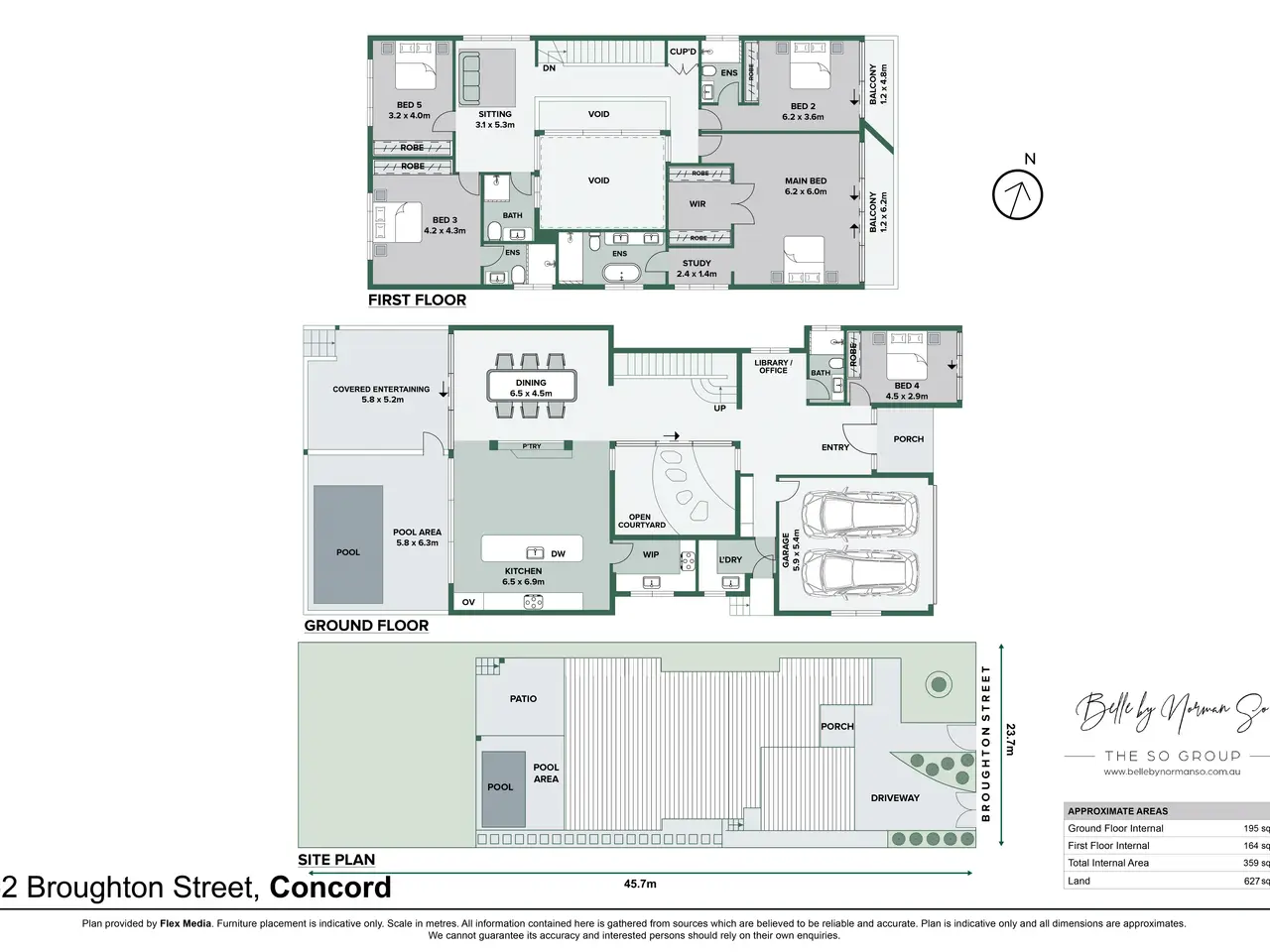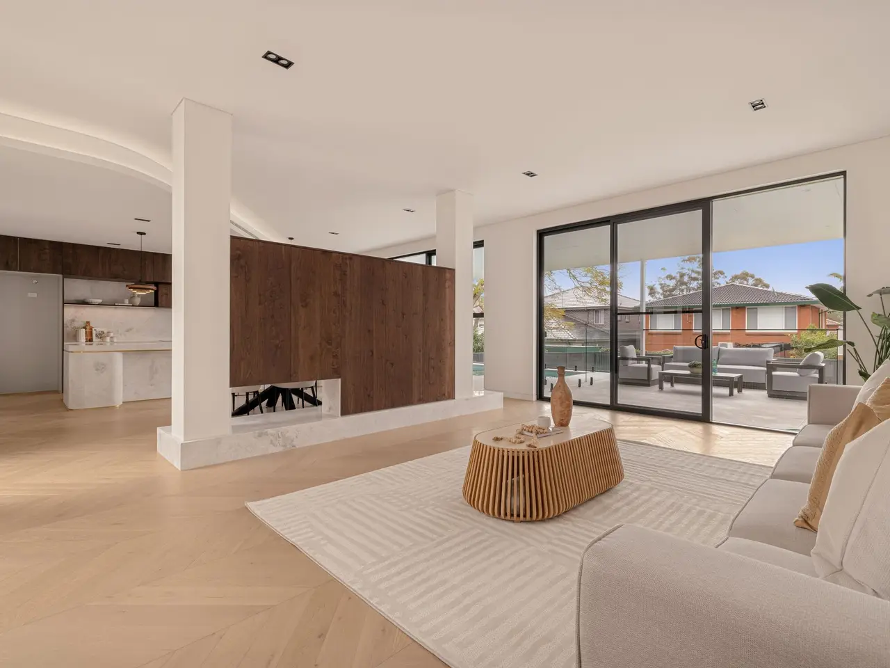 A statement of undeniable luxury, this remarkable home sets a new standard of sophistication and functionality. Meticulously crafted with top-tier finishes, it offers an impressive fusion of elegance and practicality that surpasses all expectations of family living. Its sleek interiors are awash with natural light and promote boundless space for entertaining, living and socializing on a grand or intimate scale. Set within 750 meters of Majors Bay dining and boutiques, the property is also mere footsteps from Concord Park. - Brand new luxury residence on a large 627square meters land parcel in convenient locale - Free-flowing design unveils a bright lounge/dining area with in-built cabinetry - Seamless indoor/outdoor flow to a covered alfresco terrace with a built-in barbecue - Elevated entertainer's deck includes a sparkling in-ground concrete pool - Unique secluded and private landscaped central garden/open atrium - Stone kitchen features stainless steel Miele gas appliances and walk-in pantry - Five generous bedrooms each with built-ins, two of the bedrooms are masters - Three bedrooms include ensuite bathrooms, bed one enjoys a private balcony - Custom-appointed main bathroom with floor-to-ceiling tiles and a rain shower - Upstairs study, bar area, ducted air-conditioning, down/sky lighting throughout - Double automatic garage with internal access, linen and under-stairs storage - Short walk to public transport, set within 1.6km from schools and Bayview Park