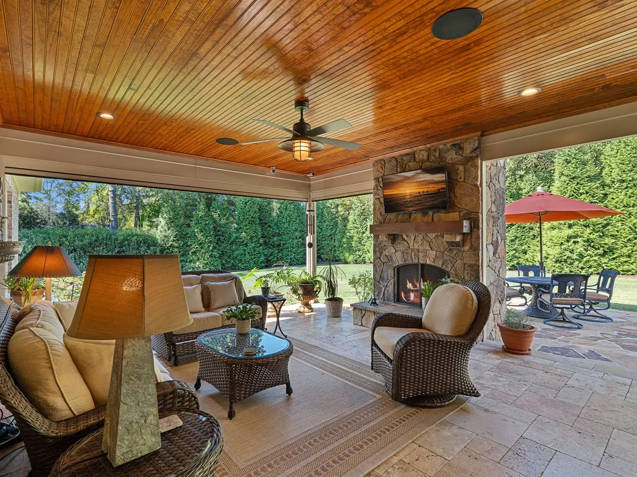 Stone Manor, a custom masterpiece by Mitchell Hartsell. This is the executive home in Concord, NC, you've been waiting to hit the market: a garage-loving, outdoor living, fully appointed home. A dream chef's kitchen featuring a large granite island and countertops designed for entertaining, complemented by custom cabinetry, stainless steel appliances, and an induction electric cooktop. Features include coffered and tray ceilings, as well as plantation shutters throughout the home. This property features five bedrooms, an office space, an open living area, a formal dining room, and a large flex room with a bedroom and a full bathroom upstairs. It boasts five bays for all your cars, trucks & trailers, along with trailer parking and plenty of driveway space. Three-car garage with epoxy floor & insulated garage doors, detached two-car garage featuring 896 sq. ft. on the 1st floor with a ? bath, and workbench. The storage throughout the home will impress you; it is both efficient (with a walk-in closet) and abundant. Stone Manor: brick & stone with vinyl boxing, featuring a front porch with stone walls/floor and columns, complemented by a barrel-vaulted beaded ceiling. The property also boasts stone sidewalks at the front and rear, a stone patio in the rear with a stone wood-burning fireplace & travertine floor, a back porch, and an outdoor kitchen. Whole house Control 4 audio/video/security.