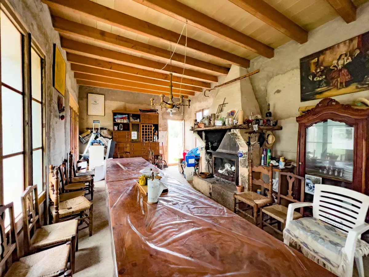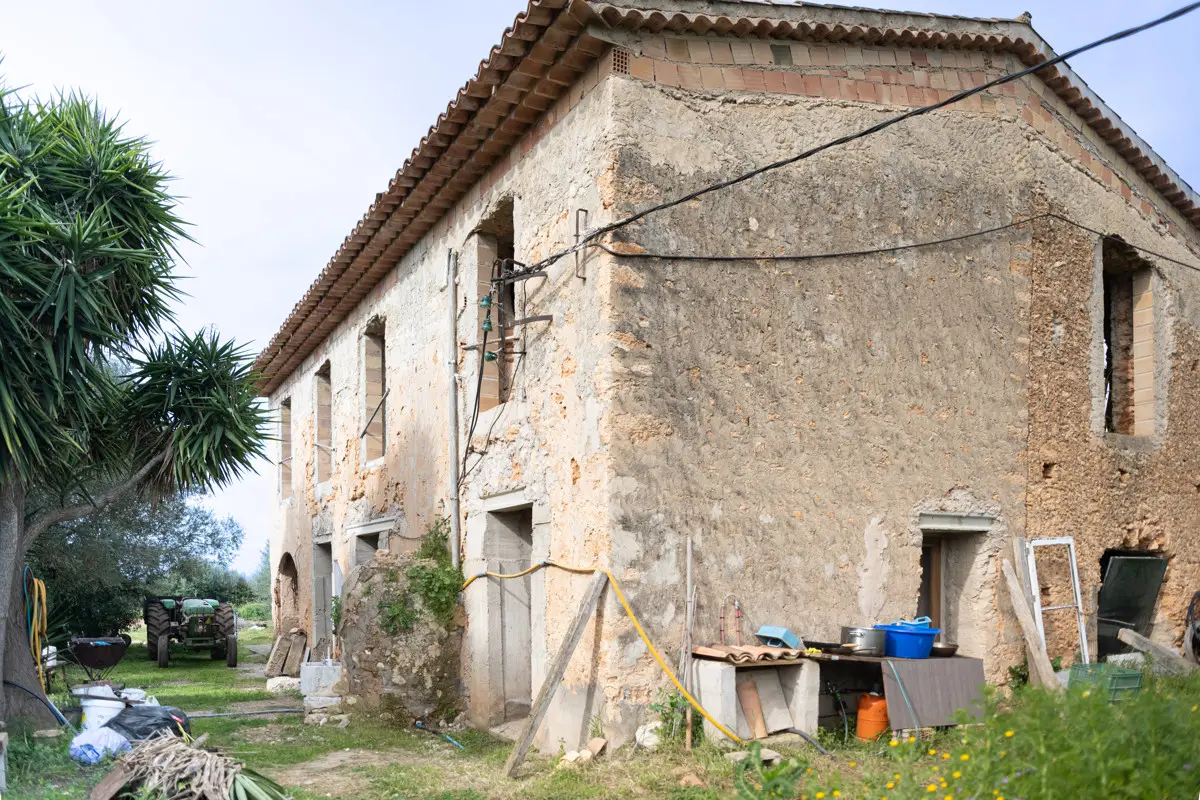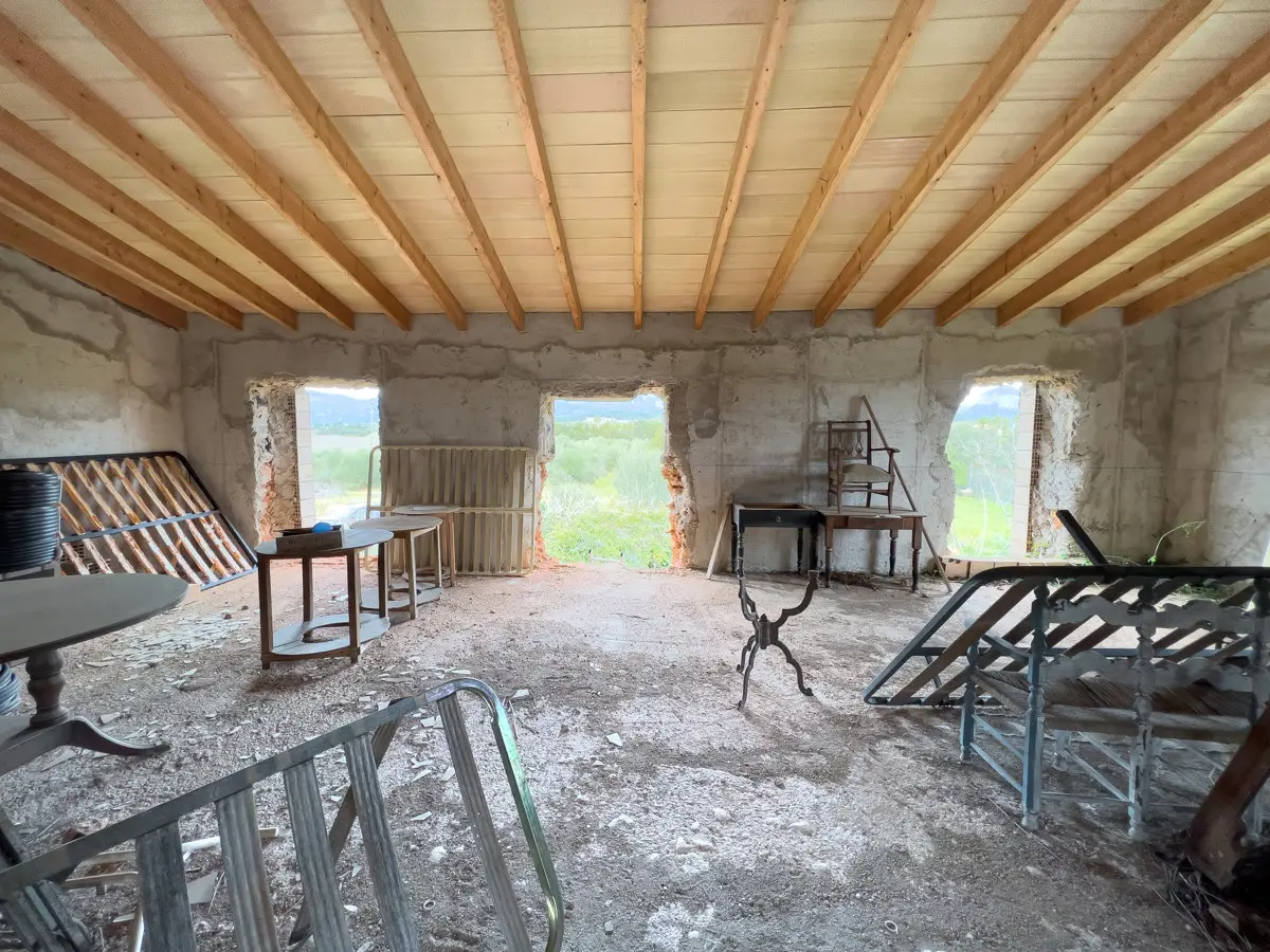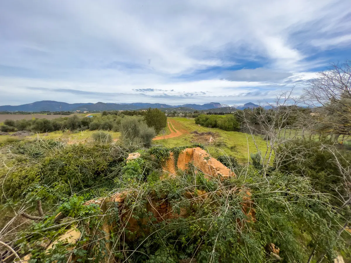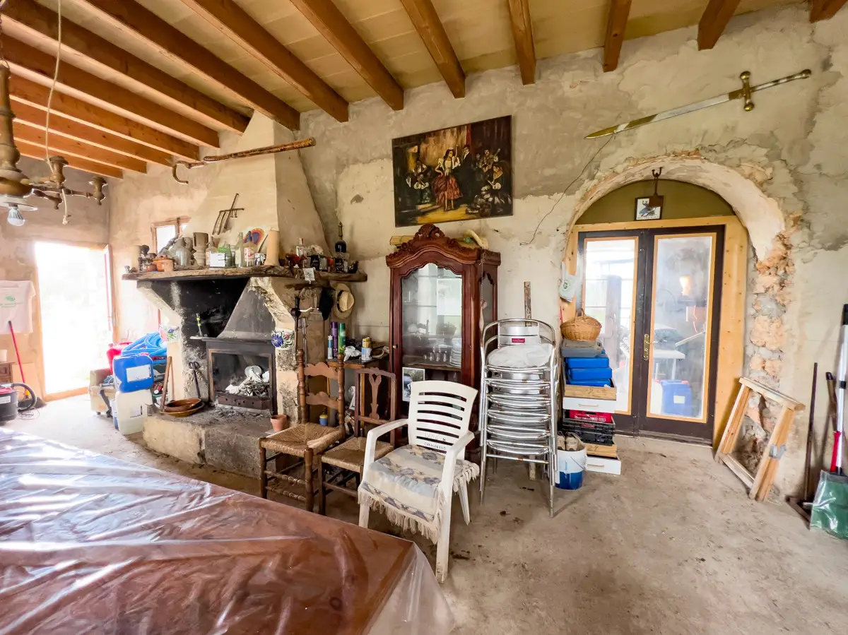 Beautiful, original finca with a large plot of land and panoramic views of the Tramuntana in Consell, just a few minutes from Santa Maria and not far from Palma. The house has been partially renovated and has a new roof. The upper part of the house is still under construction, so that the future owner has the opportunity to design the house according to his own wishes. On the ground floor there is a large living room with a fireplace and another room that could easily be converted into a spacious kitchen. The house is surrounded by a garden with fruit trees, a small paddock and plenty of space for a pool. There is a well on the property.