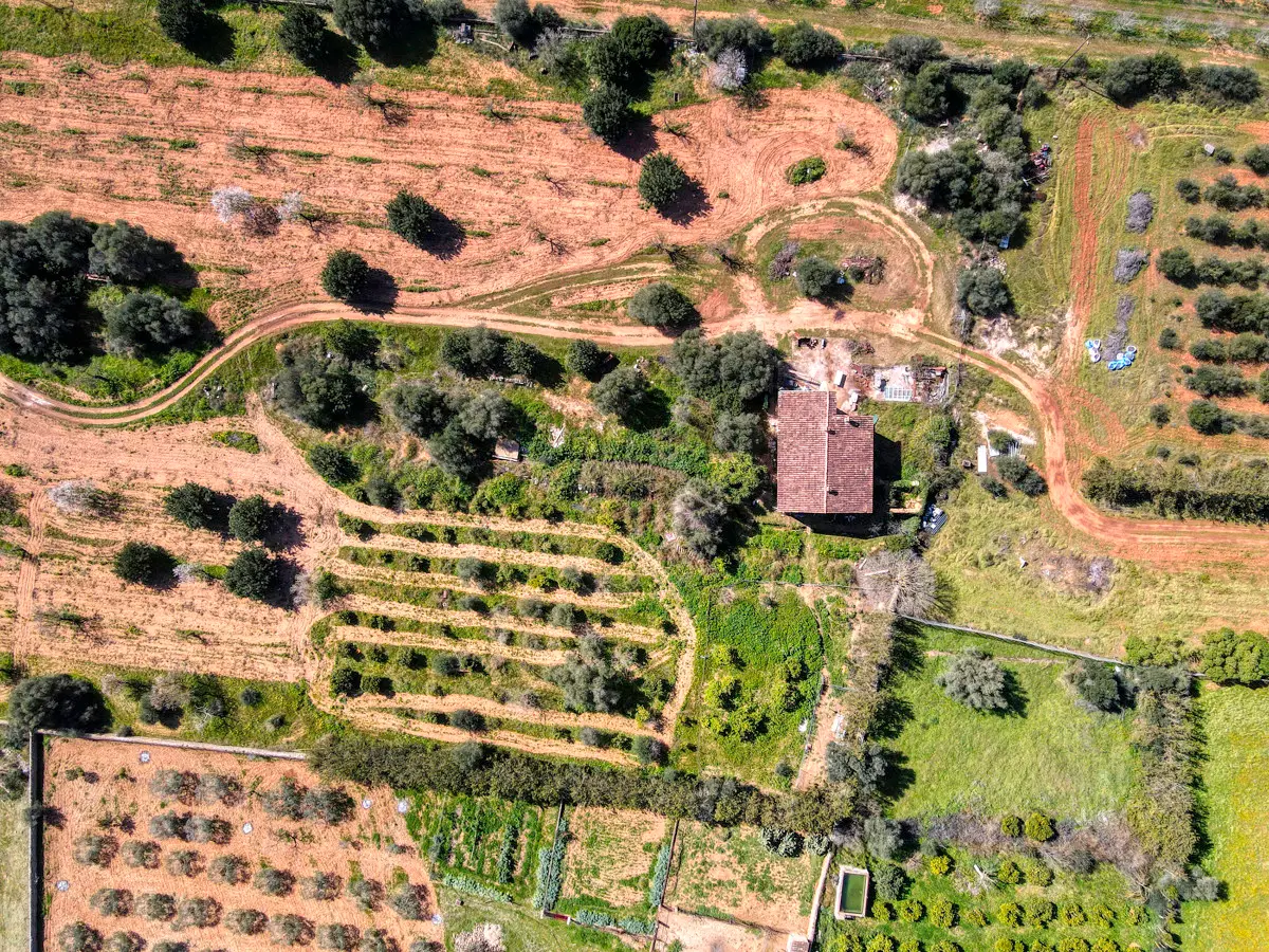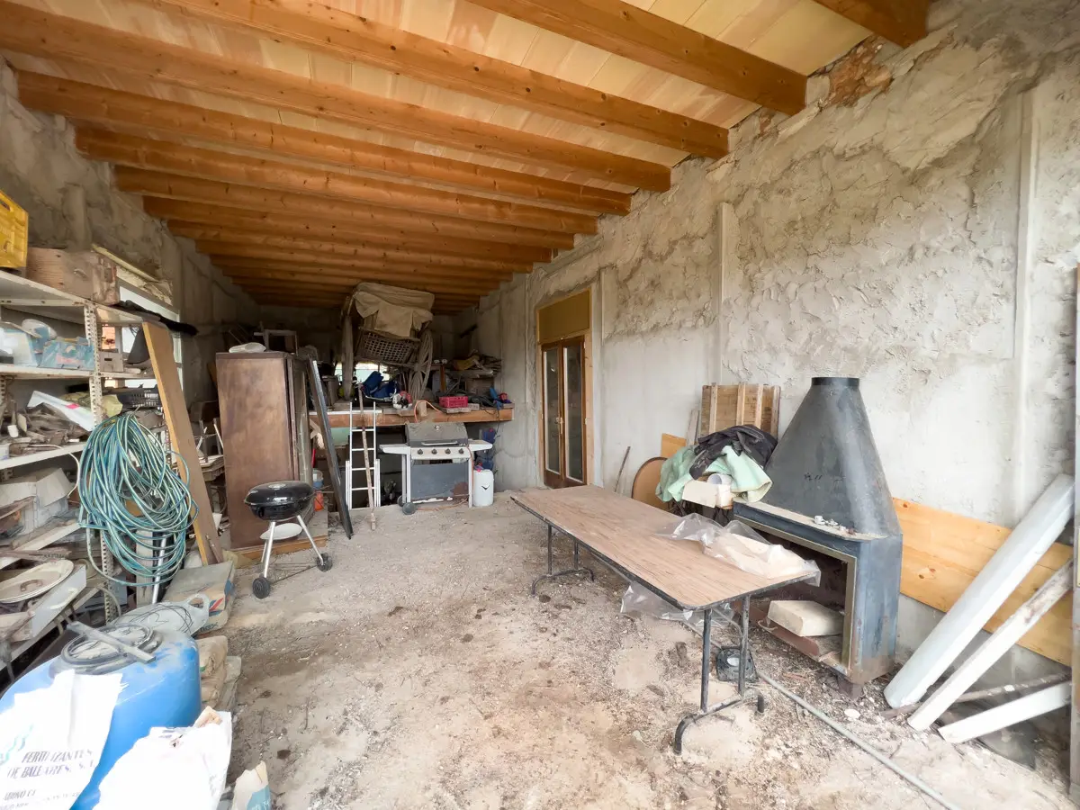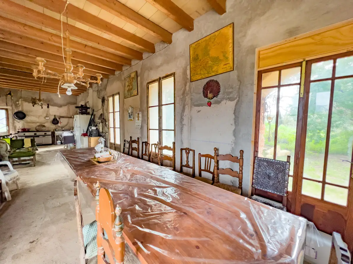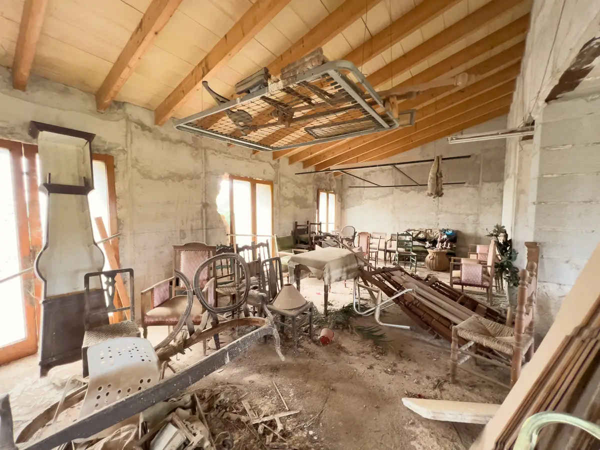Beautiful, original finca with a large plot of land and panoramic views of the Tramuntana in Consell, just a few minutes from Santa Maria and not far from Palma. The house has been partially renovated and has a new roof. The upper part of the house is still under construction, so that the future owner has the opportunity to design the house according to his own wishes. On the ground floor there is a large living room with a fireplace and another room that could easily be converted into a spacious kitchen. The house is surrounded by a garden with fruit trees, a small paddock and plenty of space for a pool. There is a well on the property.