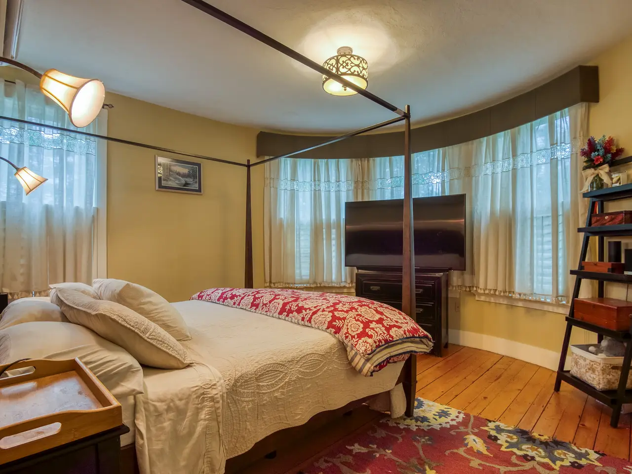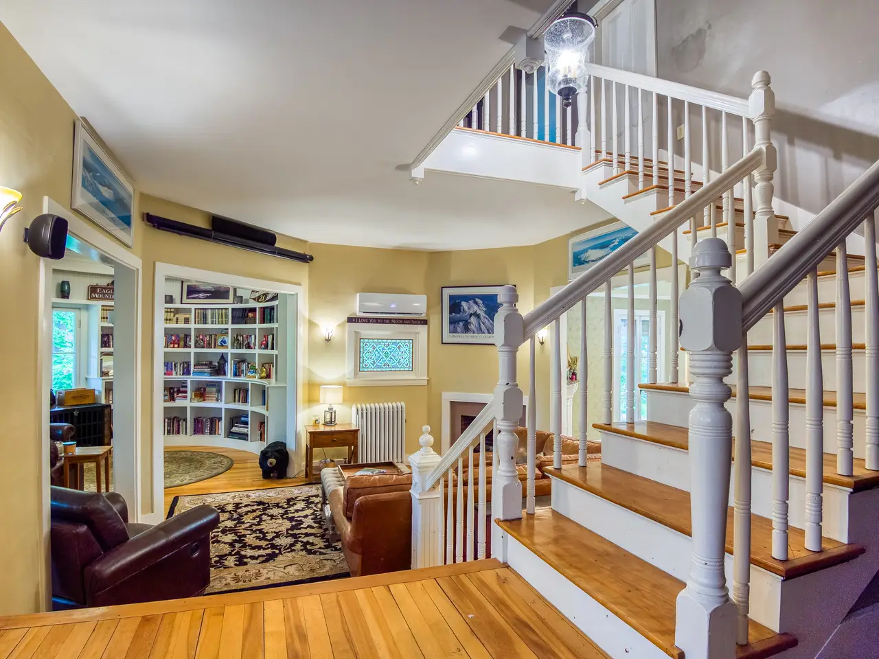 Historic 1892 Victorian home, 3 minutes from N Conway Village with seasonal views and direct access to recreational trails. Tucked into a private hillside, with old world craftsmanship, a grassed yard, 4+ bedrooms, 4000+ square feet of living area, expansive porches, detached screen house with hot tub, and a detached 2 car garage. Updated to high standards over the years, the home comes complete with a PV solar array and efficient heating and cooling systems. Custom primary suite, the opportunity to create 2 additional suites, and the possibility to short term rent. Walk or XC ski to the Village on town-owned trails and enjoy local restaurants by foot or ski as well.