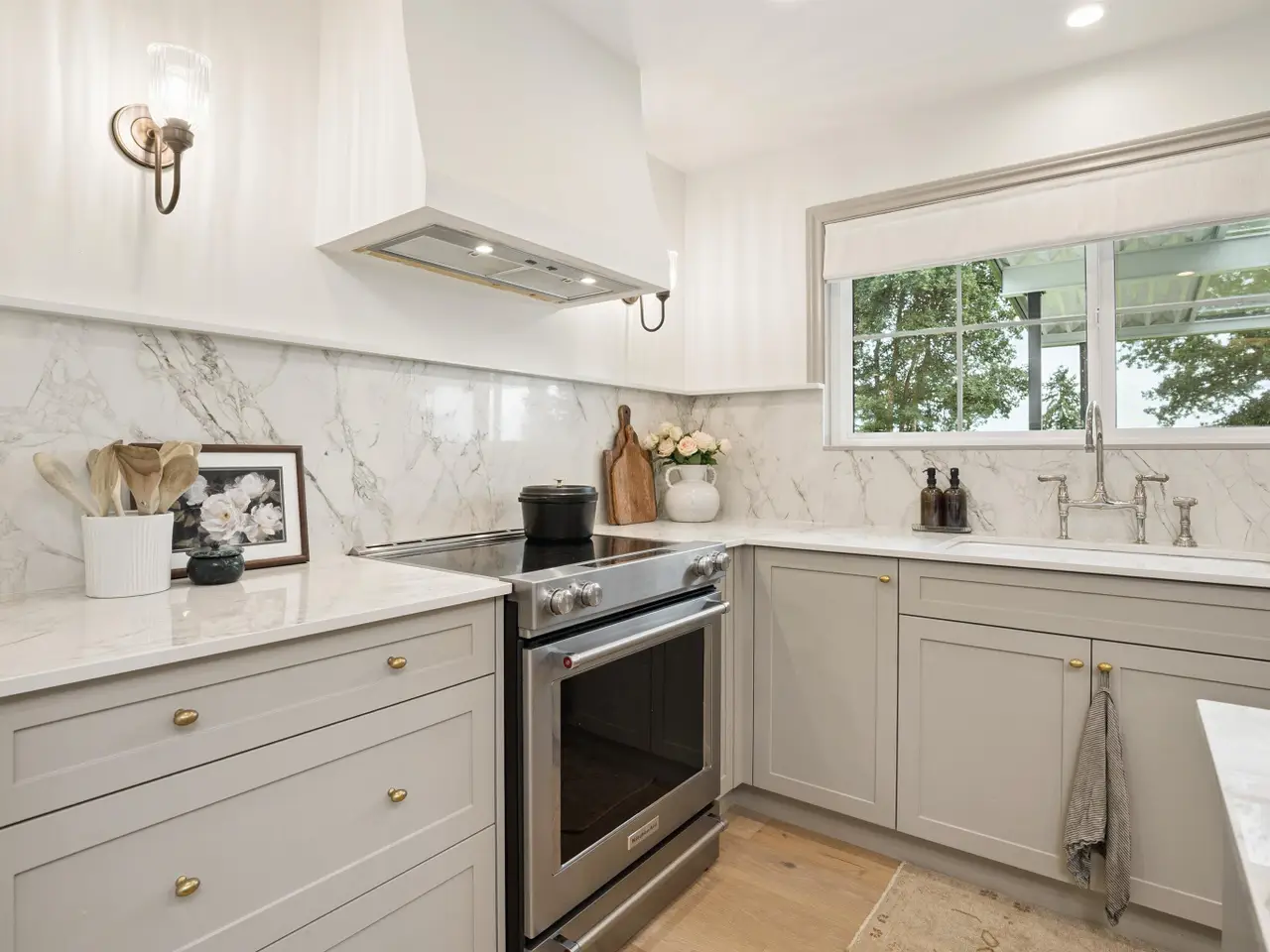 - Light wood flooring