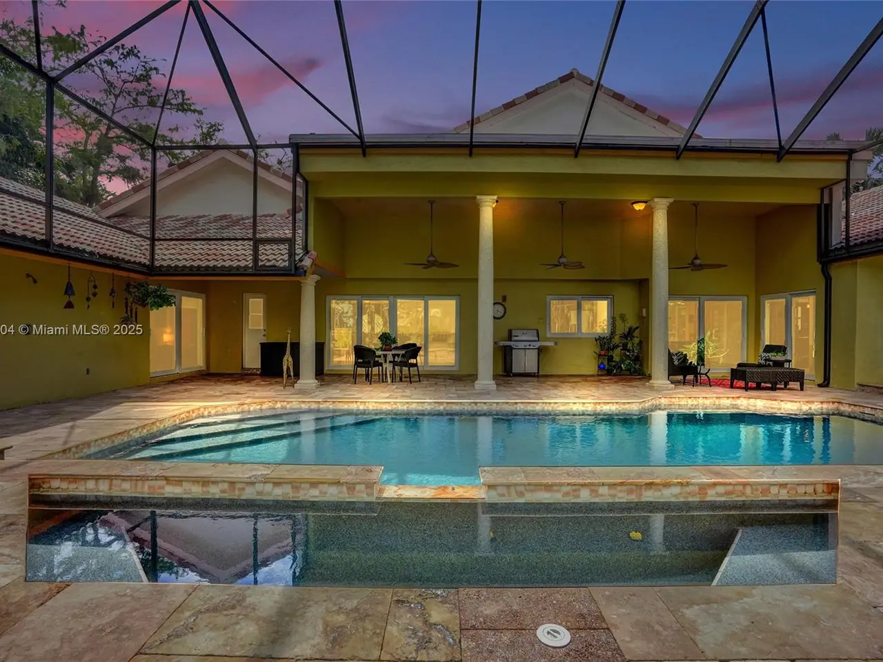 Dome screened waterfall jacuzzi and pool