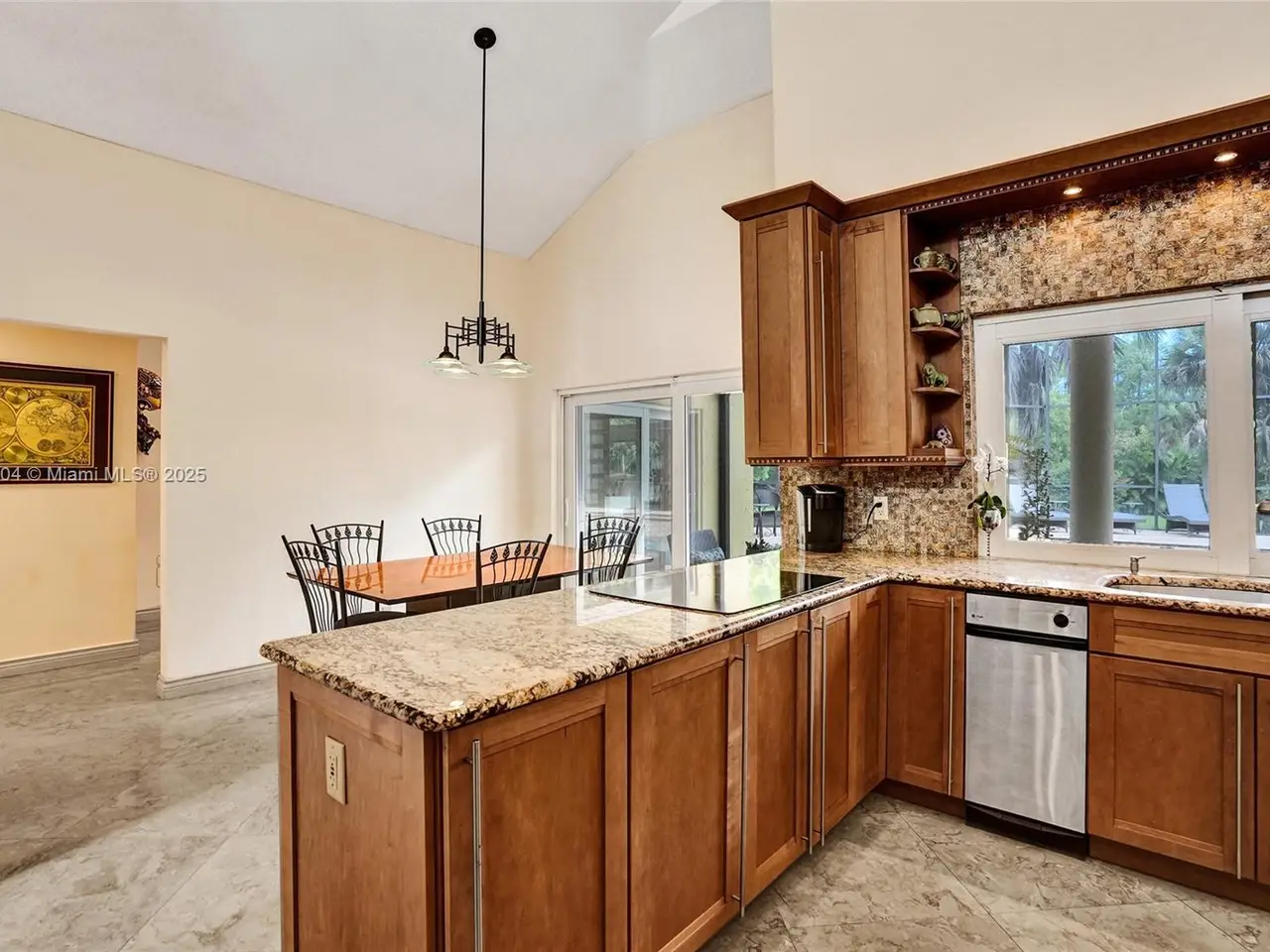 Remodeled heated pool with marble deck