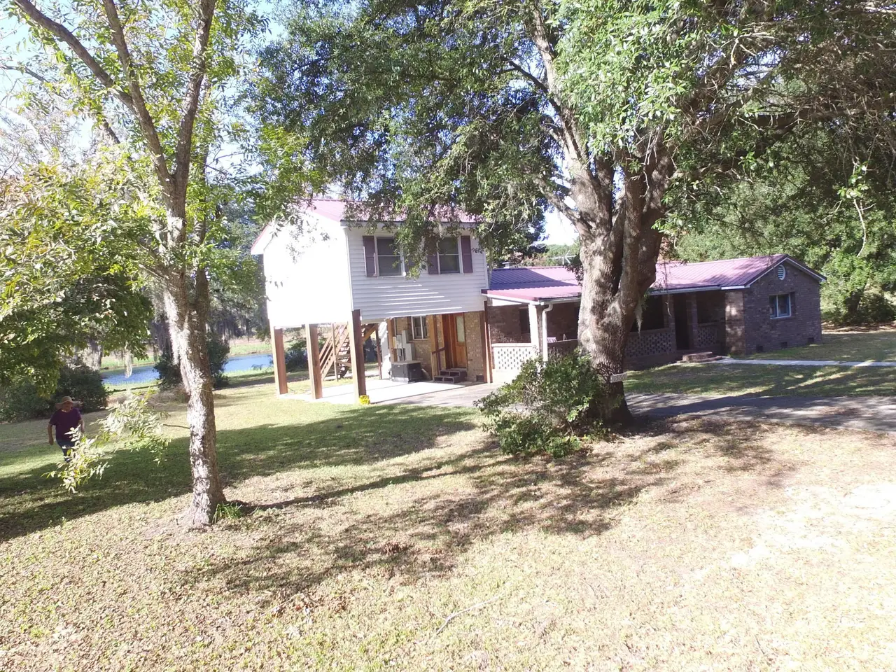 Opportunities like these don't come along often anymore. This is true original southern charm right outside of Charleston. The property is almost 9 acres of serene, untouched beauty. This home is nestled up against the Francis Marion National Forest, which means there will never be development beside it. There are barns, outbuildings, equipment sheds, fenced dog runs or poultry pens, a walk-in cooler and two high-capacity wells. A sportsman paradise, equestrian property or an absolutely perfect homestead property already zoned for livestock or to establish a farm like the local Wabi Sabi located about 4 miles away. It has road frontage on two sides. There is a large, well-stocked pond on the property, perfect for fishing. The possibility of subdividing and building a homestead is here!
