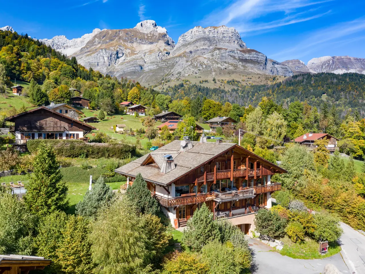 Tucked away from all disturbances, this magnificent chalet built by Brondex enjoys a truly exceptional location, offering majestic views over the surrounding mountains. Situated only 15 minutes from the Megève ski slopes, 45 minutes from Chamonix, and just 1 hour from Geneva, offering easy access to some of the Alps' most prestigious destinations. With approximately 900 sqm of usable floor space and around 700 sqm of living area, set on a beautifully landscaped 2,300 sqm plot, this property is a rare gem in the valley. The refined architecture features bedrooms that all open to the outdoors, each boasting breathtaking views of the Mont Blanc massif, the Fiz range, and the Aravis mountains. You can unwind in the spa with jacuzzi or enjoy a cosy moment by the fireplace in the living room. A spacious terrace invites you to savour special moments outdoors, while the swimming pool and Nordic bath allow for ultimate relaxation while taking in the spectacular scenery. A reconfiguration of the interior layout may be considered. The chalet also includes a full basement with a garage for up to 8 vehicles, a workshop, a wine cellar, and a dedicated ski room with lockers and boot warmers. Several additional outdoor parking spaces complete this exceptional property.